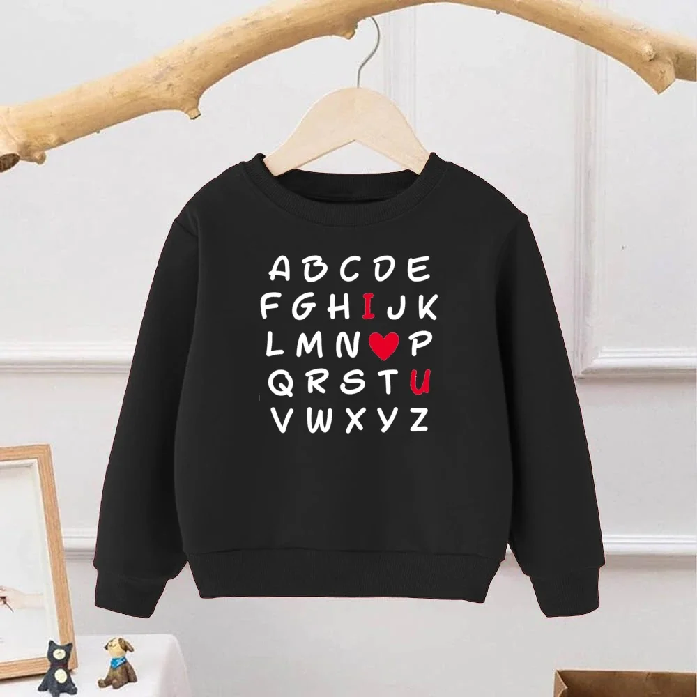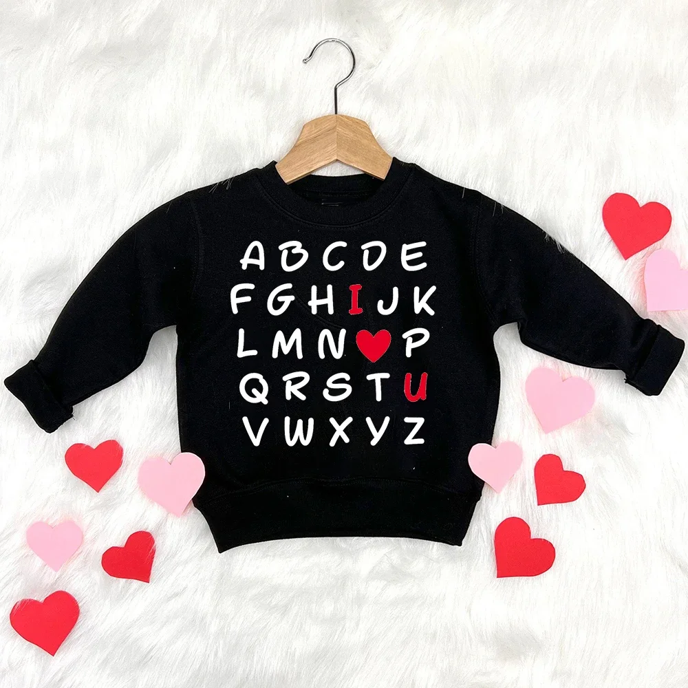 Sudadera con estampado ABC I Love You para niños, traje de fiesta de San Valentín, ropa de calle, Sudadera con capucha cálida para invierno, Tops, ropa de vacaciones para niños