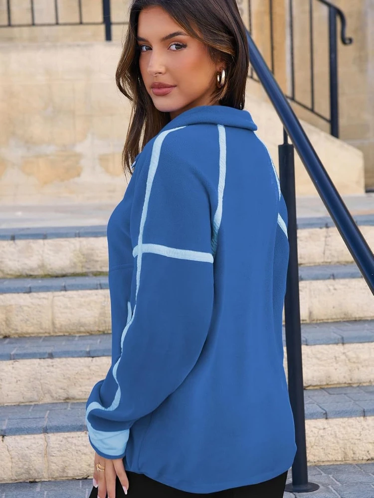 Sudadera de media cremallera para mujer para otoño e invierno, jersey de manga larga con cuello levantado, Top versátil informal con bloques de Color y bolsillo
