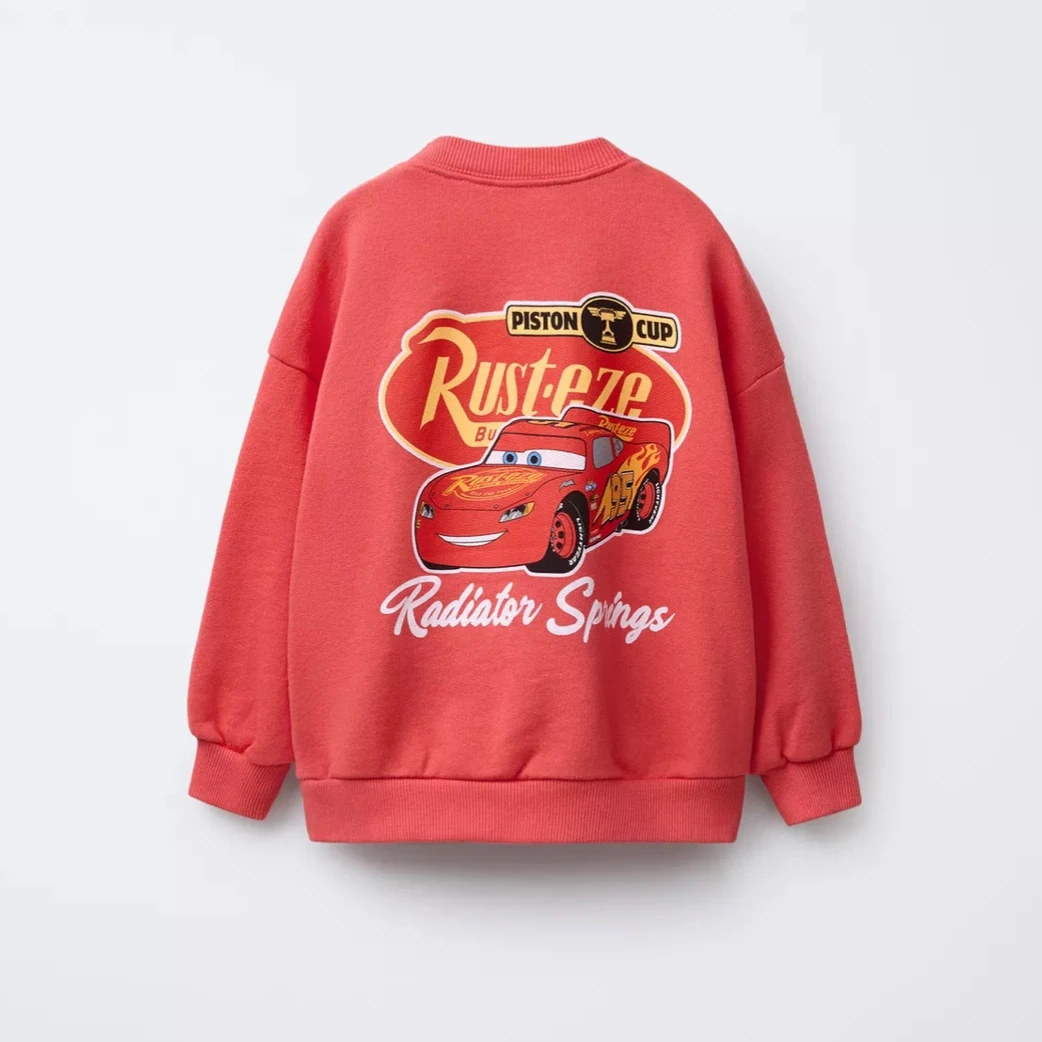 Sudaderas blancas con estampado de coche de dibujos animados, Tops de manga larga, ropa de primavera y otoño, jerséis de cuello redondo para niños, Sudadera con capucha de nuevo diseño