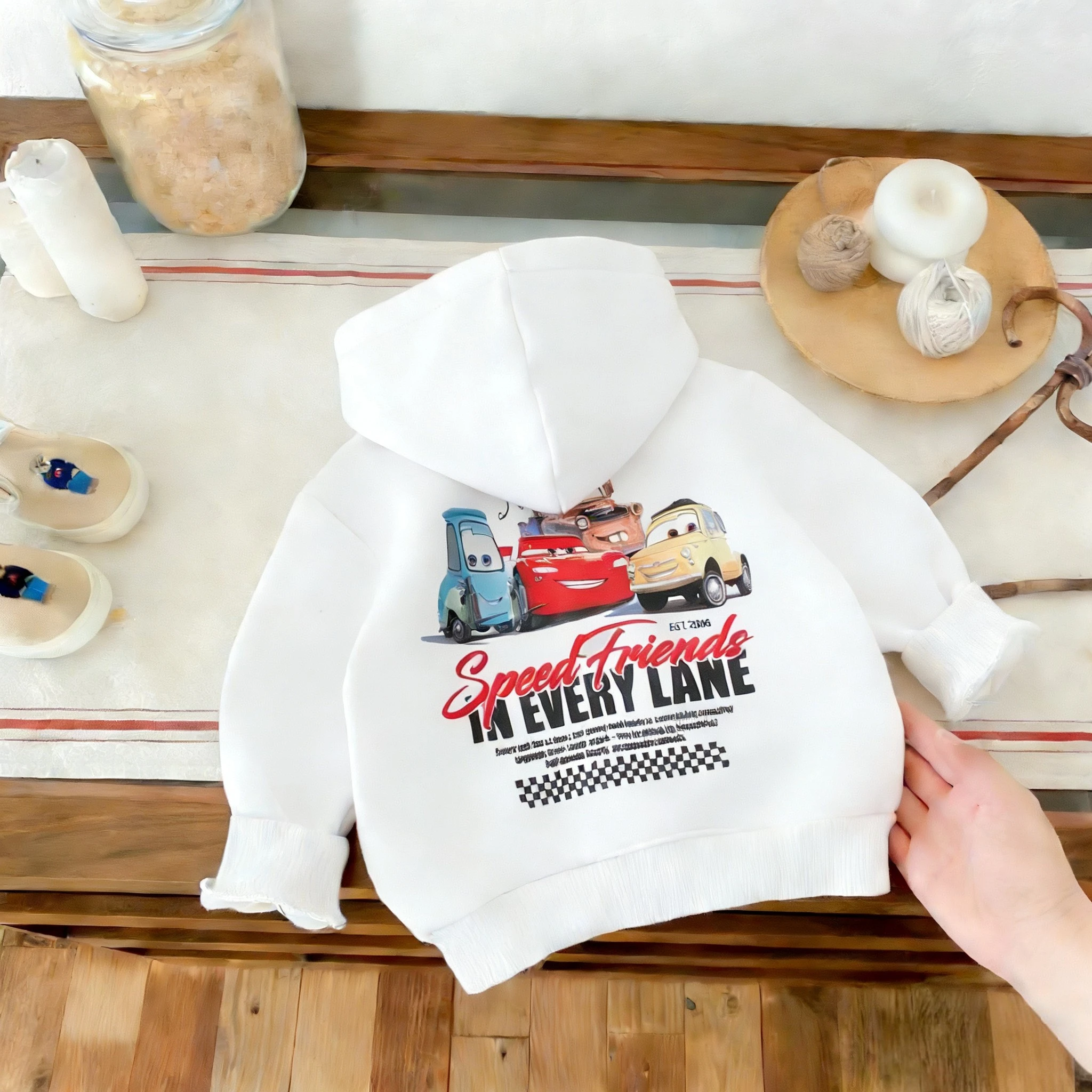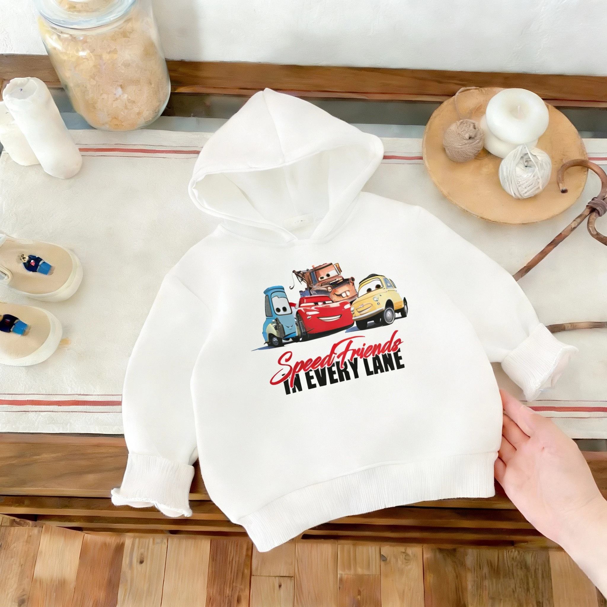 Sudaderas con capucha de coche de dibujos animados con estampado de Color sólido, ropa para niños, Tops informales con capucha para primavera y otoño, sudaderas, ropa para niños, Sudadera con capucha de Disney