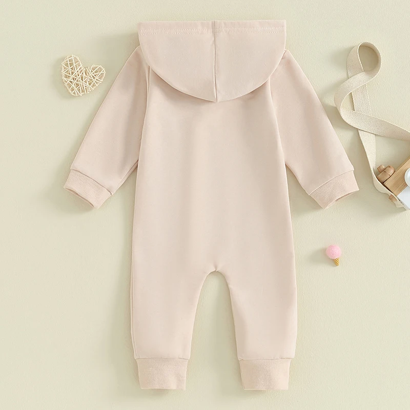 Mamelucos para bebés, niños y niñas, bordado de letras, sudaderas con capucha de manga larga, monos, ropa de otoño para niños pequeños, monos