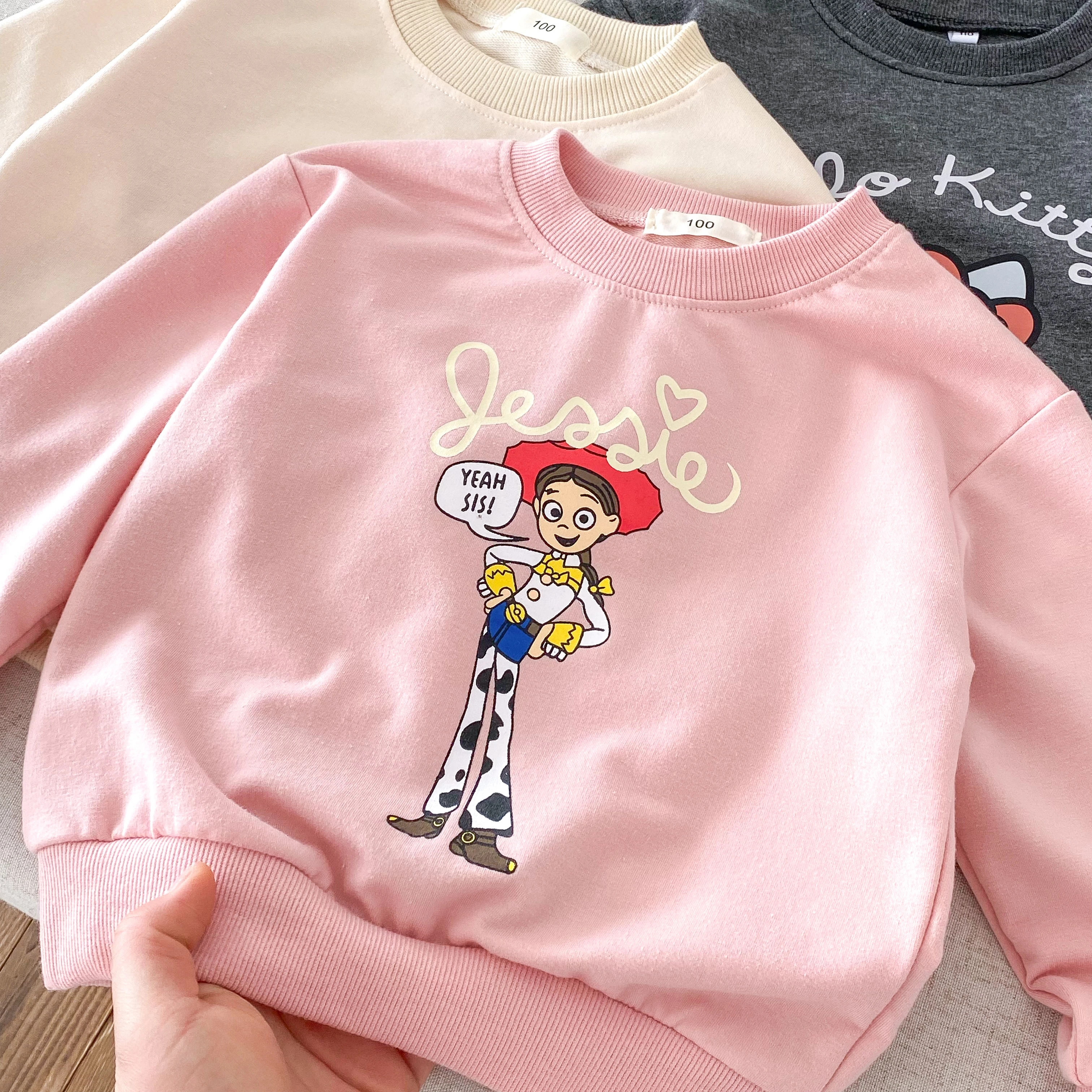 Sudaderas con estampado de dibujos animados para niños, ropa holgada de moda para primavera y otoño, Tops de manga larga para bebés y niñas, Sudadera con capucha con cuello redondo de 0 a 6 años