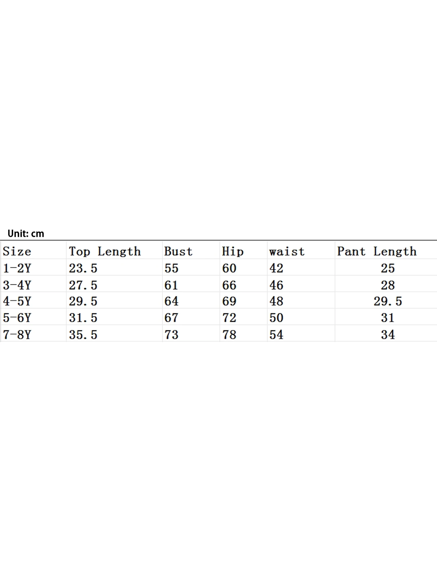 1-2Y Longitud de la camiseta: 22 Busto: 50 Longitud de los pantalones cortos: 25 Cintura: 42 Cadera: 60 Edad recomendada: 1-2 años