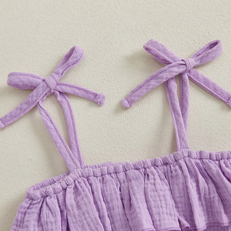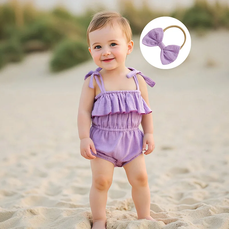 Body sin mangas con volantes para niña, pelele con lazo de Color sólido y diadema con lazo, ropa bonita de verano