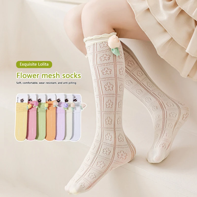 Calcetines hasta la rodilla para niñas, bonitas flores, calcetines de malla transpirable, medias para recién nacidos, accesorios de ropa para niños pequeños