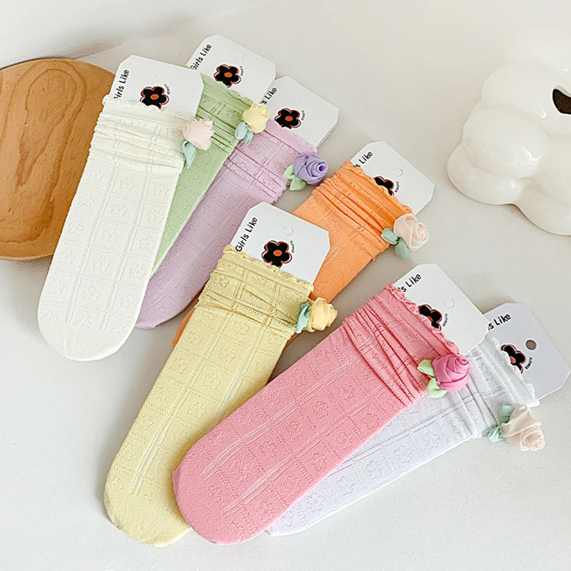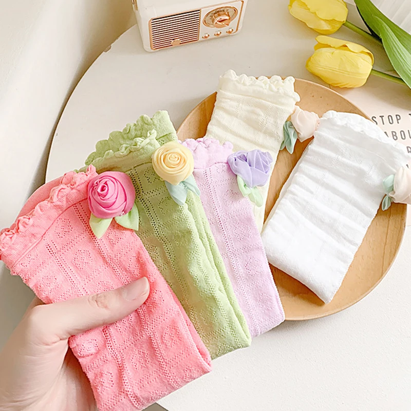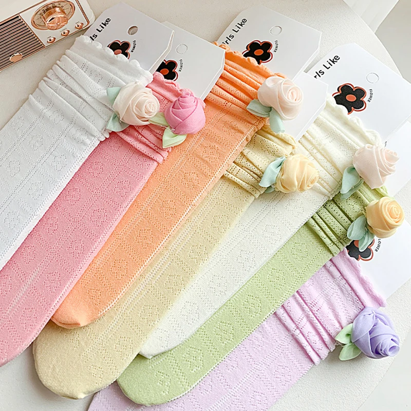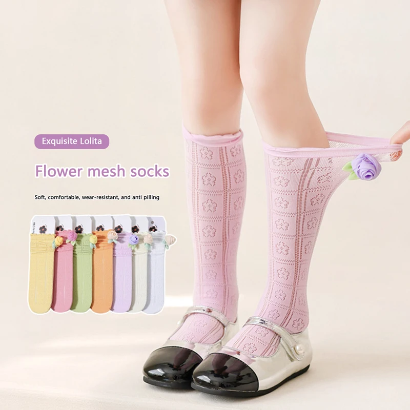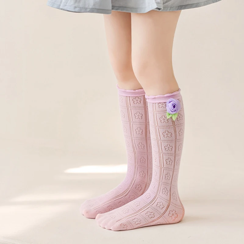 Calcetines hasta la rodilla para niñas, bonitas flores, calcetines de malla transpirable, medias para recién nacidos, accesorios de ropa para niños pequeños