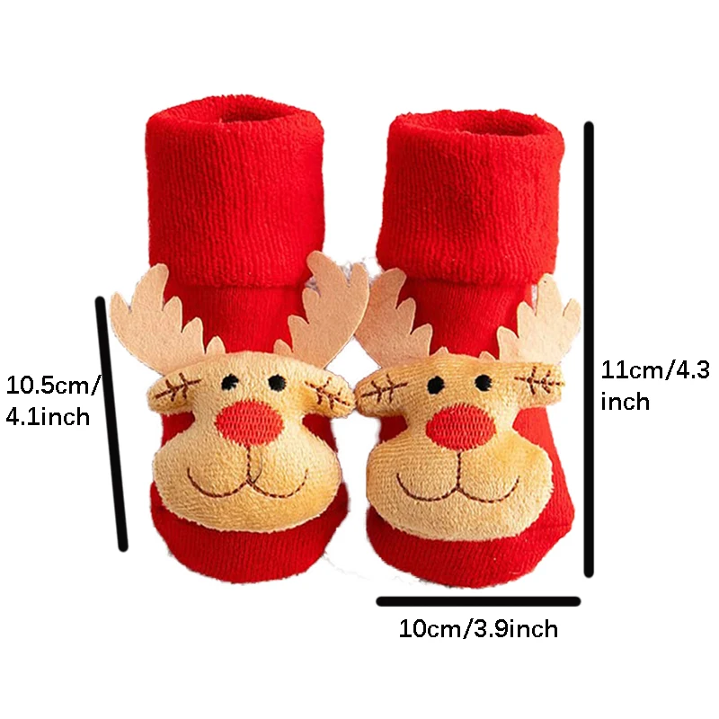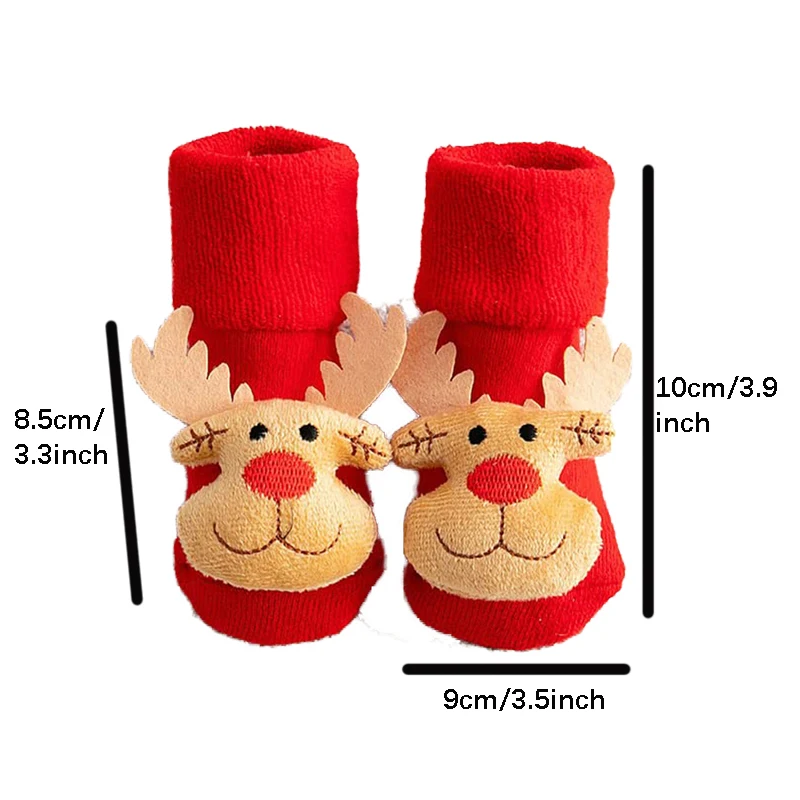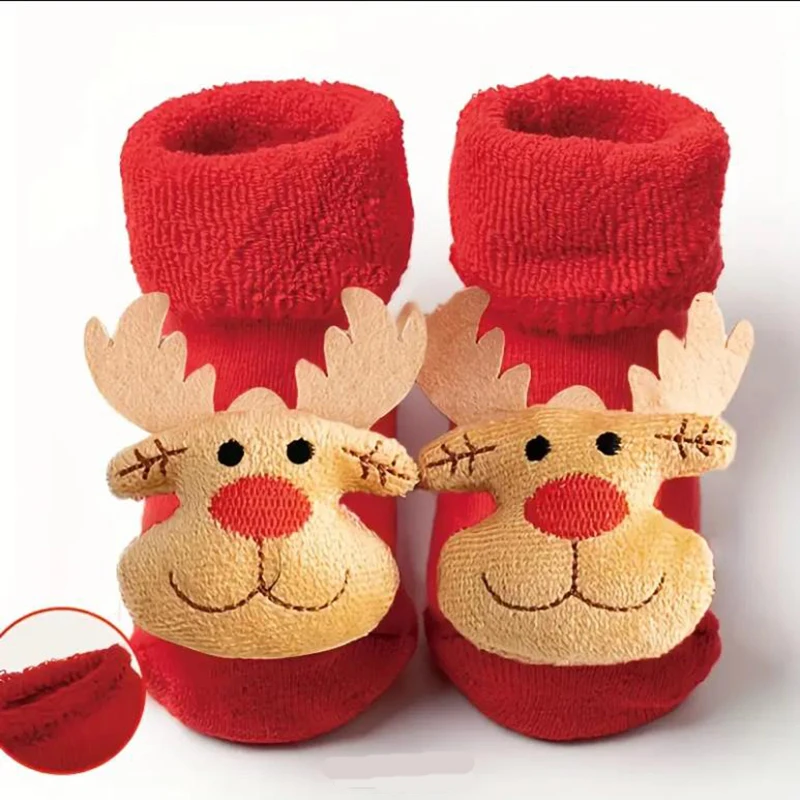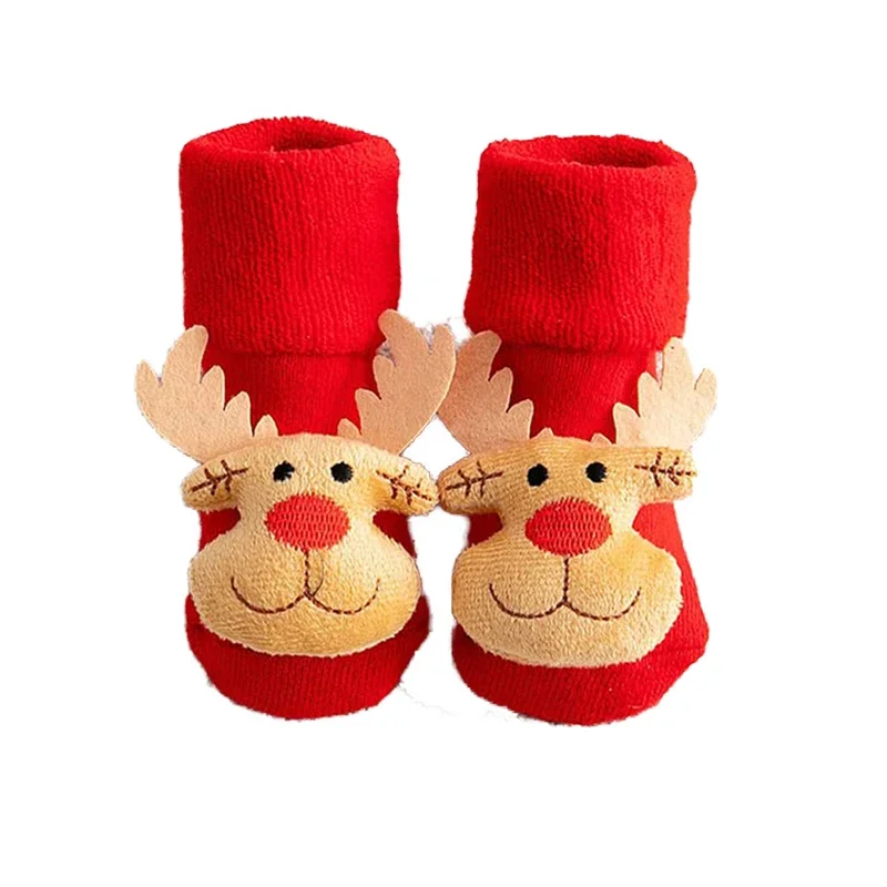 Calcetines navideños para bebé, calcetines antideslizantes para el suelo, bonitos calcetines cálidos de pantorrilla con renos para invierno y otoño