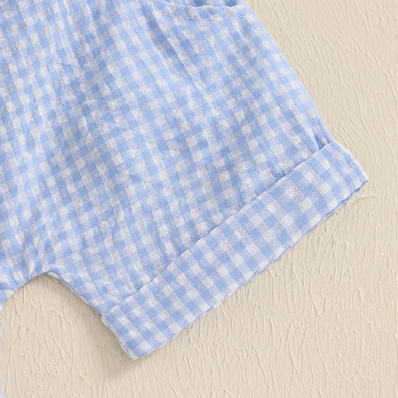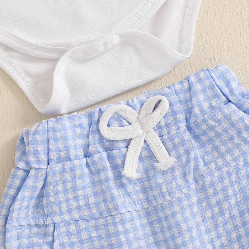 Comprar Suefunskry-Conjunto de 1er cumpleaños para bebé, pelele bordado de manga corta con cuello redondo y bolsillos, pantalones cortos, trajes a cuadros, 2 uds.