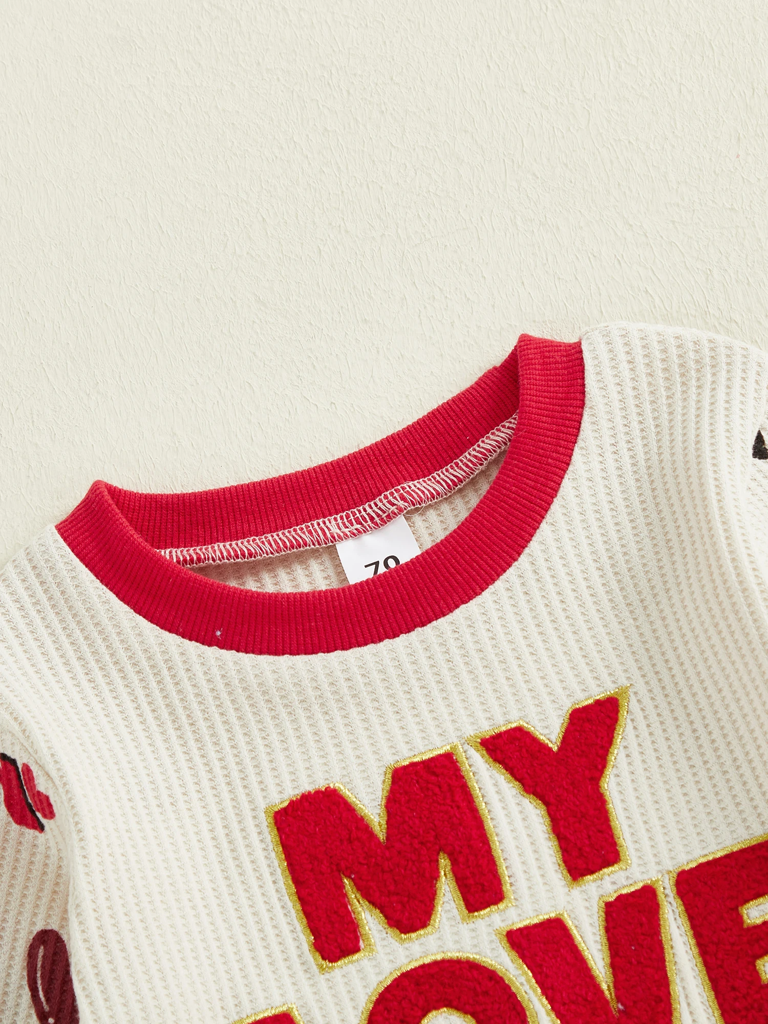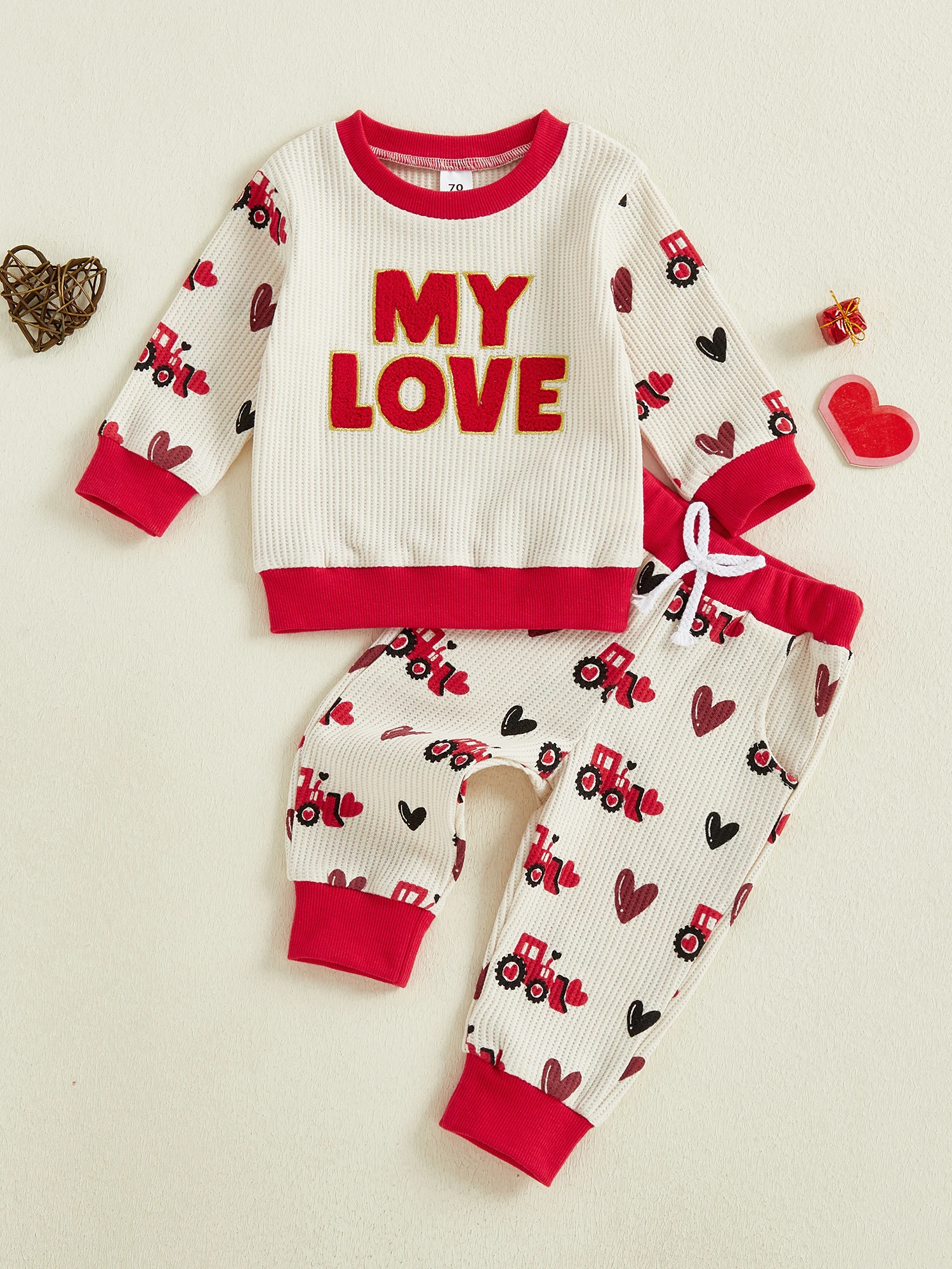 Conjunto de sudadera y pantalones para correr, 2 uds., trajes de San Valentín con letras bordadas, manga larga, cuello redondo