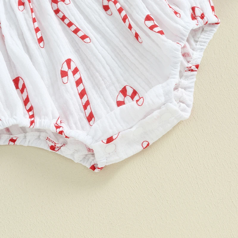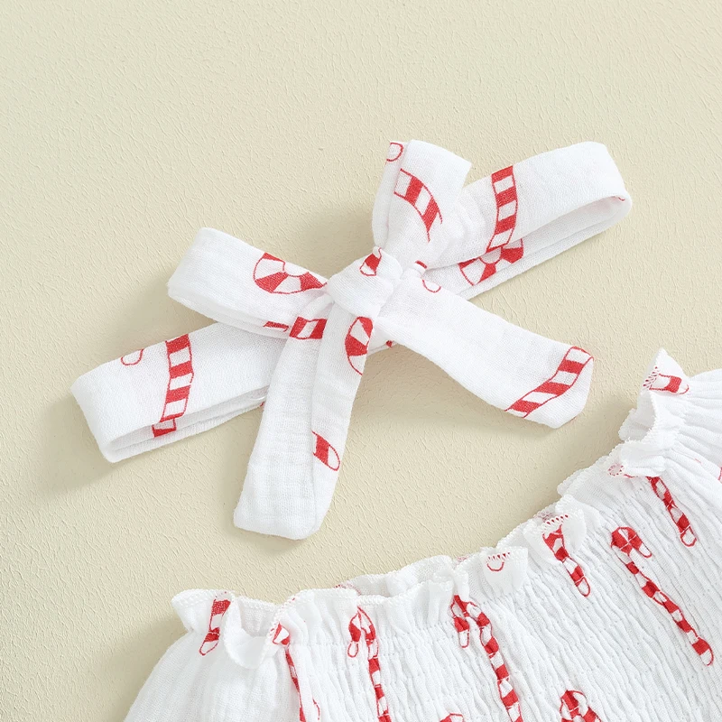 Comprar Suefunskry Conjunto de 2 piezas de mameluco navideño para niña con hombros descubiertos y manga larga con estampado de bastón de caramelo ahumado y diadema