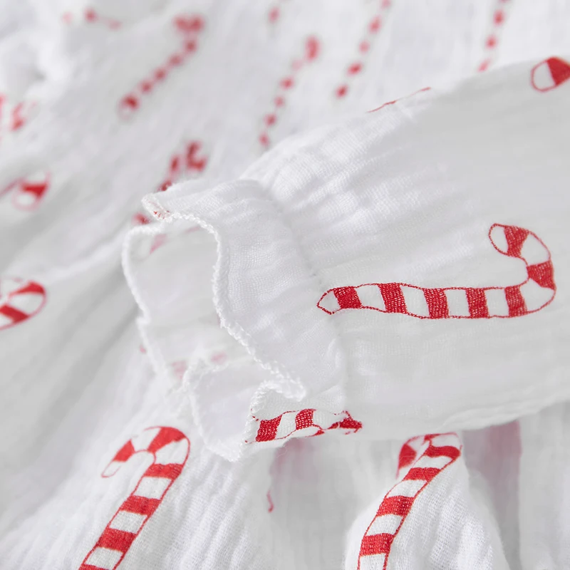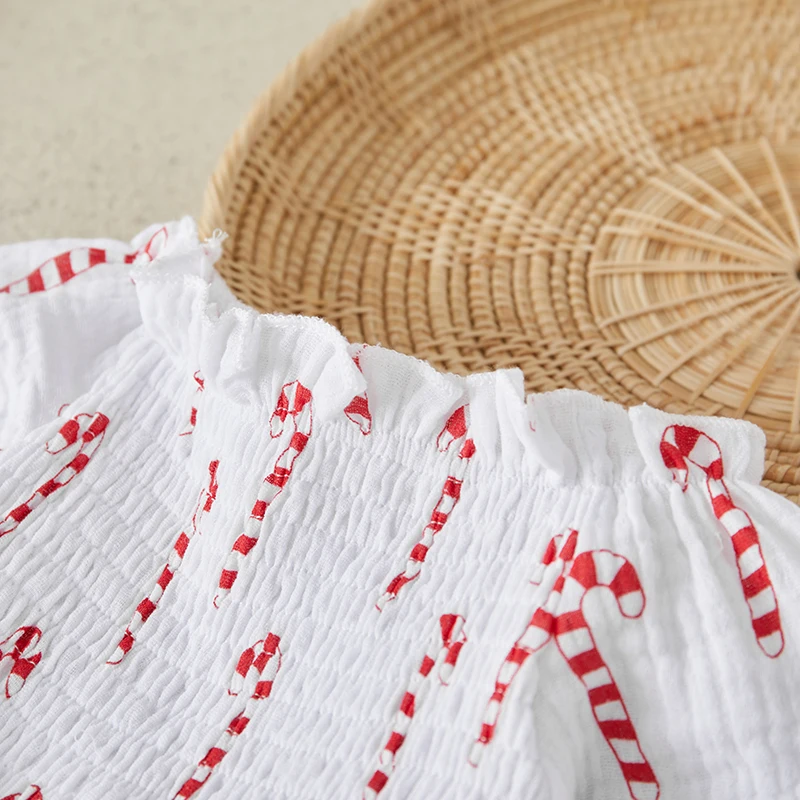 Comprar Suefunskry Conjunto de 2 piezas de mameluco navideño para niña con hombros descubiertos y manga larga con estampado de bastón de caramelo ahumado y diadema