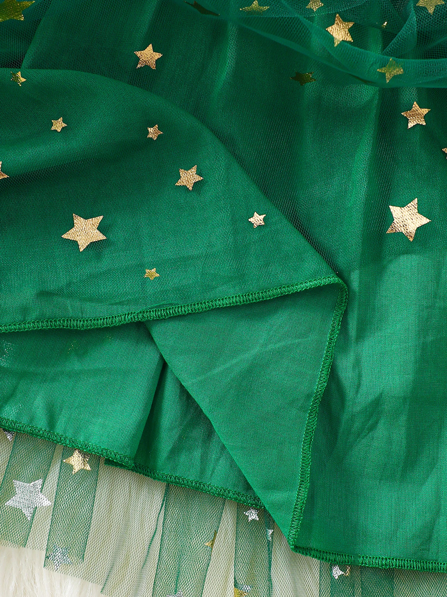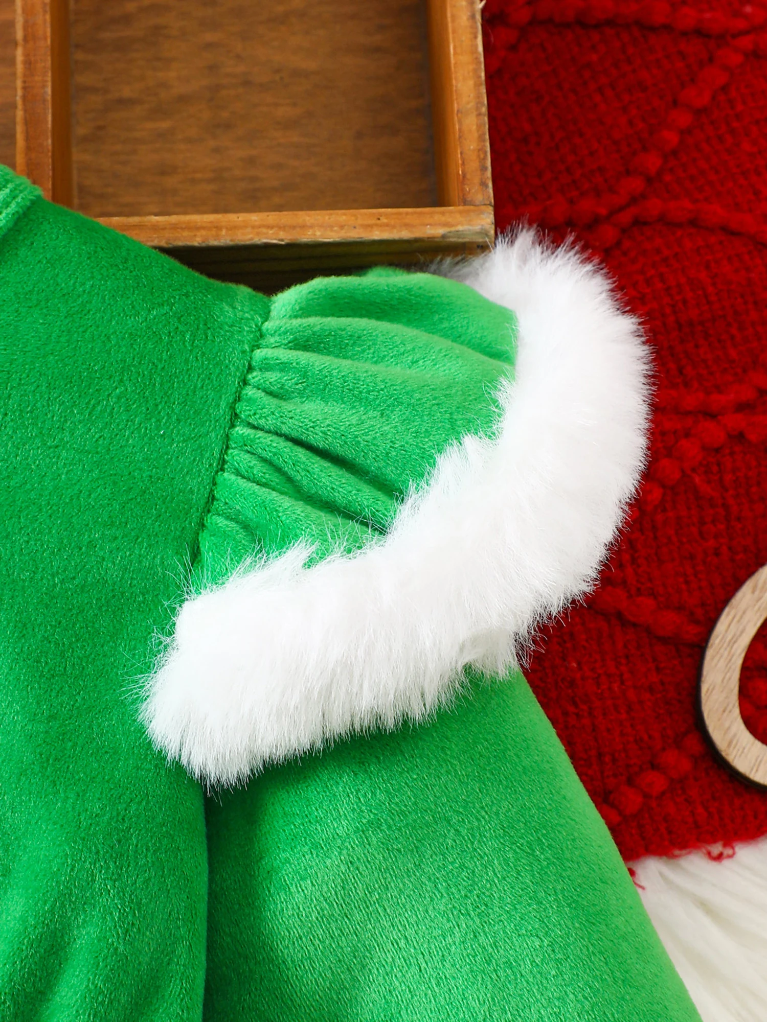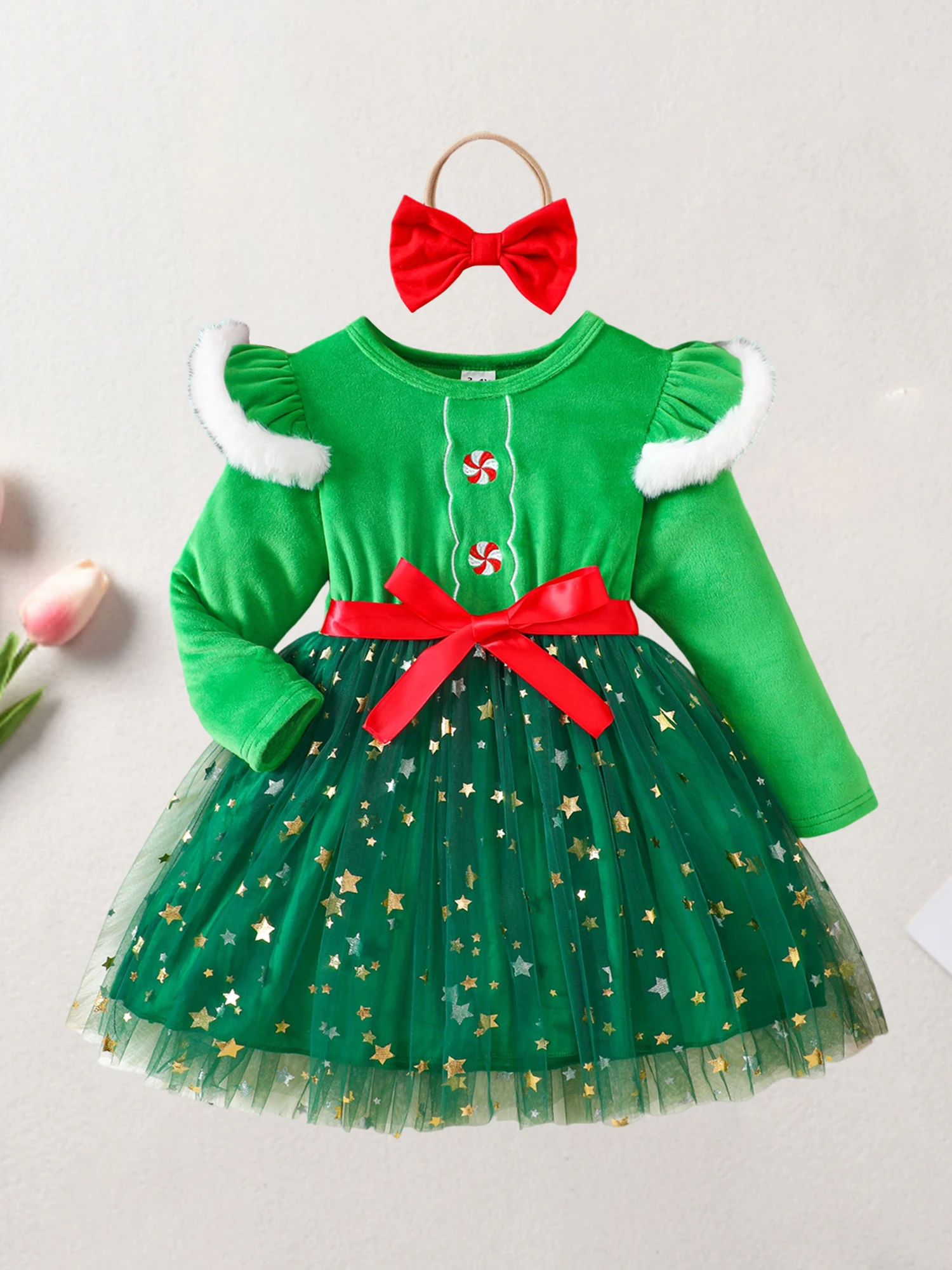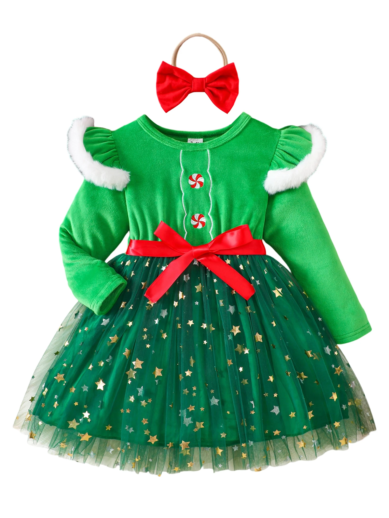 Comprar Suefunskry Conjunto de 2 piezas de vestido de Navidad para niña pequeña con ribete de piel y estrella de caramelo de malla de manga larga de elfo y una línea y diadema con lazo