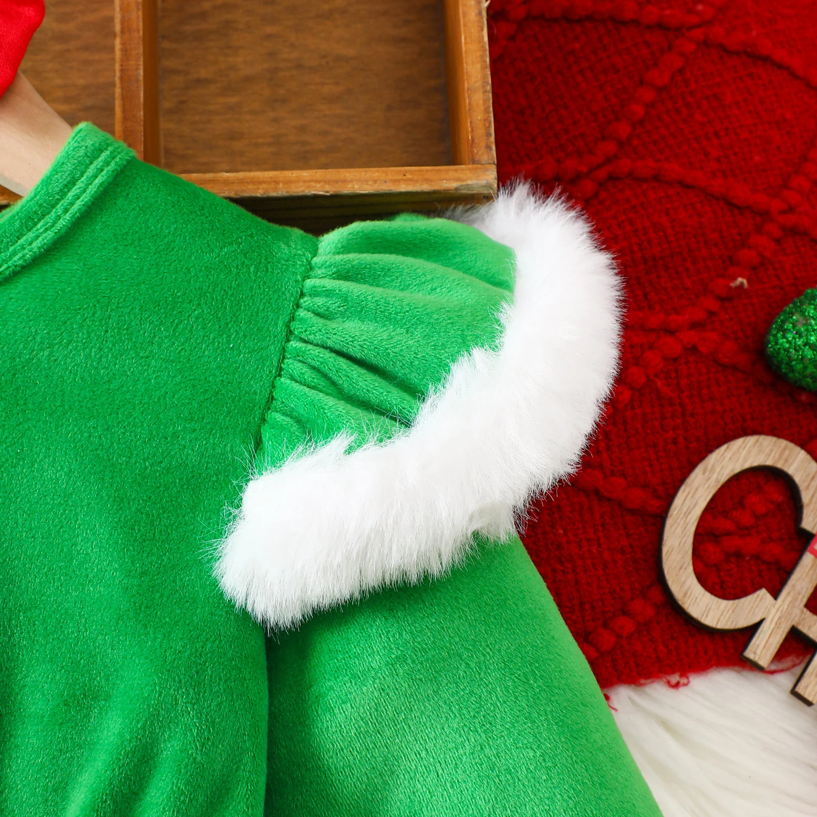Comprar Suefunskry Conjunto de 2 piezas de vestido de Navidad para niña pequeña con ribete de piel y estrella de caramelo de malla de manga larga de elfo y una línea y diadema con lazo