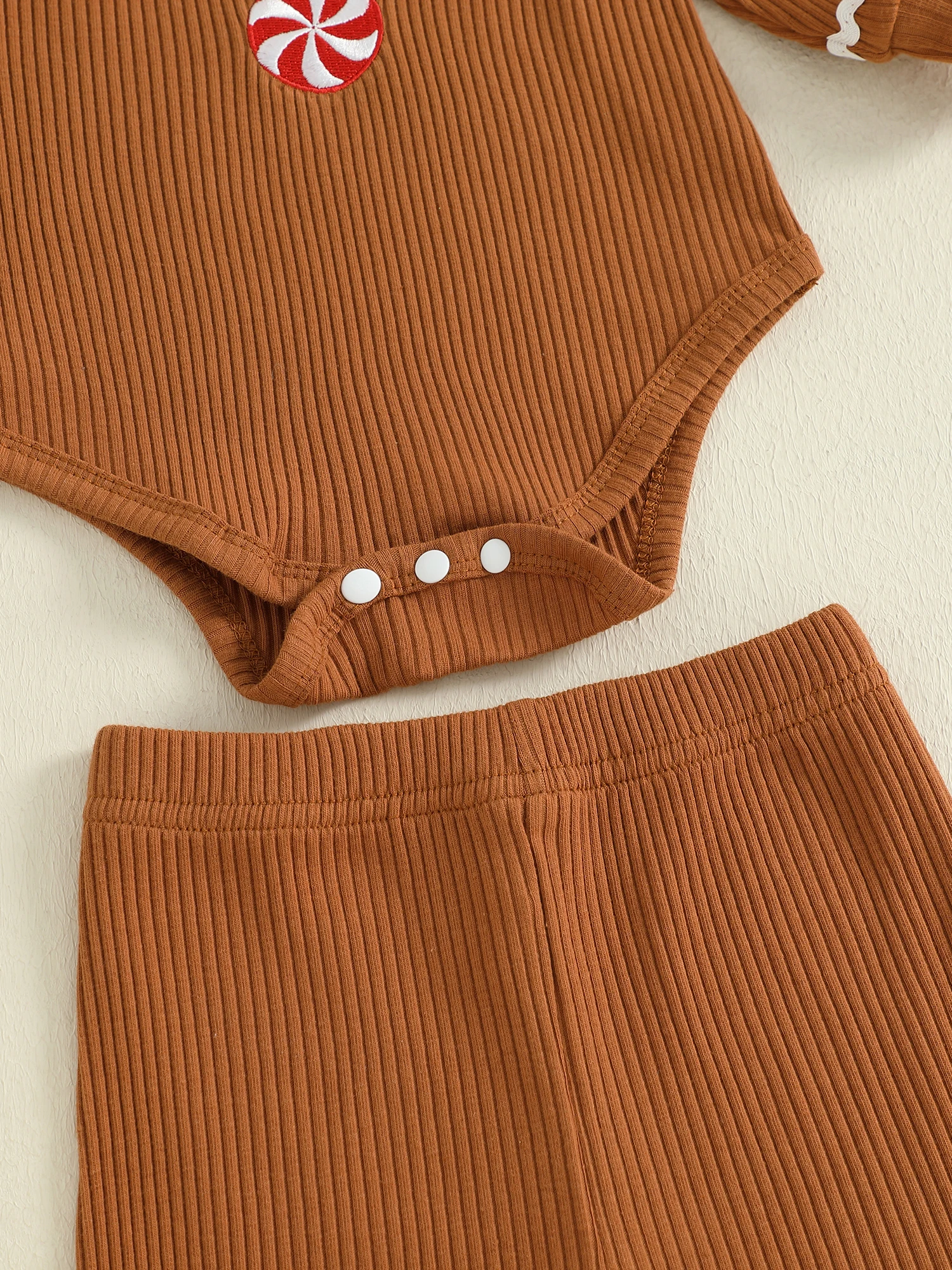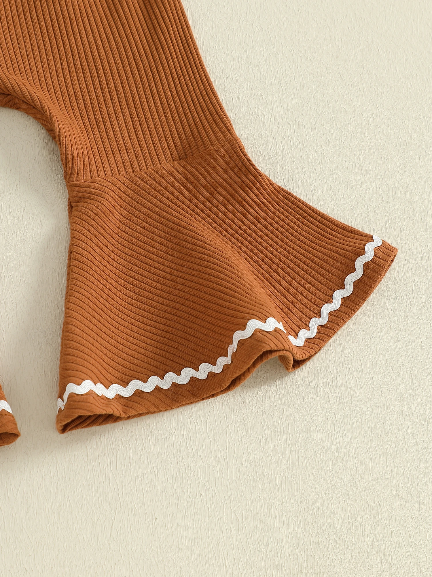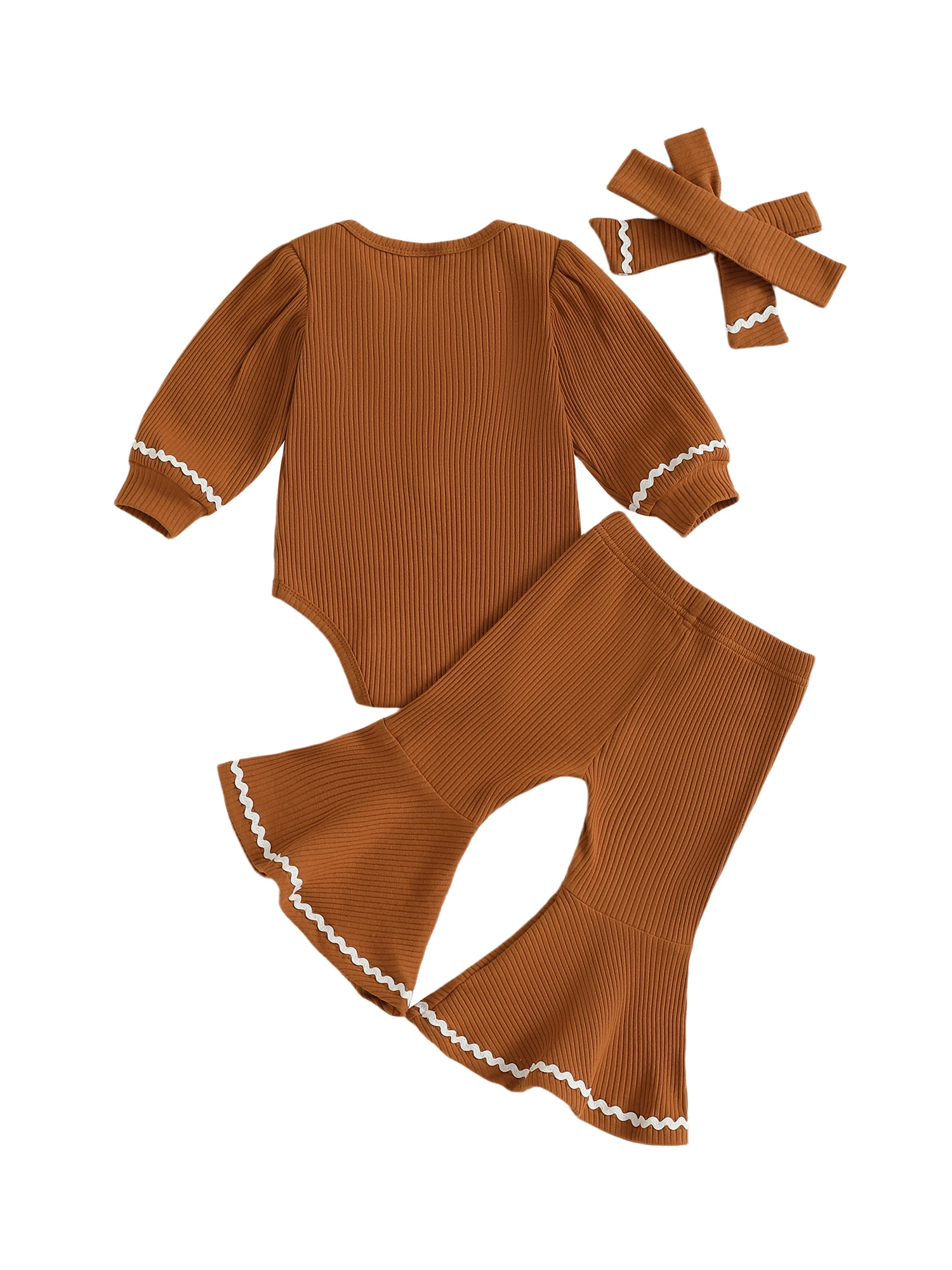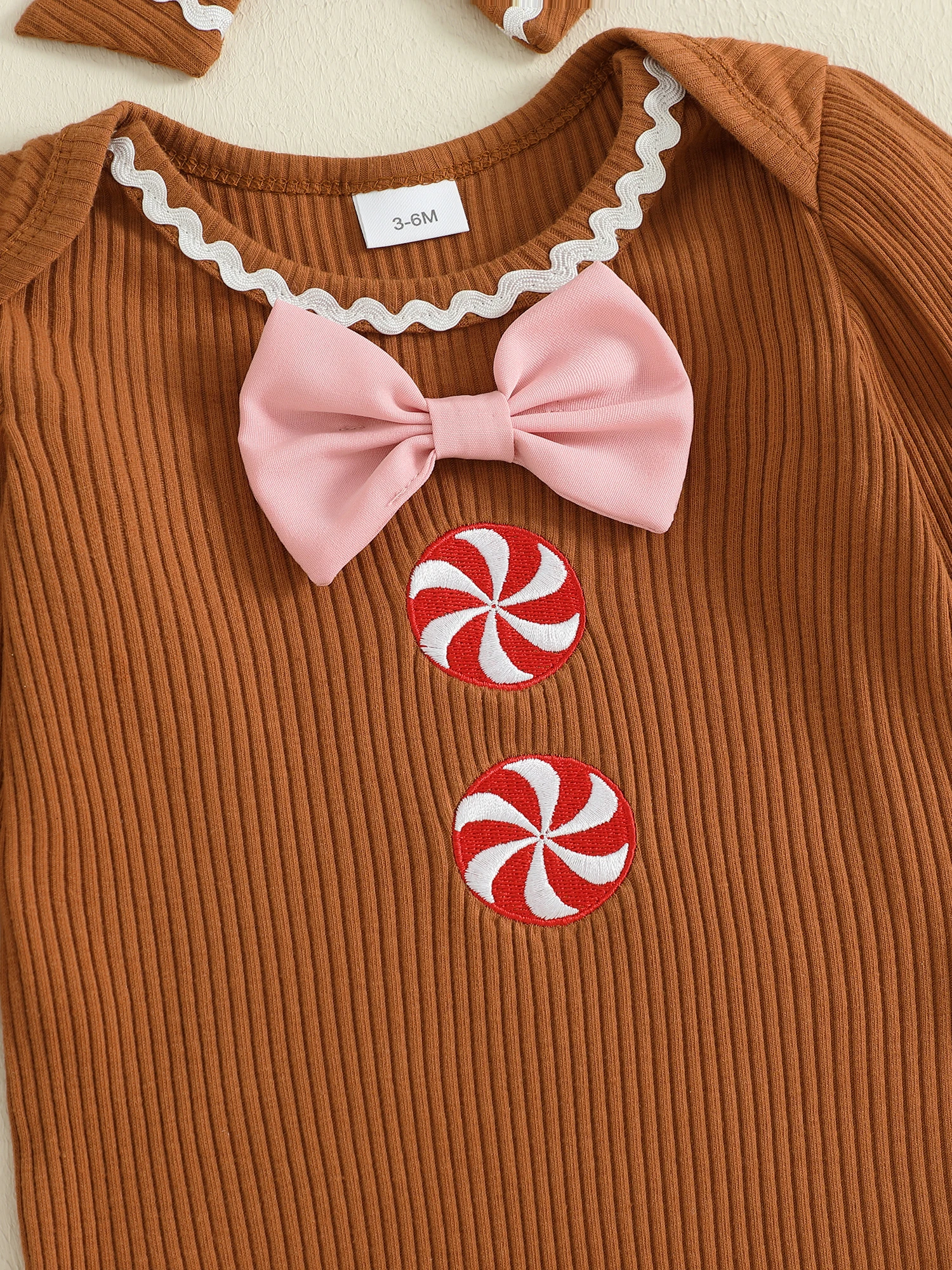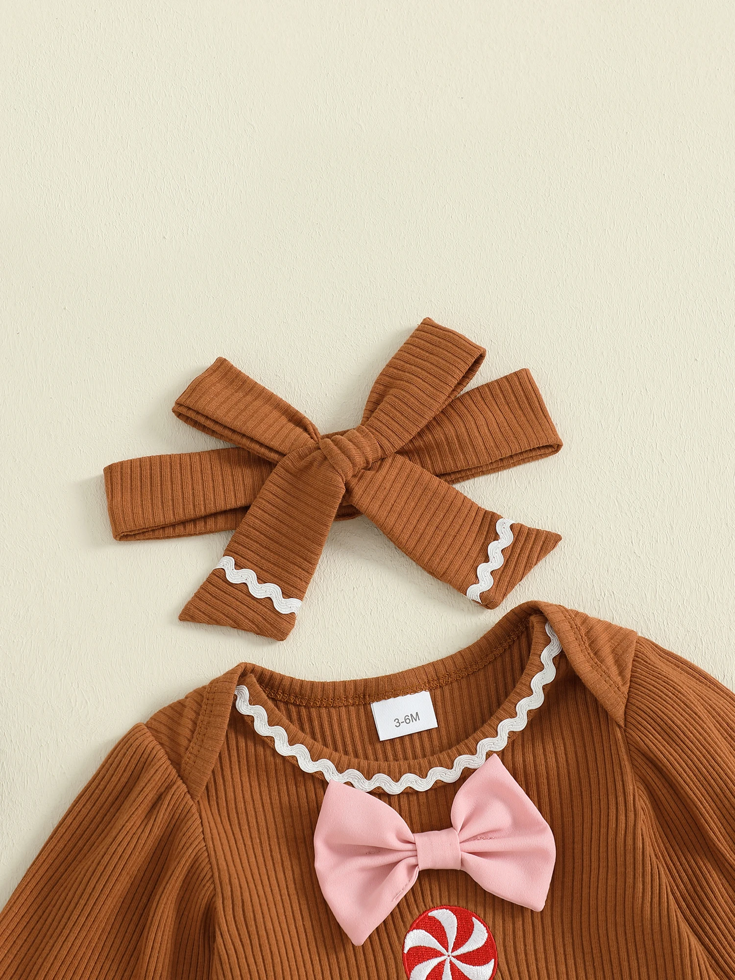 Conjunto de 3 piezas de mameluco de manga larga con pantalones acampanados y diadema para niña de Navidad