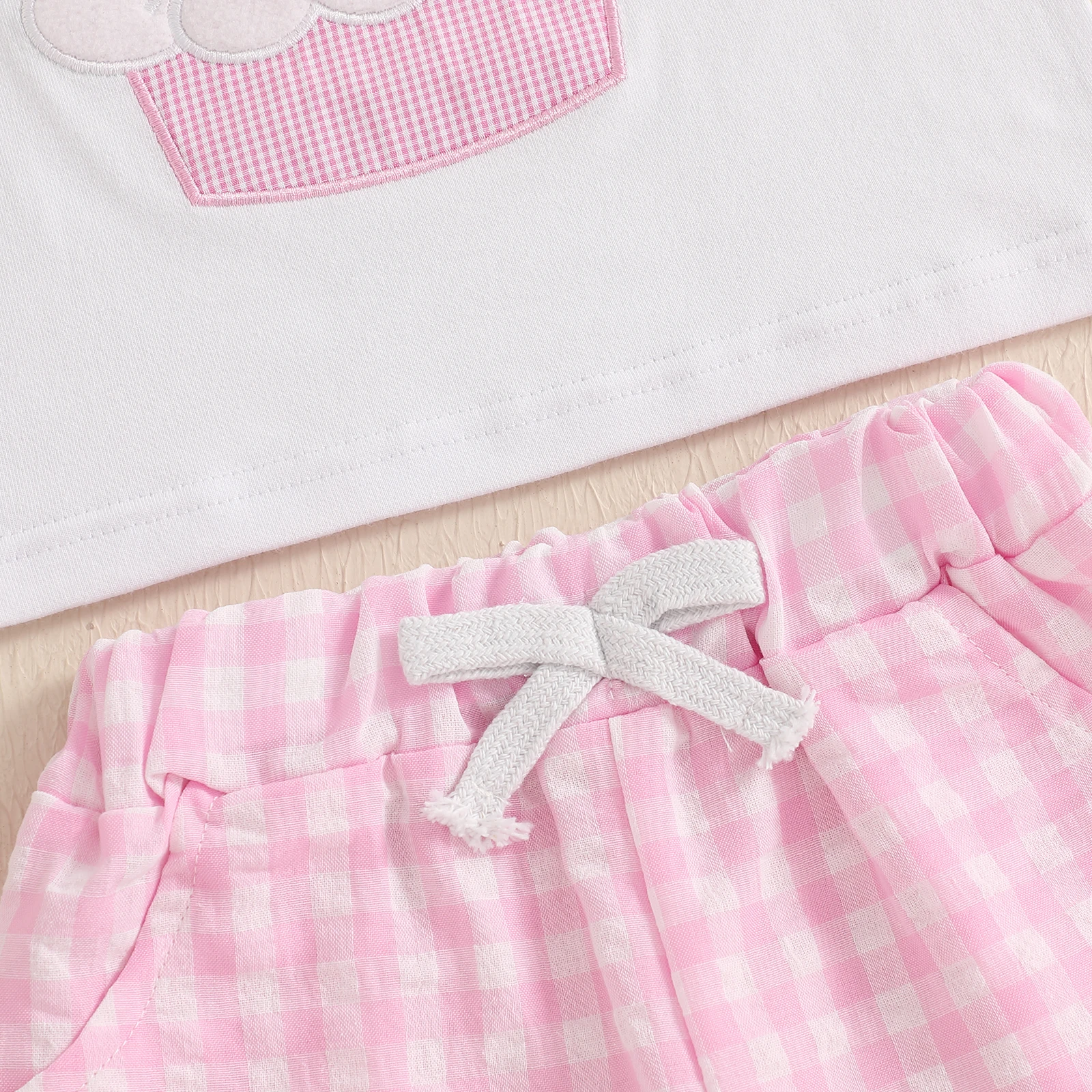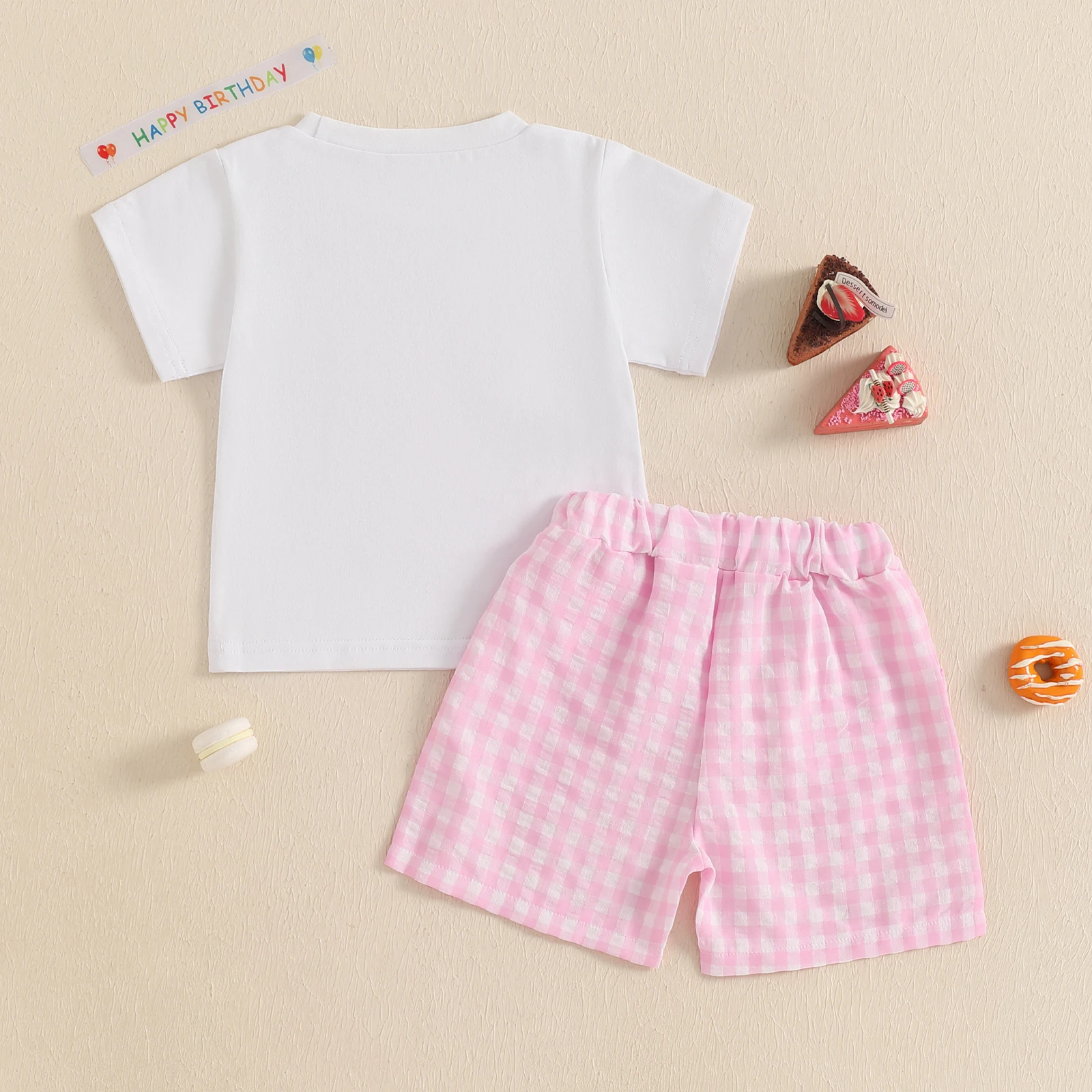 Comprar Suefunskry Conjunto de pantalones cortos para bebé, camiseta de manga corta con cuello redondo y números de magdalenas bordados con pantalones cortos a cuadros, traje de cumpleaños de un año
