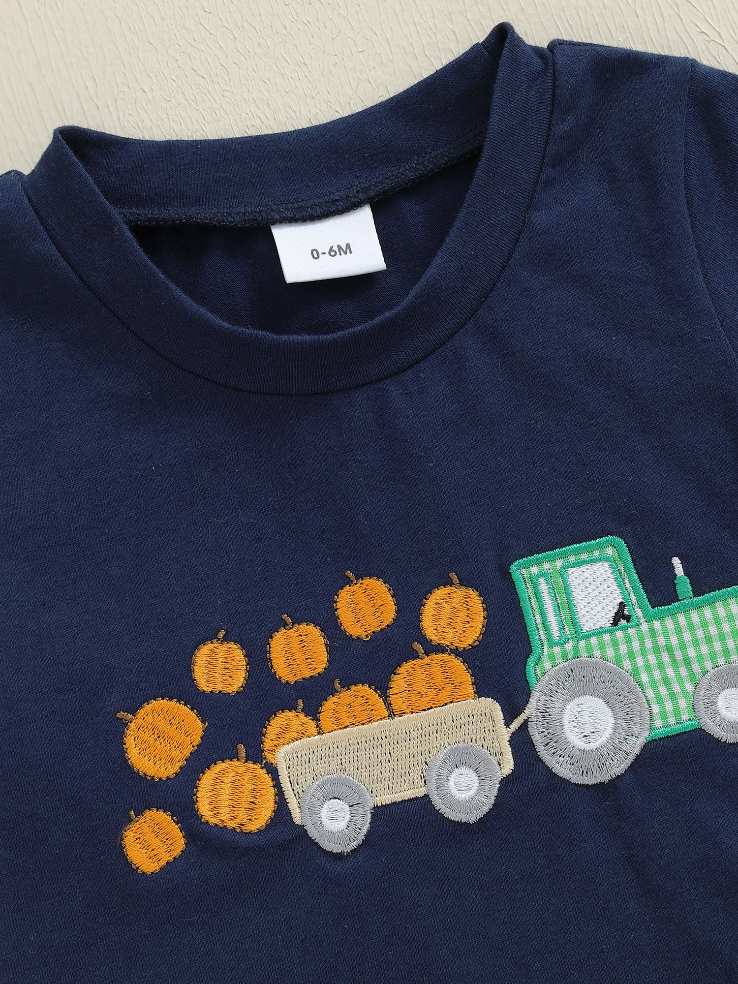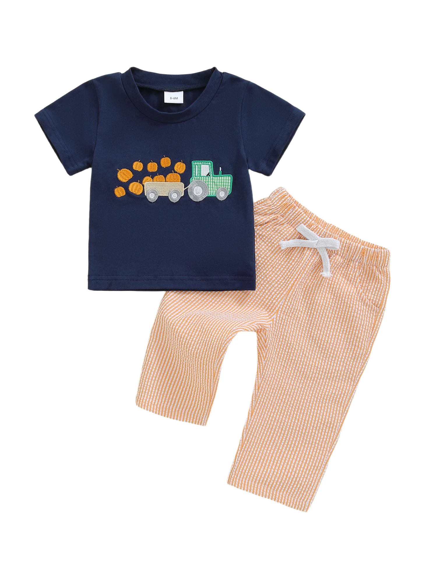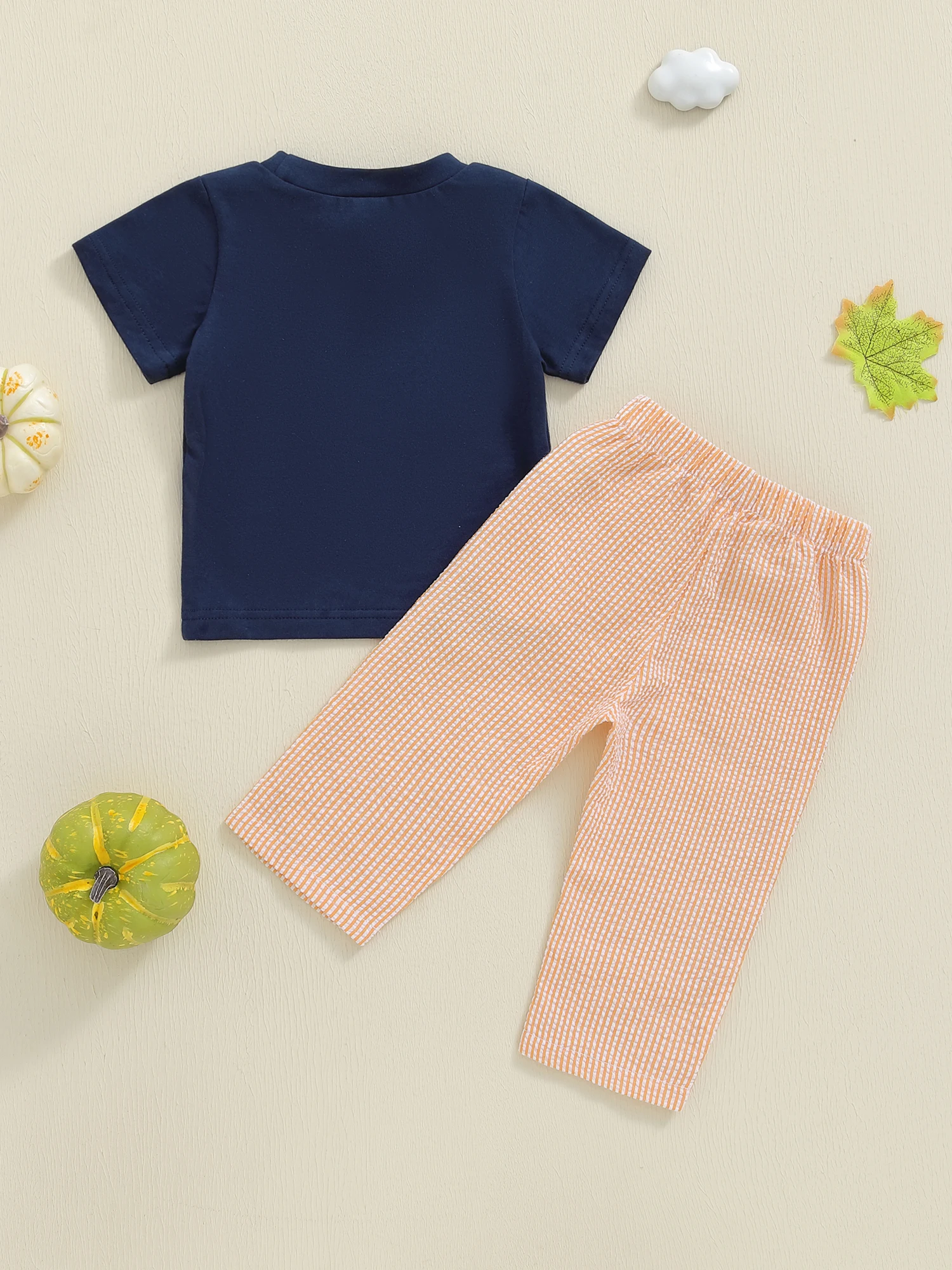 Comprar Suefunskry Conjunto de pantalones a rayas con estampado de calabaza y camión de manga corta de Halloween para bebés y niños pequeños