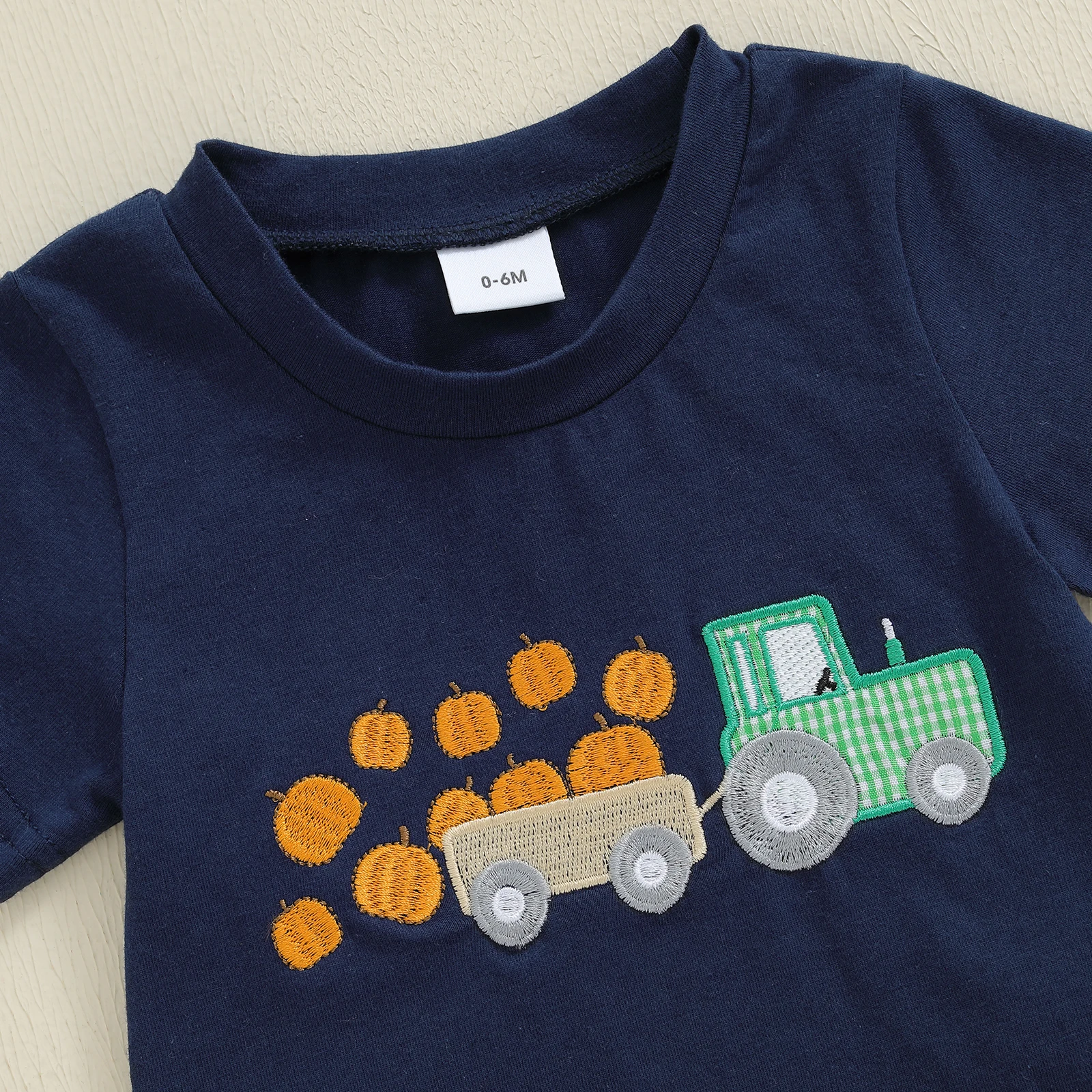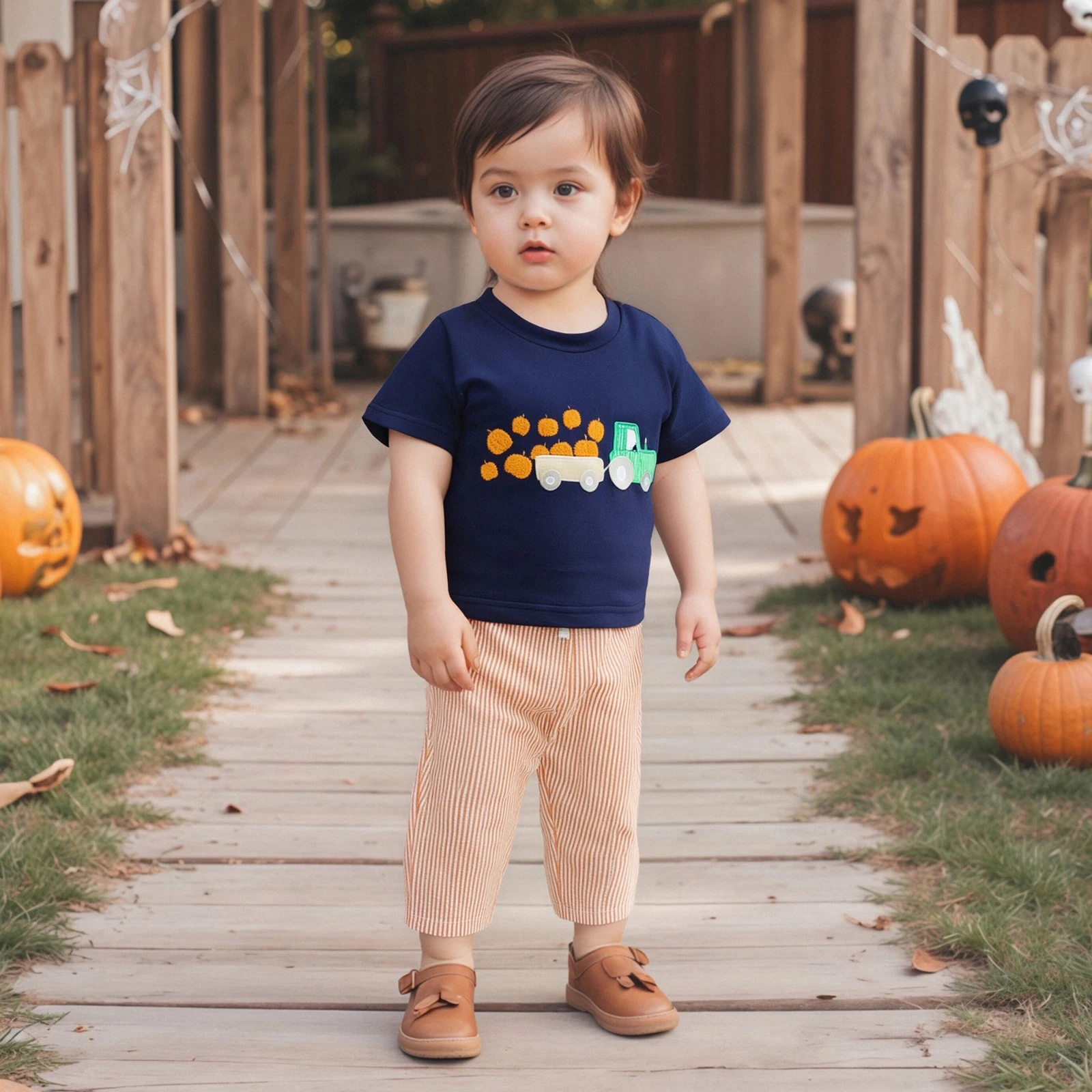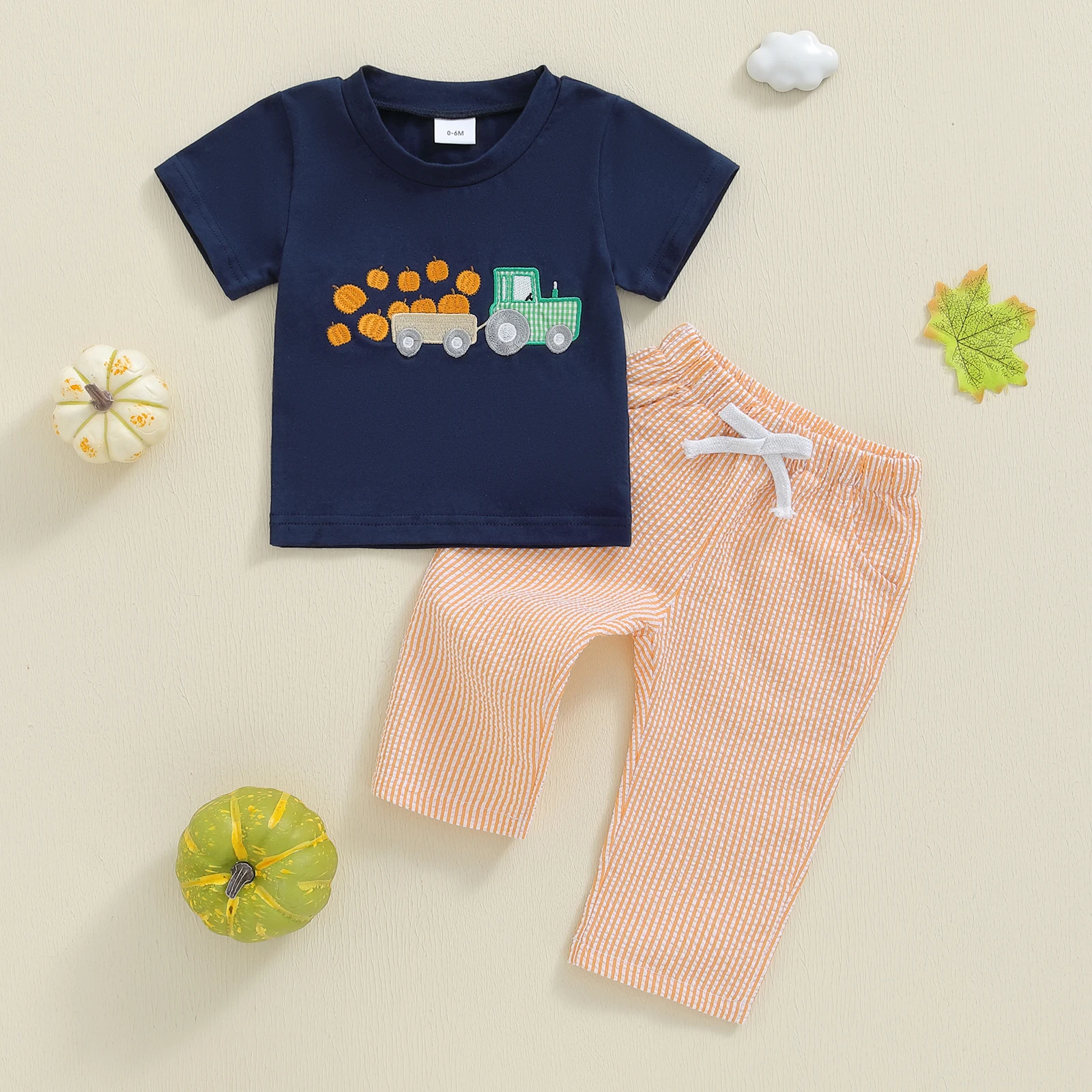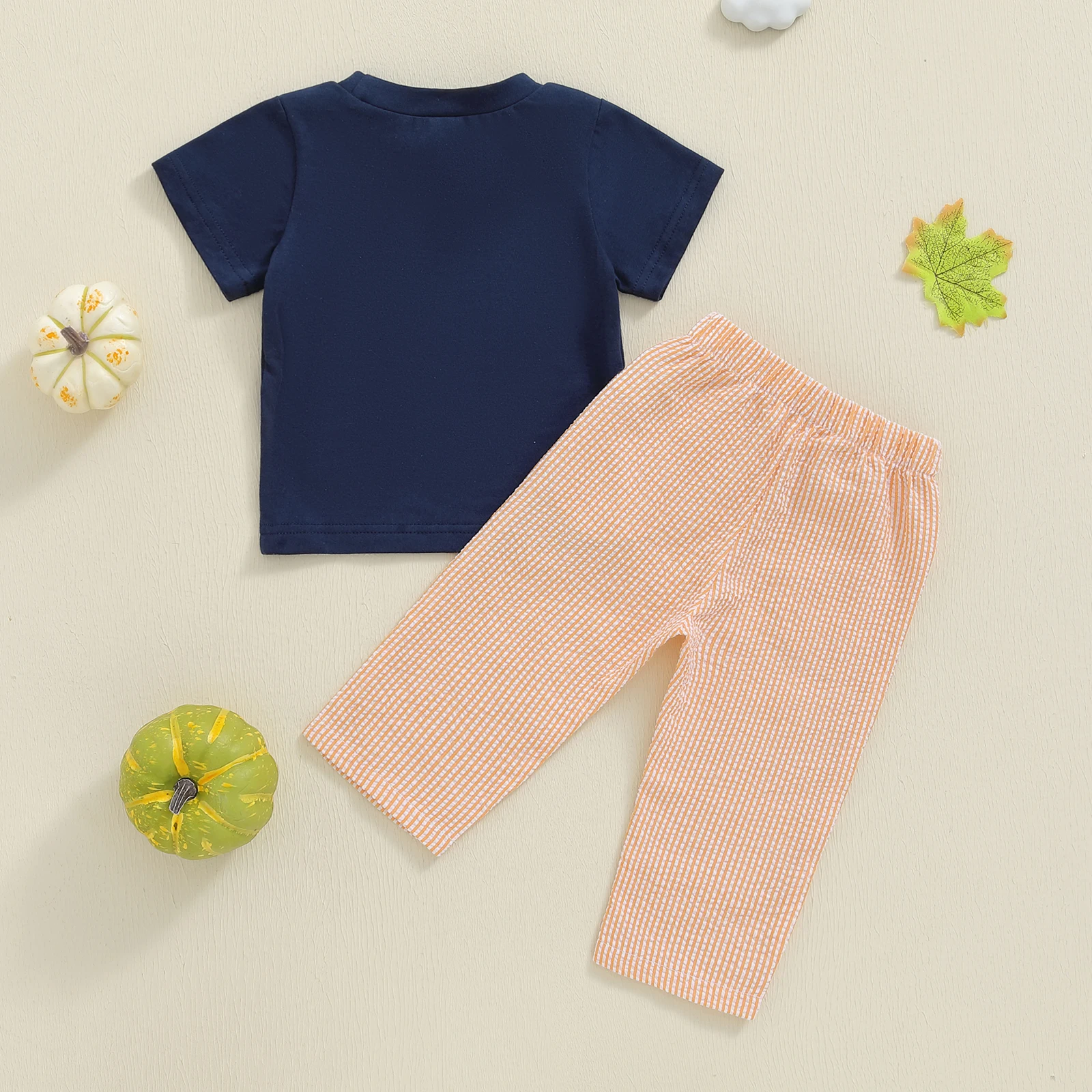 Comprar Suefunskry Conjunto de pantalones a rayas con estampado de calabaza y camión de manga corta de Halloween para bebés y niños pequeños