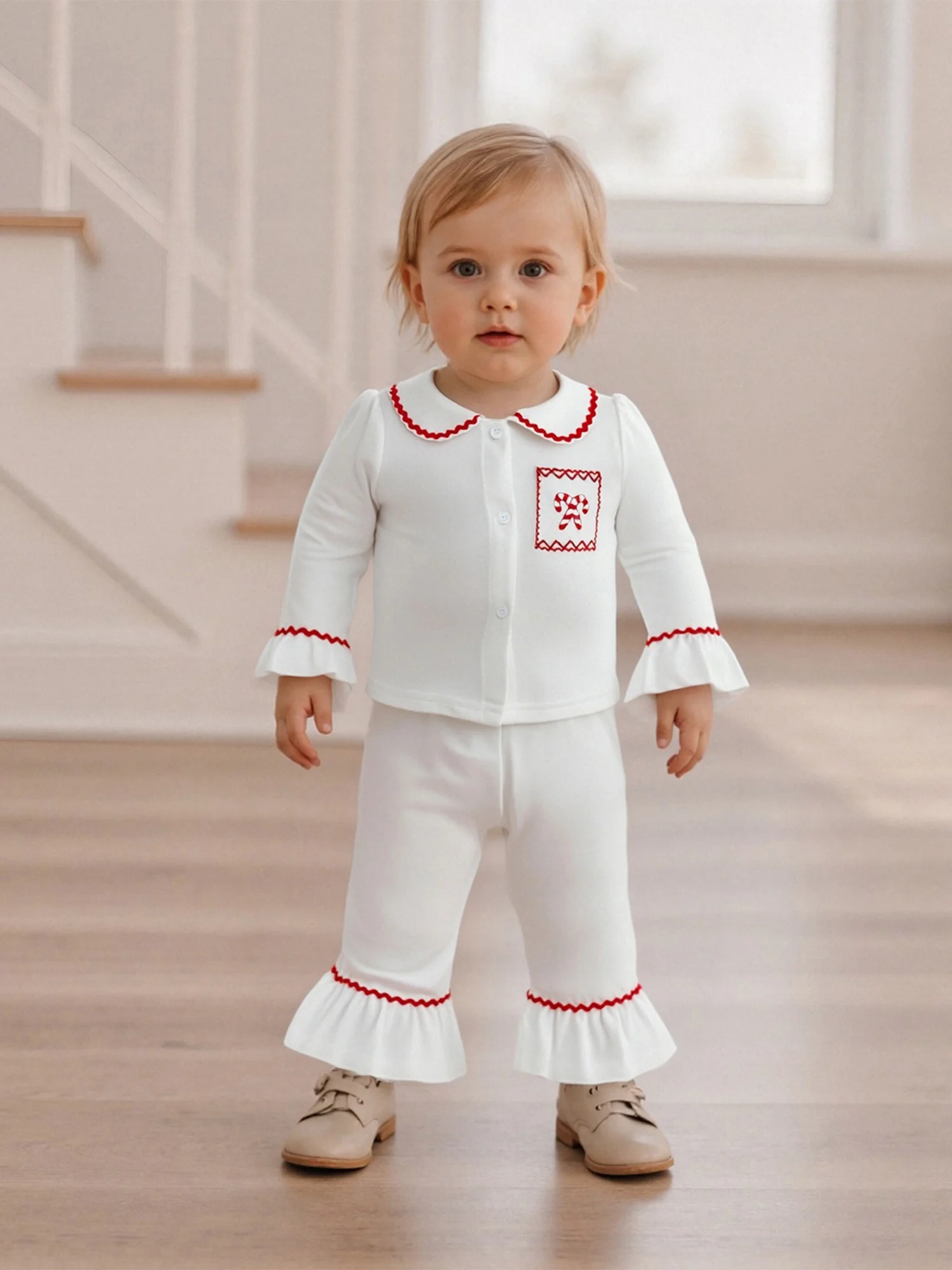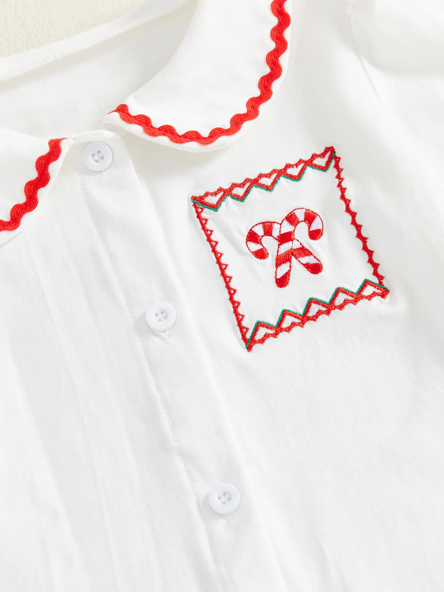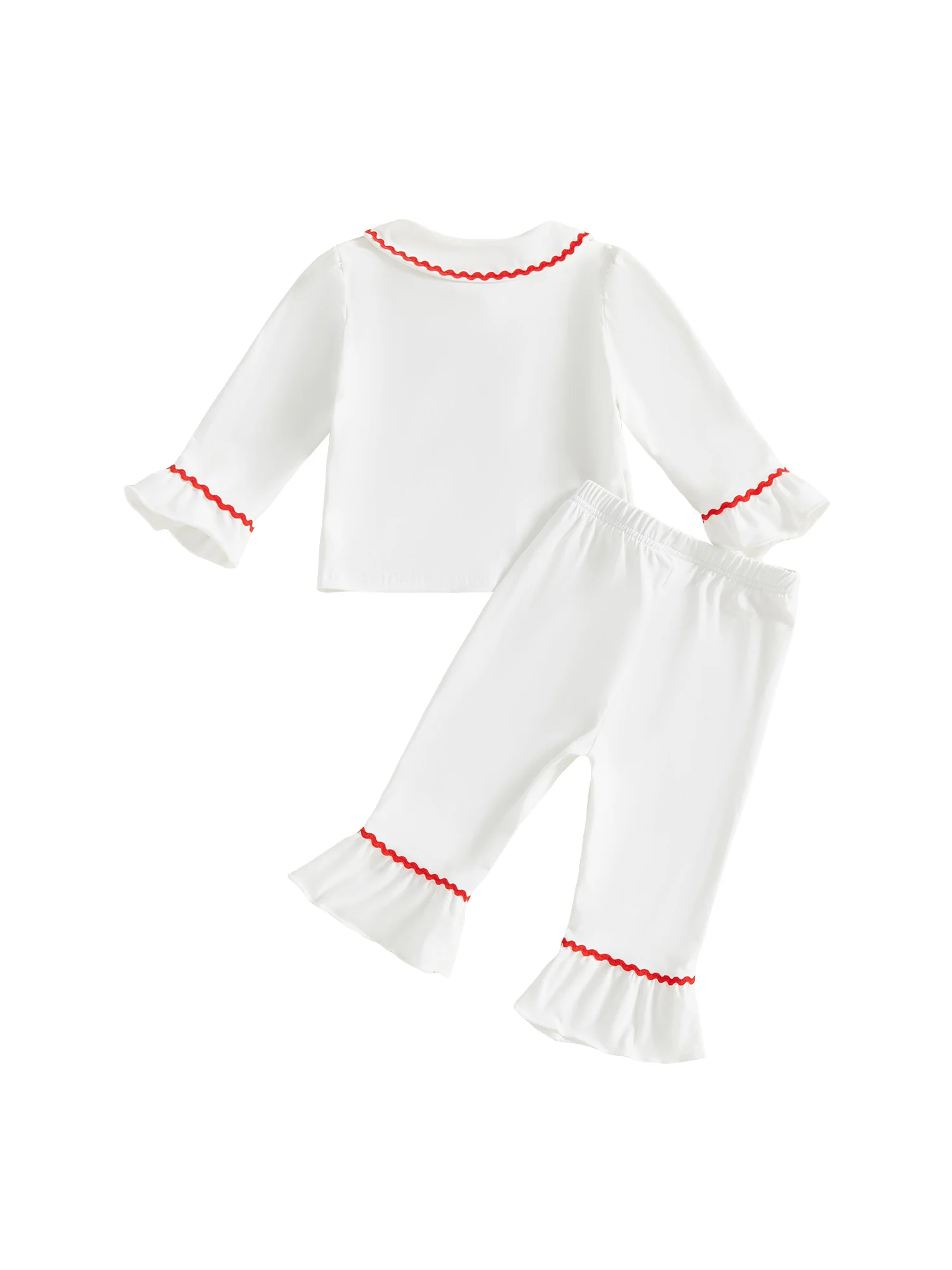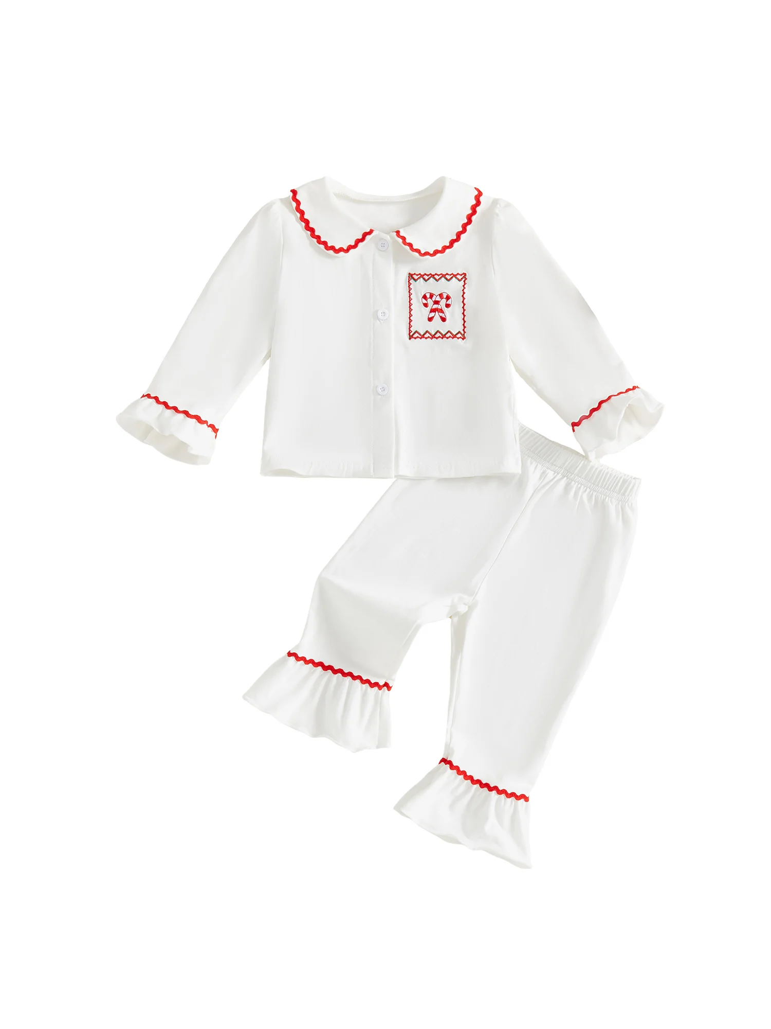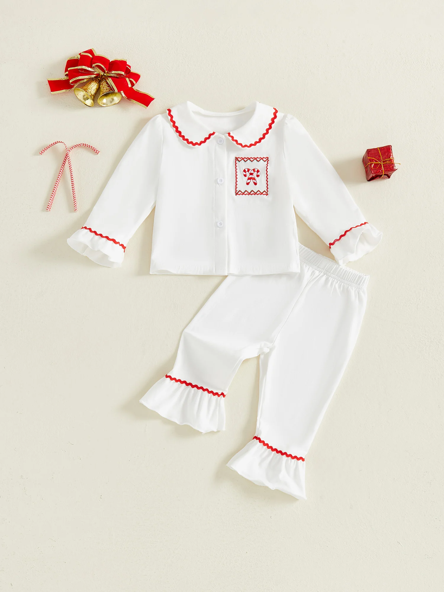 Comprar Suefunskry Conjunto de pijamas navideños para niñas, camisetas bordadas de bastón de caramelo con ribete de encaje de manga larga y pantalones de cintura elástica, ropa de dormir