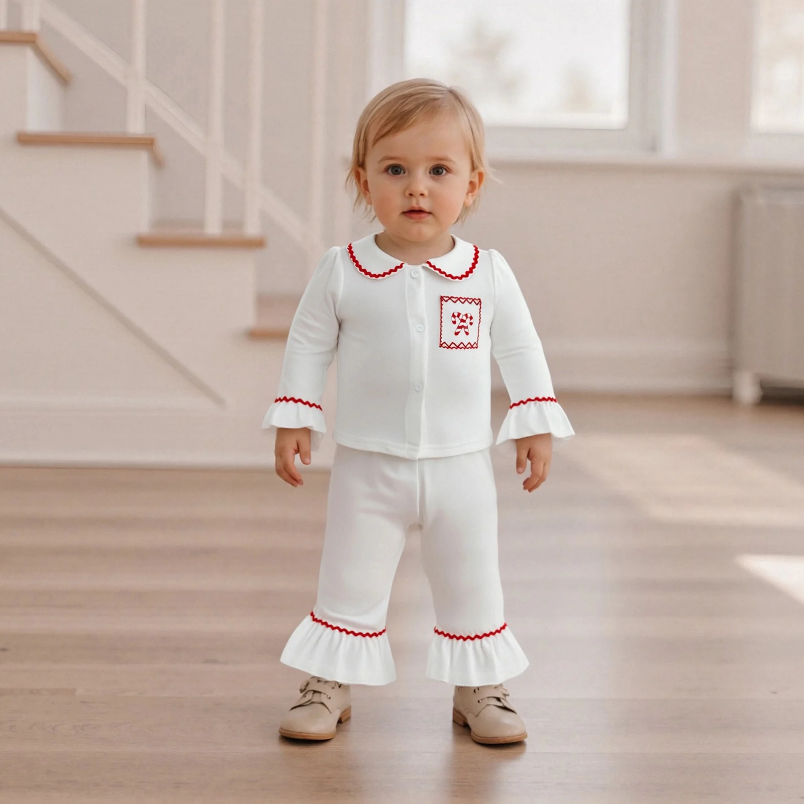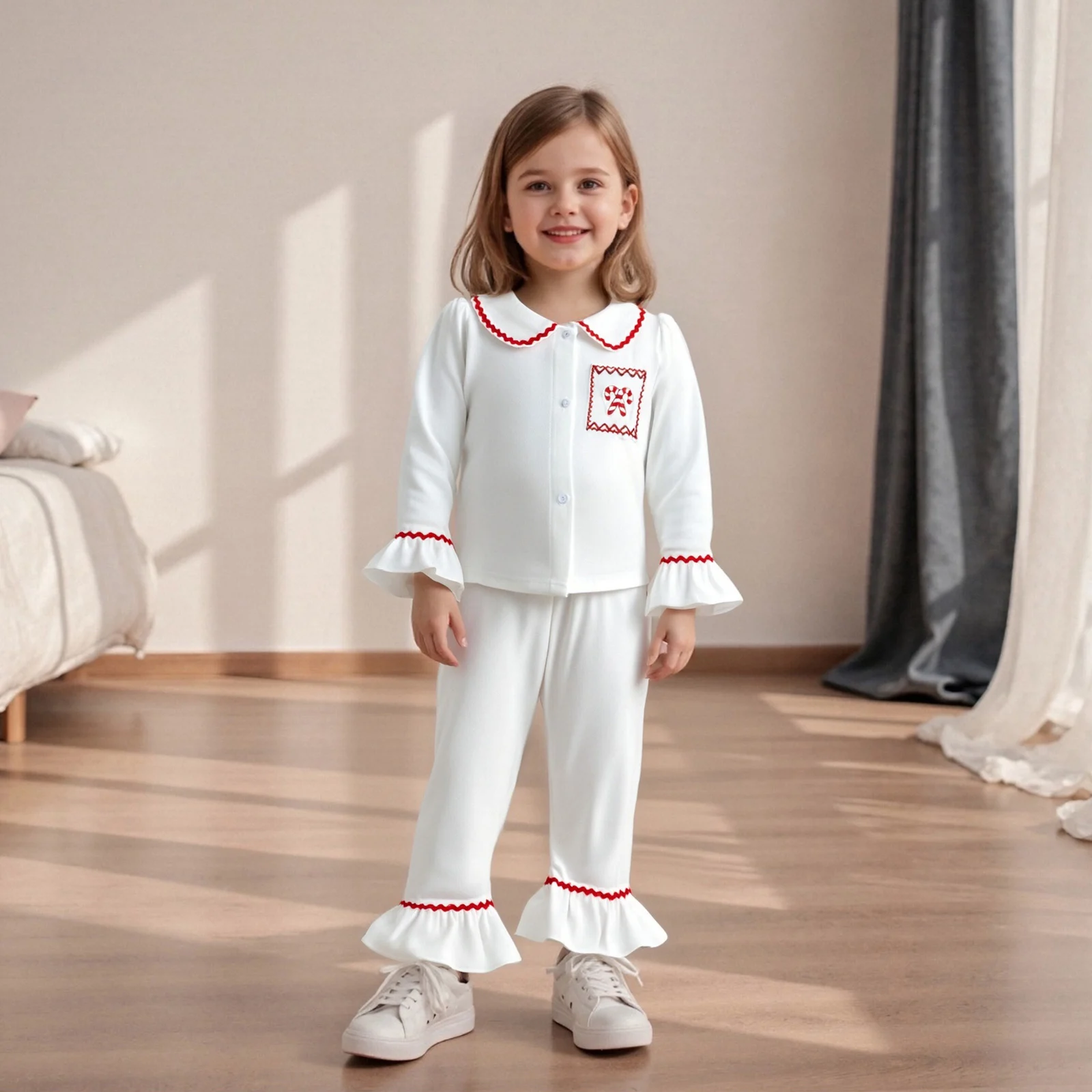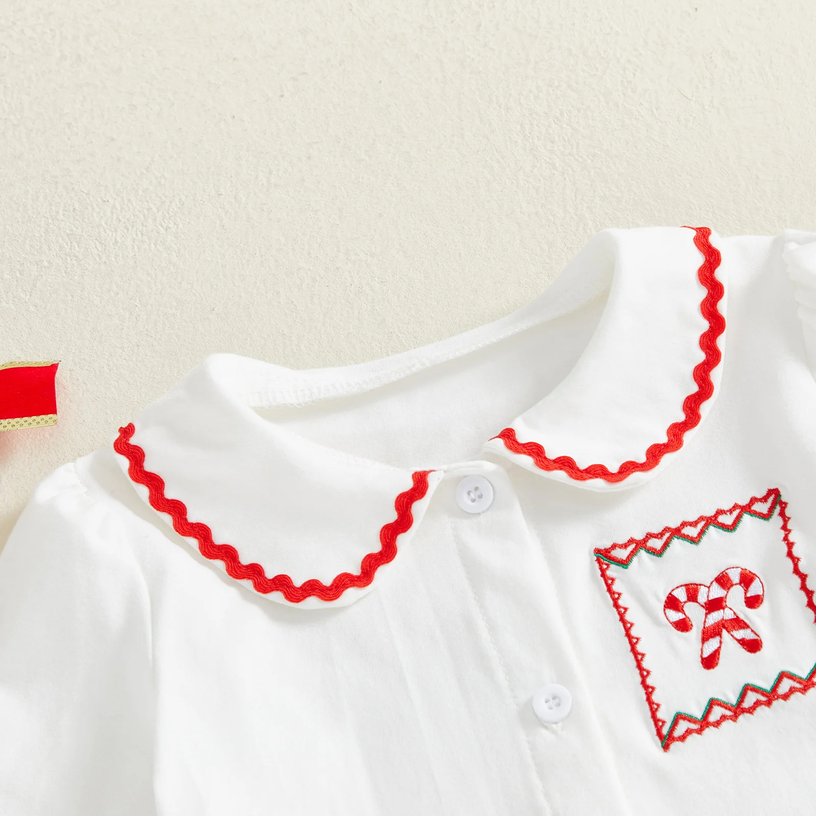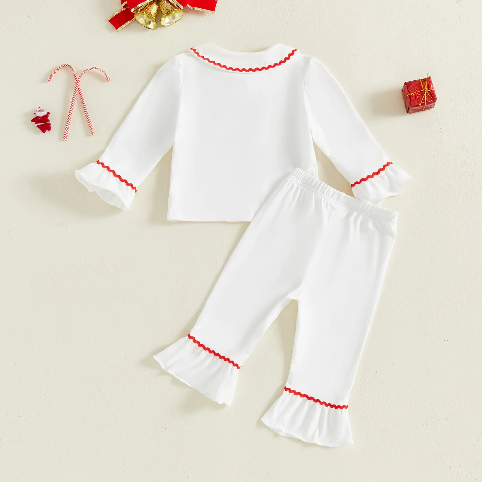 Comprar Suefunskry Conjunto de pijamas navideños para niñas, camisetas bordadas de bastón de caramelo con ribete de encaje de manga larga y pantalones de cintura elástica, ropa de dormir