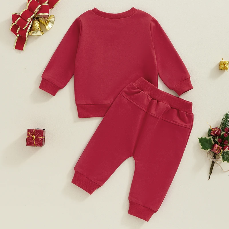 Comprar Suefunskry-Conjunto de sudadera de manga larga con letras bordadas para bebé, ropa de 2 piezas para Navidad, Tops y pantalones, otoño