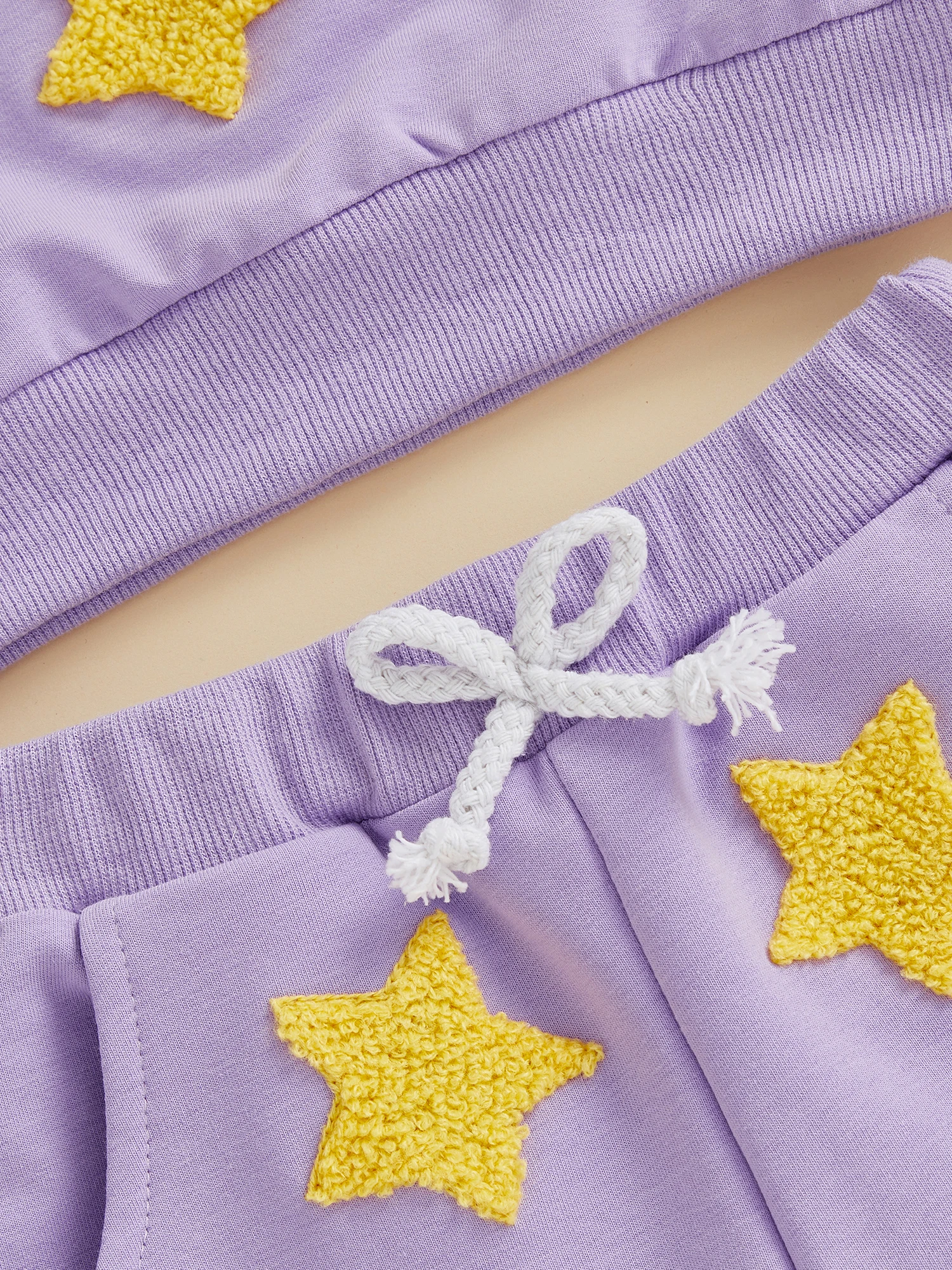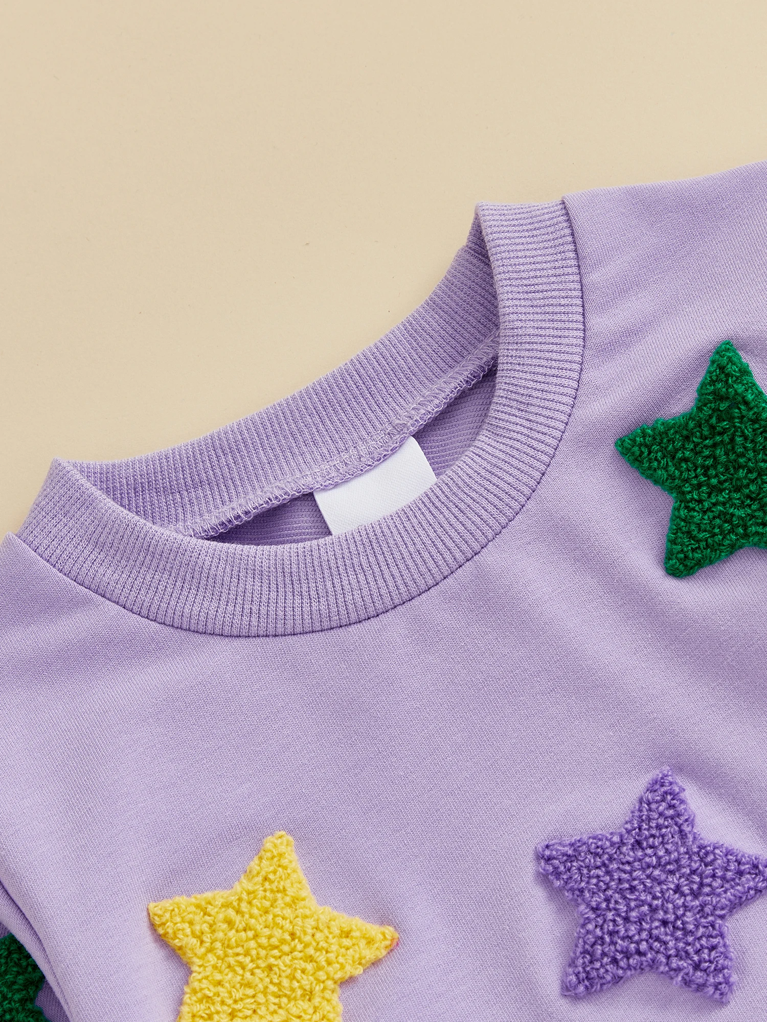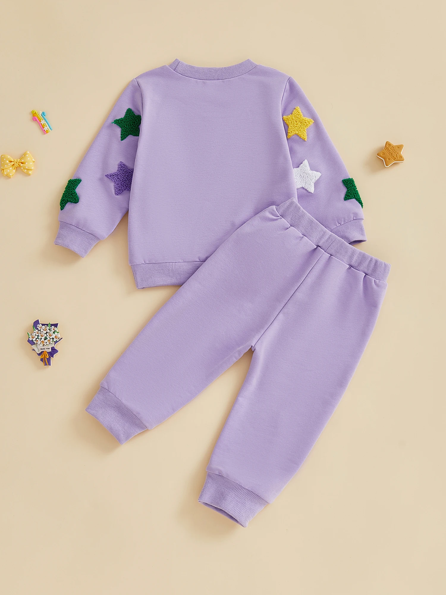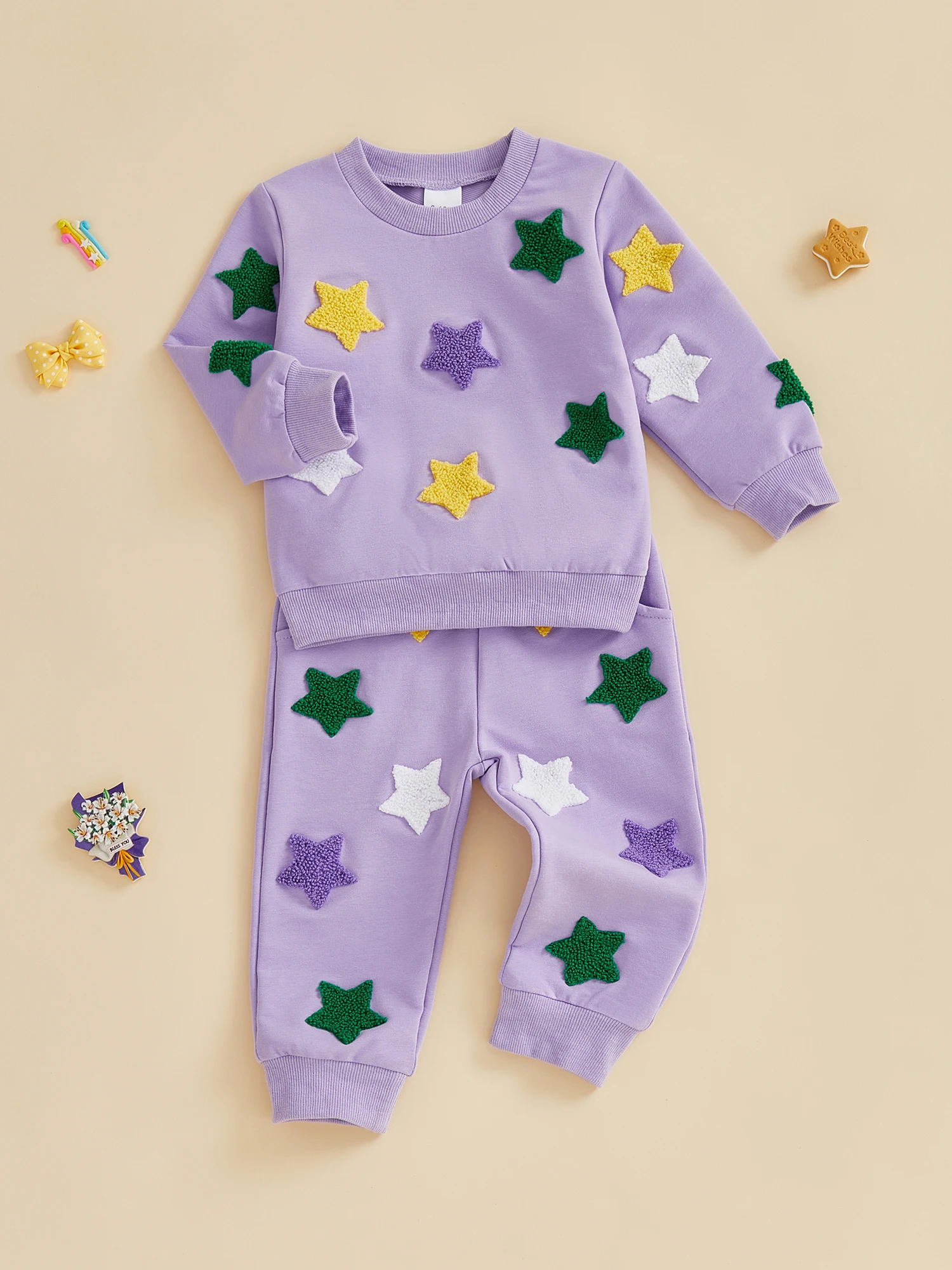 Conjunto de sudadera y pantalones de cintura elástica con bordado de estrellas coloridas y cuello redondo de manga larga para niña y niño