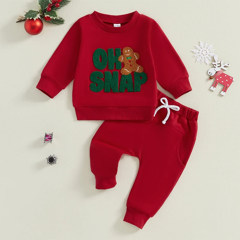 Conjunto de 2 piezas de trajes navideños para bebé, sudadera y pantalones bordados de pan de jengibre de manga larga, ropa de invierno