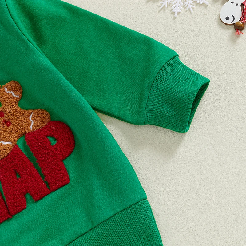 Conjunto de 2 piezas de trajes navideños para bebé, sudadera y pantalones bordados de pan de jengibre de manga larga, ropa de invierno