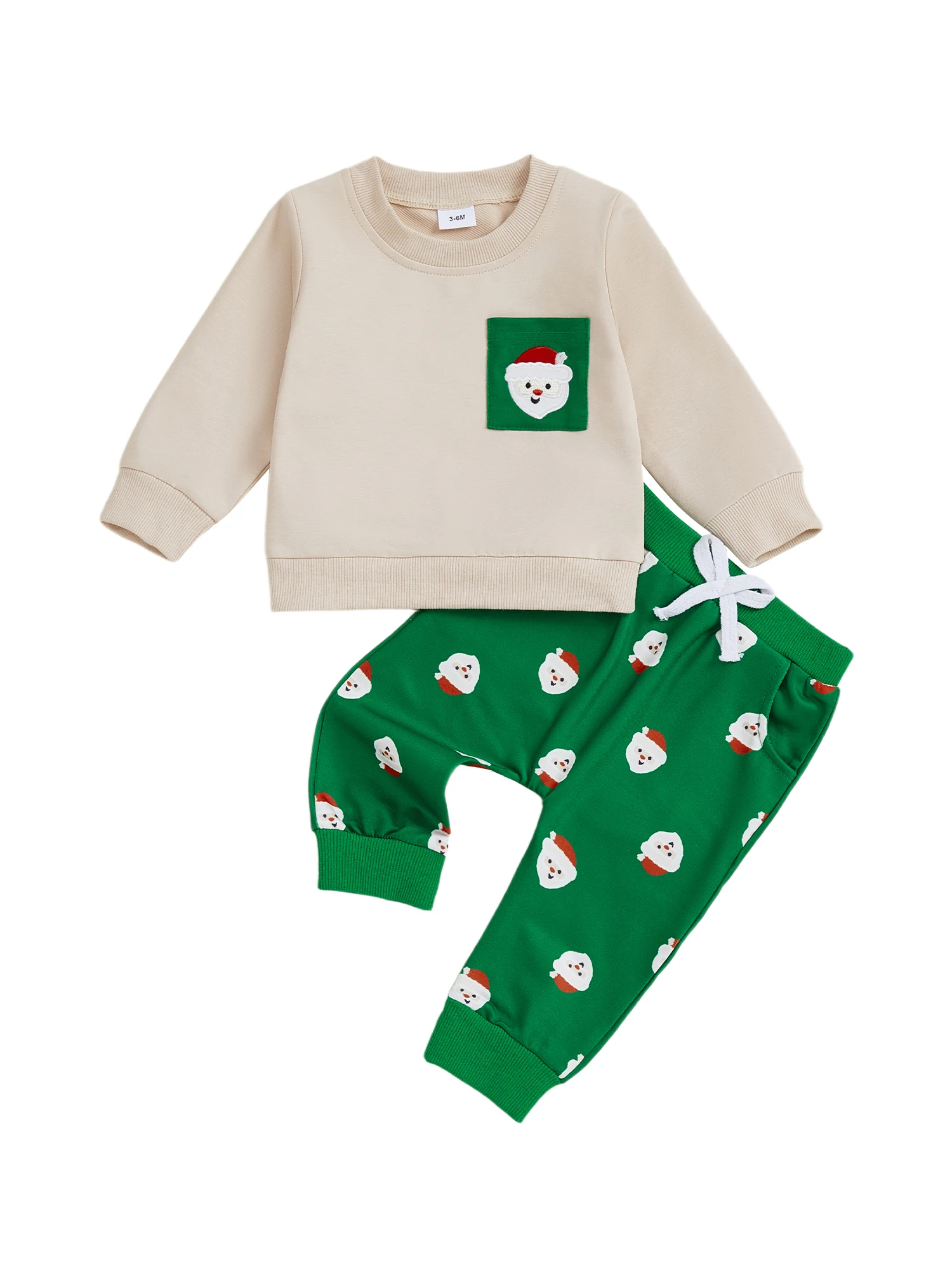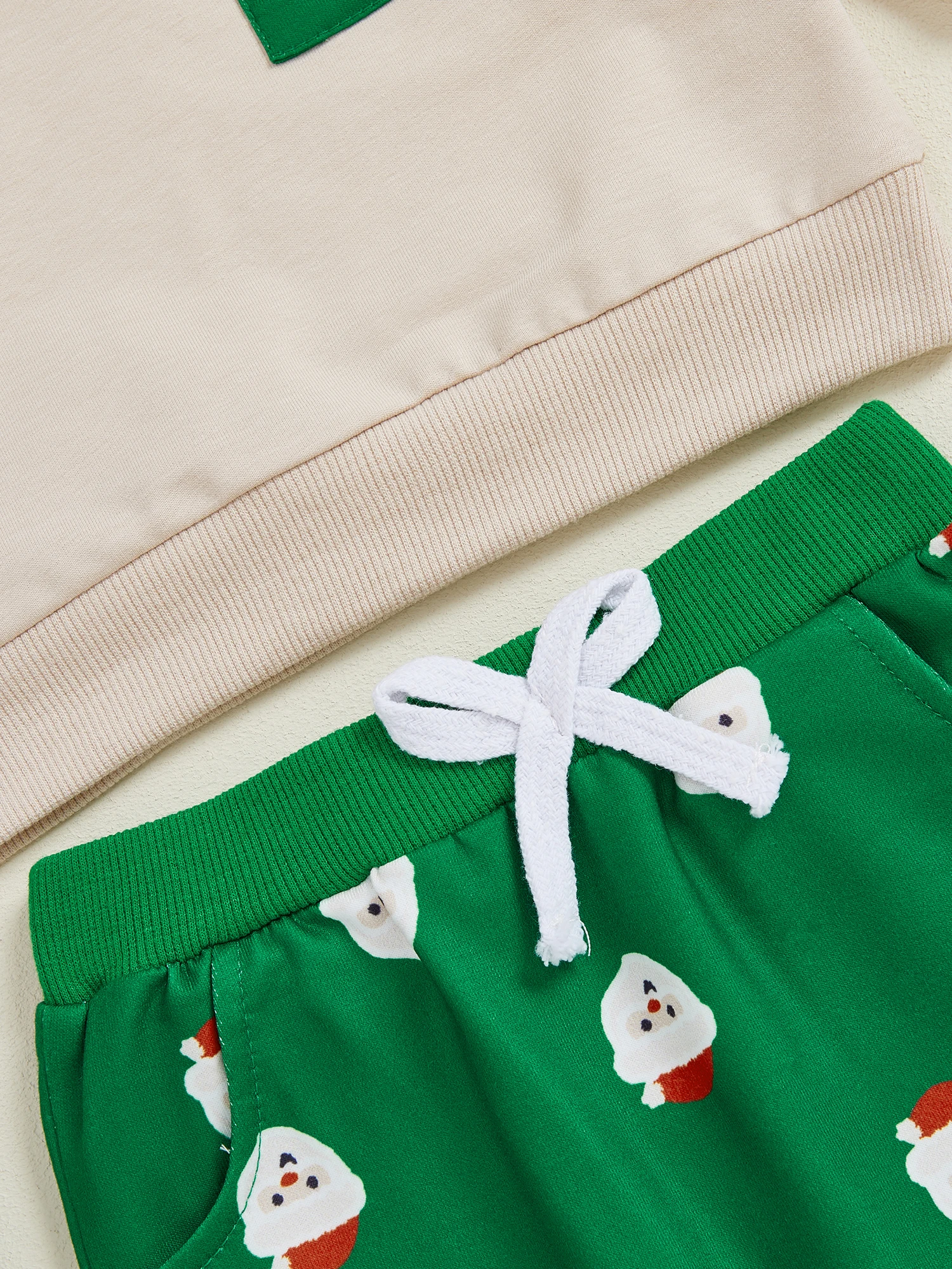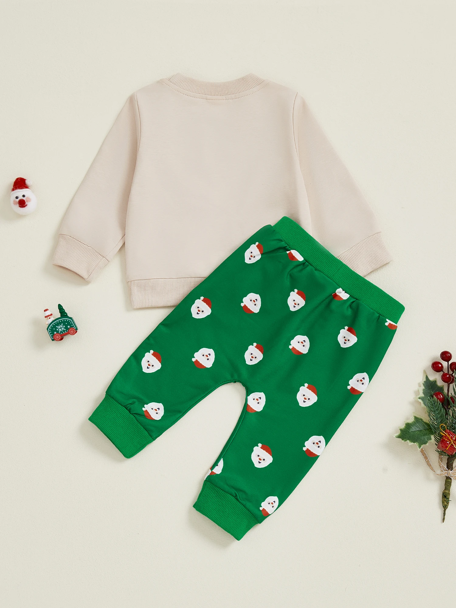 Conjuntos de pantalones navideños de 2 piezas para niños, camisetas de manga larga con cuello redondo, pantalones con cordón y estampado de pan de jengibre