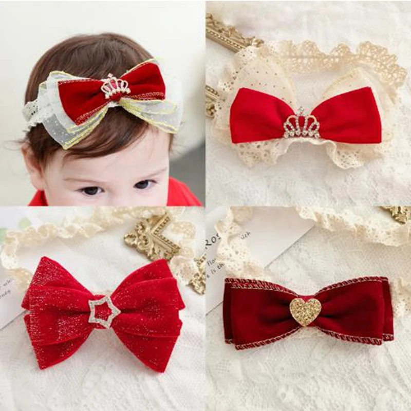 Diademas con lazo para niña, diadema con corona de diamantes de imitación, accesorios para el cabello, regalos para vacaciones de Año Nuevo