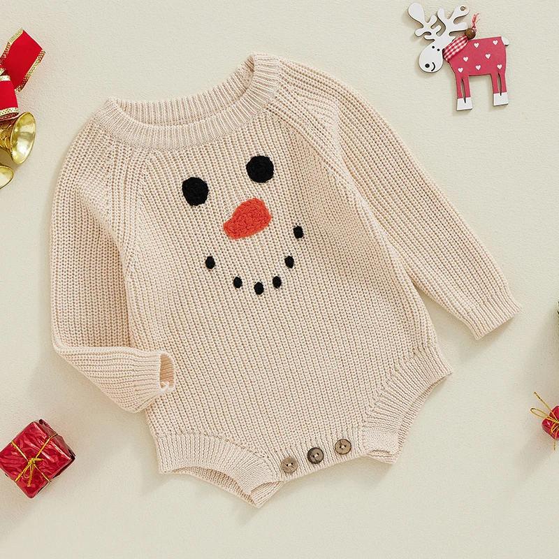 Ropa navideña de bebé con lindo patrón de muñeco de nieve; Pelele de suéter de bebé con escote redondo y manga larga, botones de entrepierna, fácil de usar; Lindo y acogedor, su pequeño recibirá muchos cumplidos usándolo