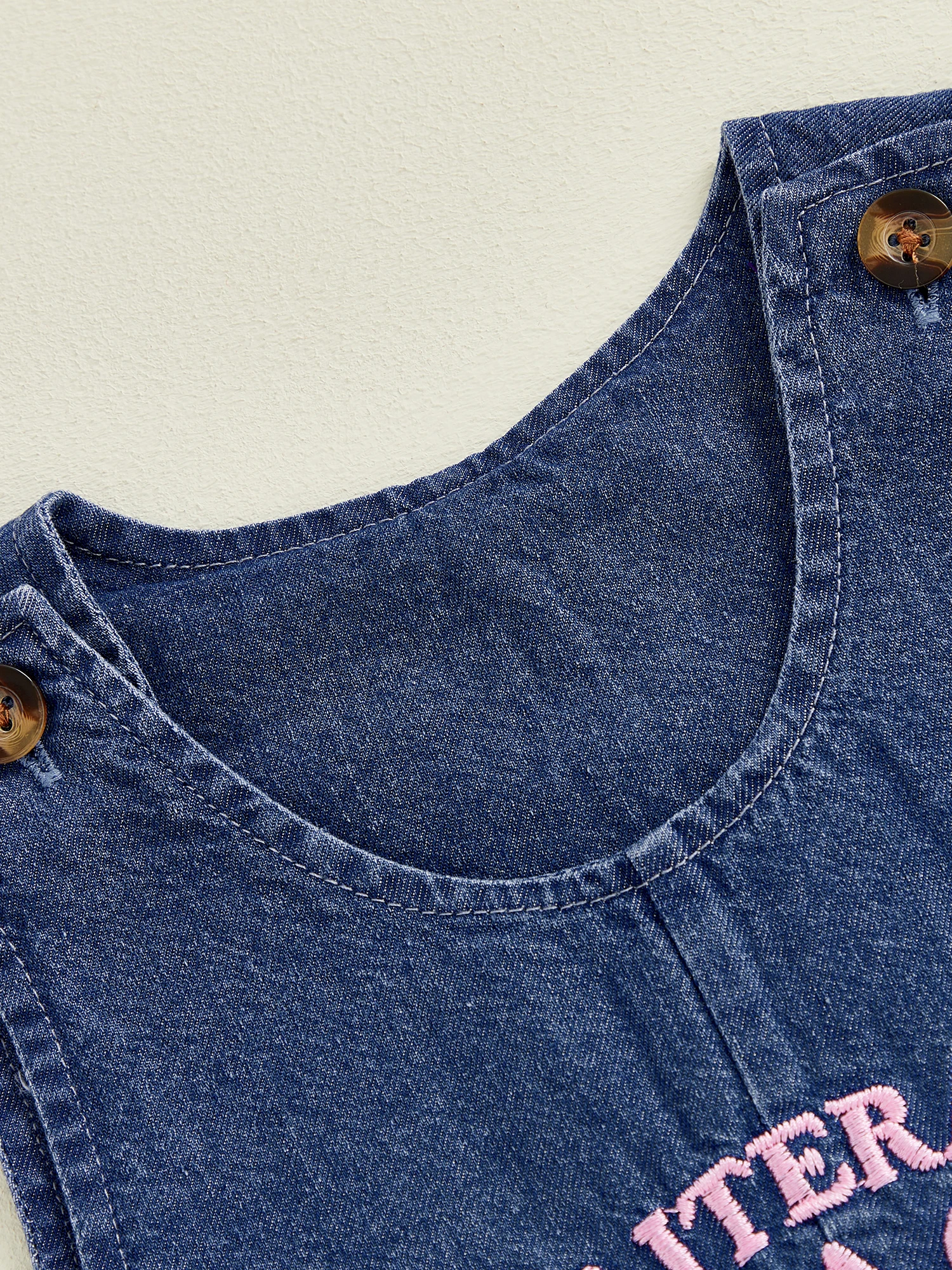 Comprar Suefunskry Mono para bebé niña con letras lindas Bordado de lazo Sin mangas Cuello redondo Salón vaquero Pantalones con bolsillos