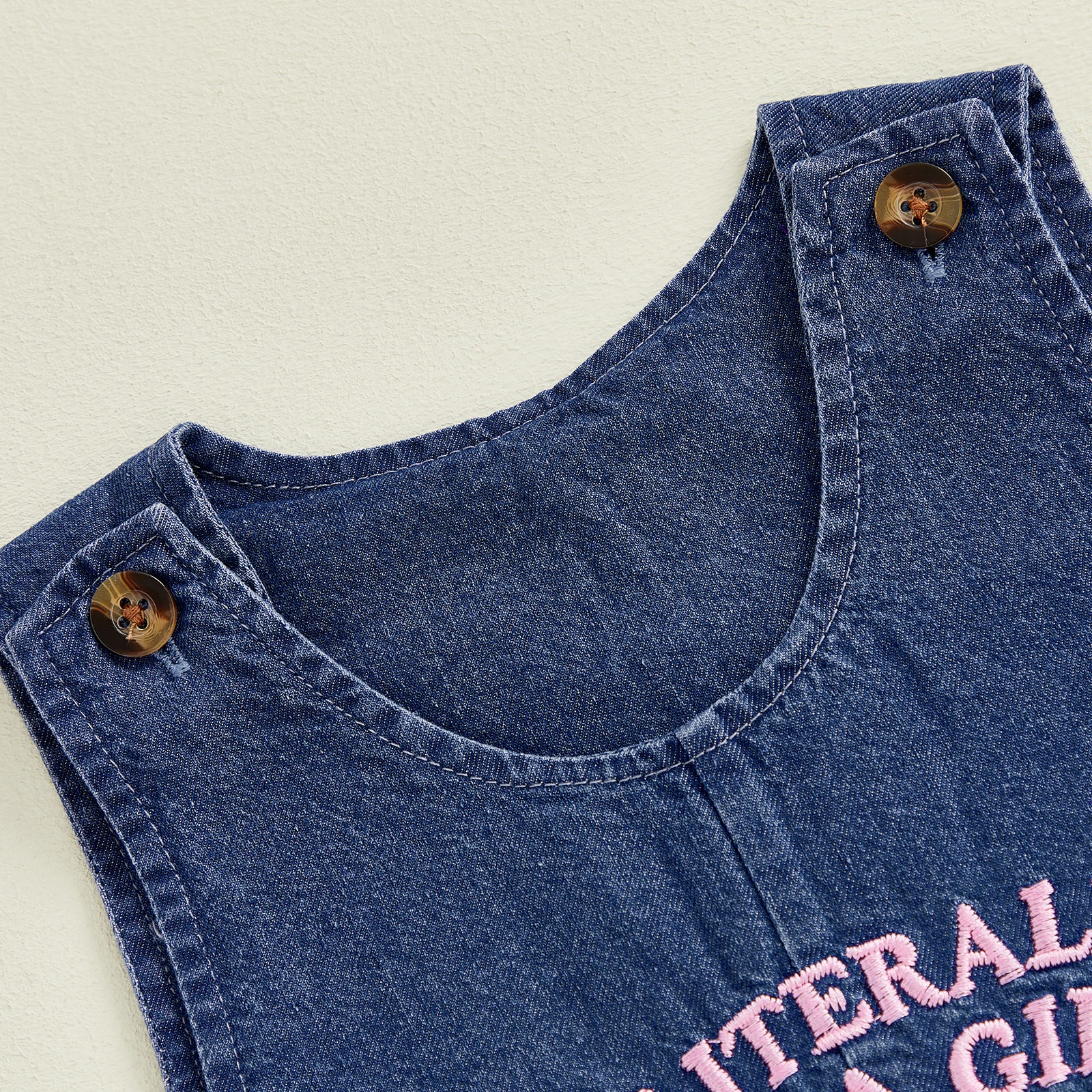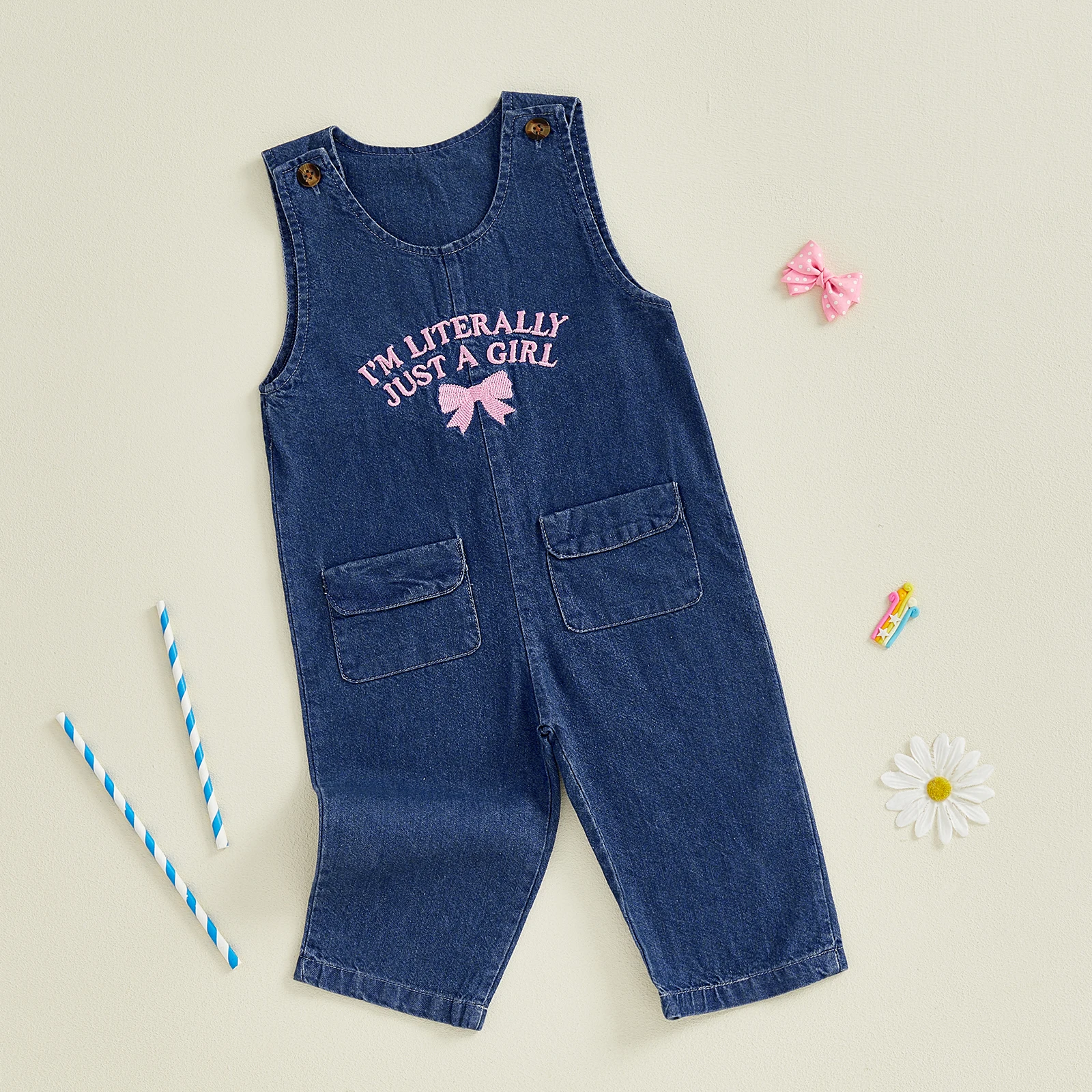 Comprar Suefunskry Mono para bebé niña con letras lindas Bordado de lazo Sin mangas Cuello redondo Salón vaquero Pantalones con bolsillos