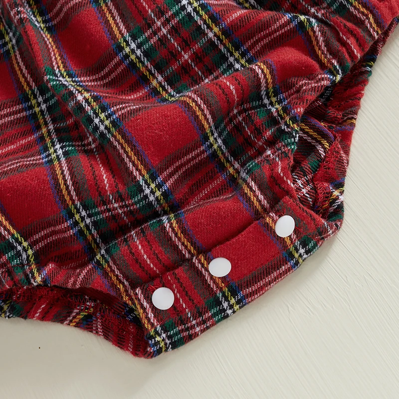Mono de Navidad para niñas, mono a cuadros de manga larga con cuello redondo y diadema