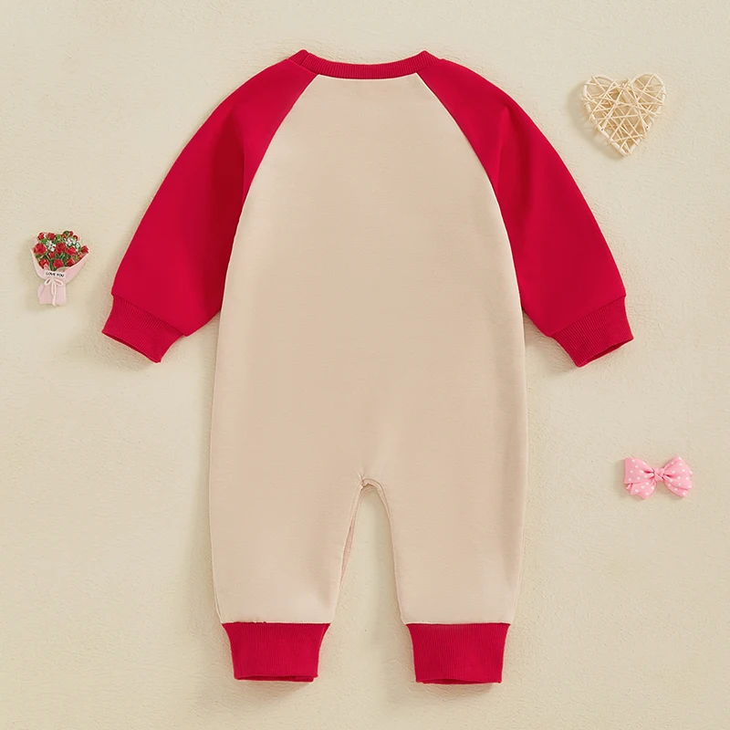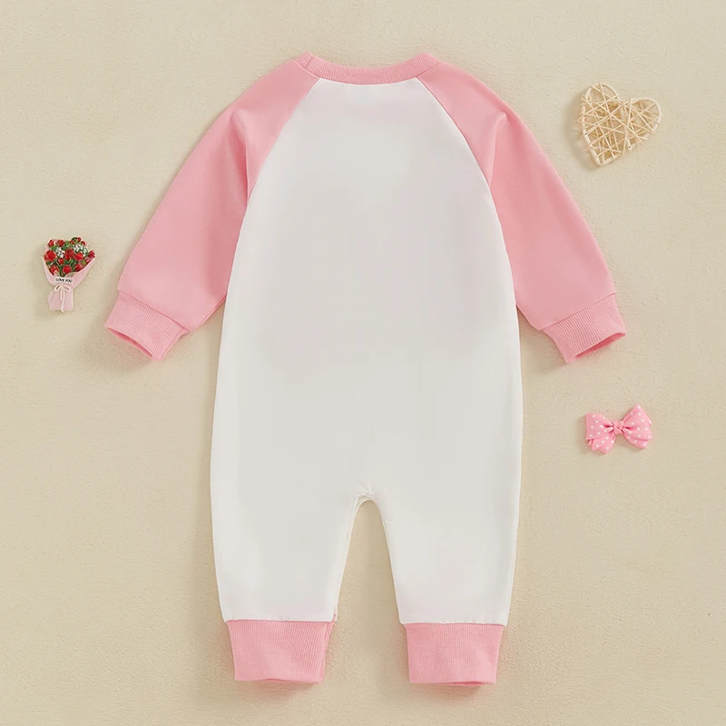Mono para niñas, mameluco informal de manga larga con cuello redondo y letras bordadas con lazo, ropa del Día de San Valentín