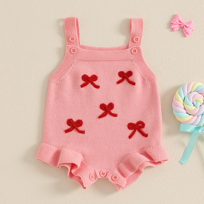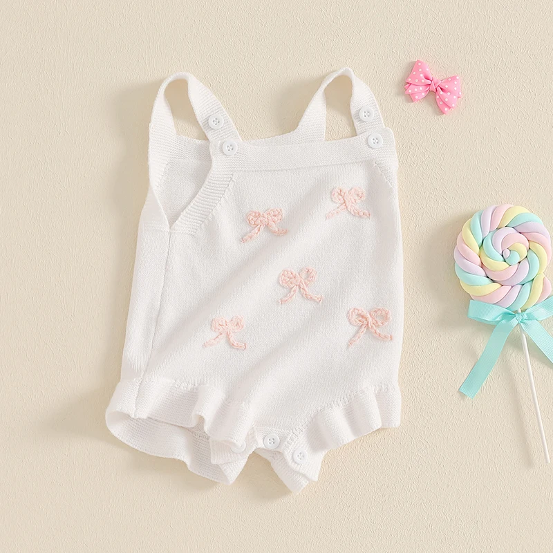 Baby Girl Overalls, Sleeveless Bows Knit Romper Bodysuit Fall Clothes for Casual Daily
