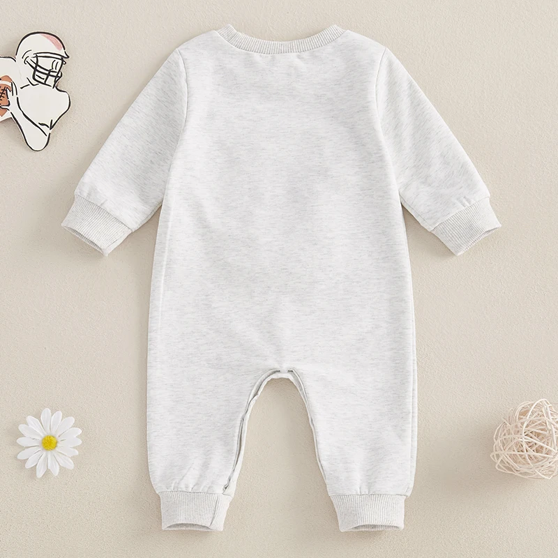 Mameluco de otoño para bebé niña niño carta fútbol bordado manga larga cuello redondo mono largo