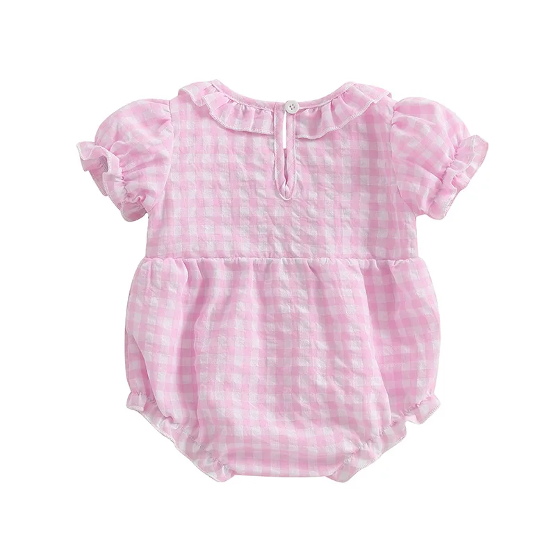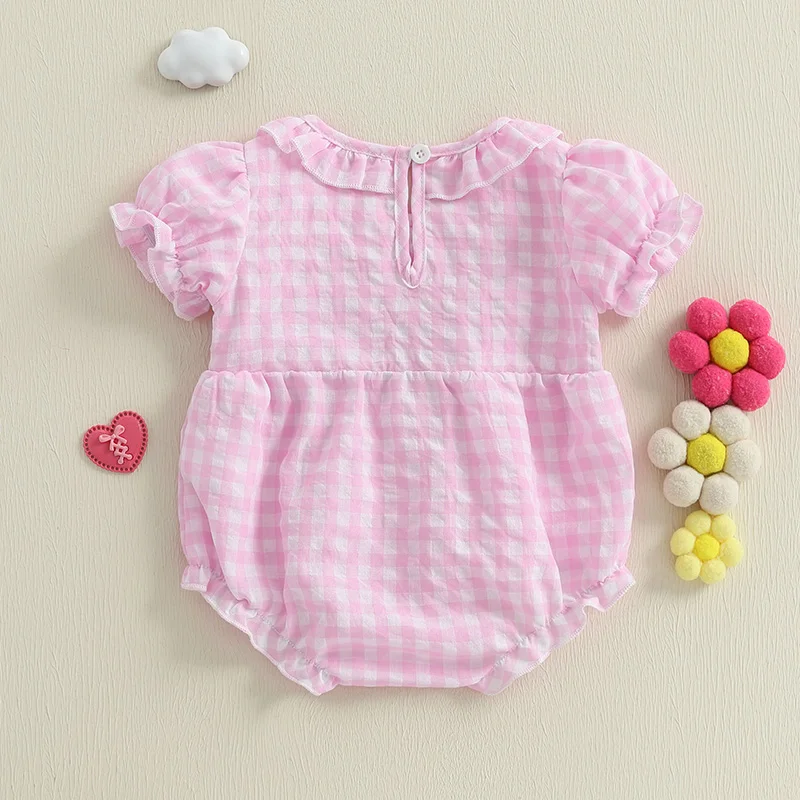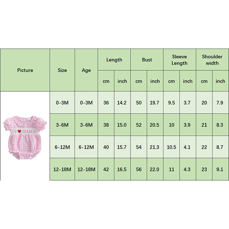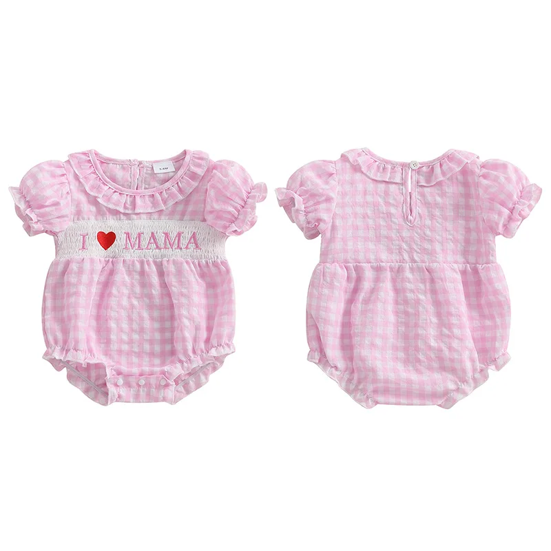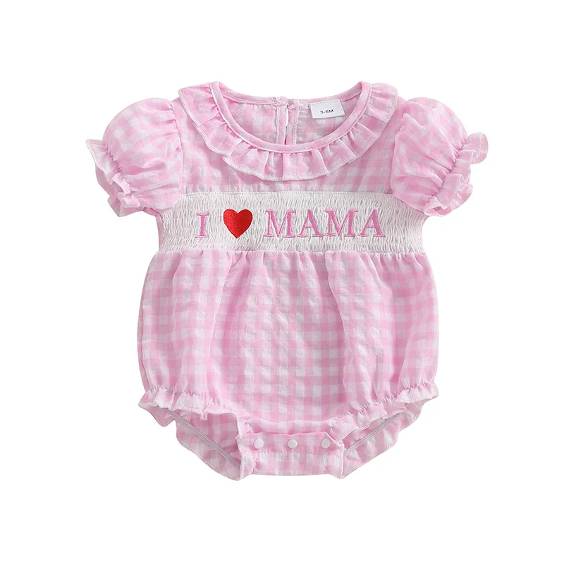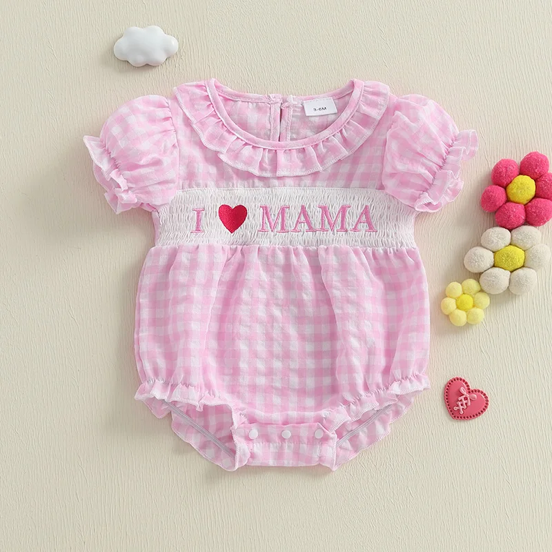 Mameluco de verano para niña, mono fruncido con bordado de letras y corazones de manga corta, mono para recién nacido para el Día de la Madre