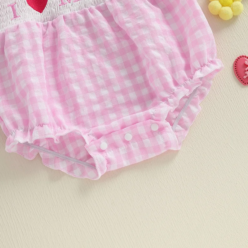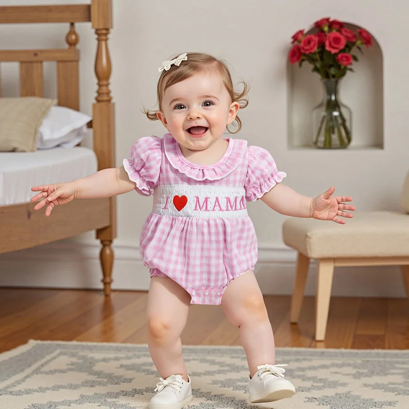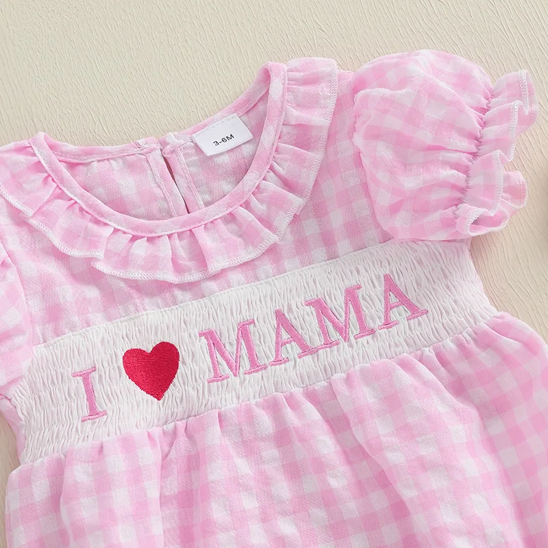 Mameluco de verano para niña, mono fruncido con bordado de letras y corazones de manga corta, mono para recién nacido para el Día de la Madre
