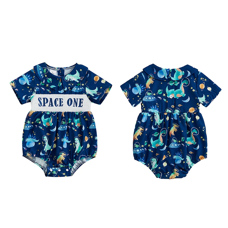 Comprar Suefunskry, peleles para niñas, ropa de cumpleaños, Bordado de letras, estampado de dinosaurio, monos con cuello de muñeca de manga corta