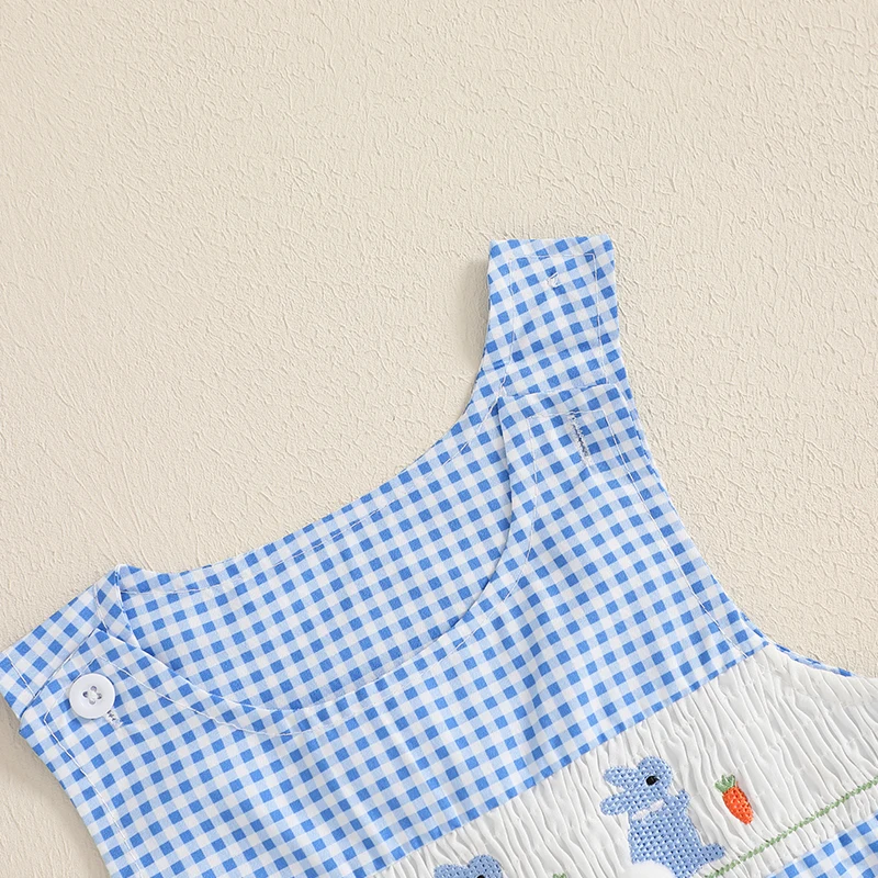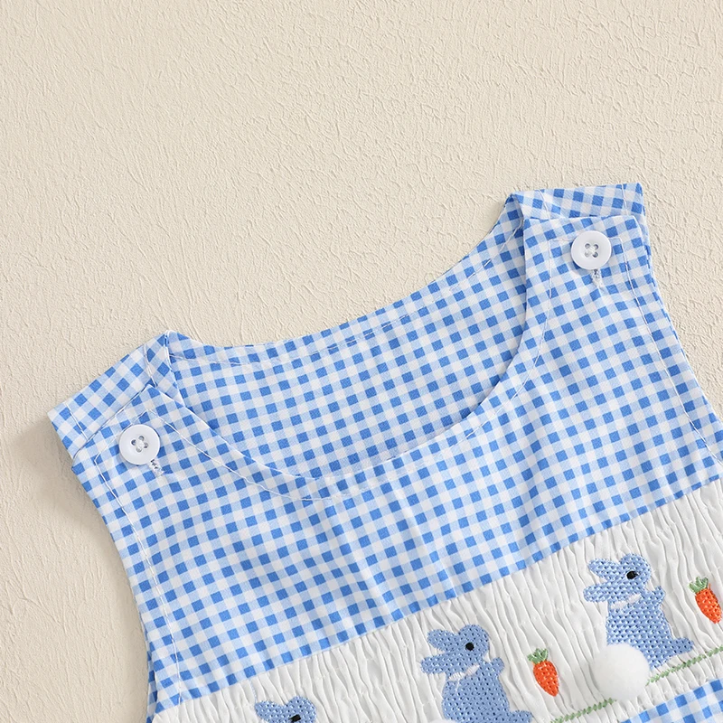 Comprar Suefunskry, peleles para niñas, ropa de Pascua, conejo, zanahoria, bordado a cuadros, monos infantiles sin mangas