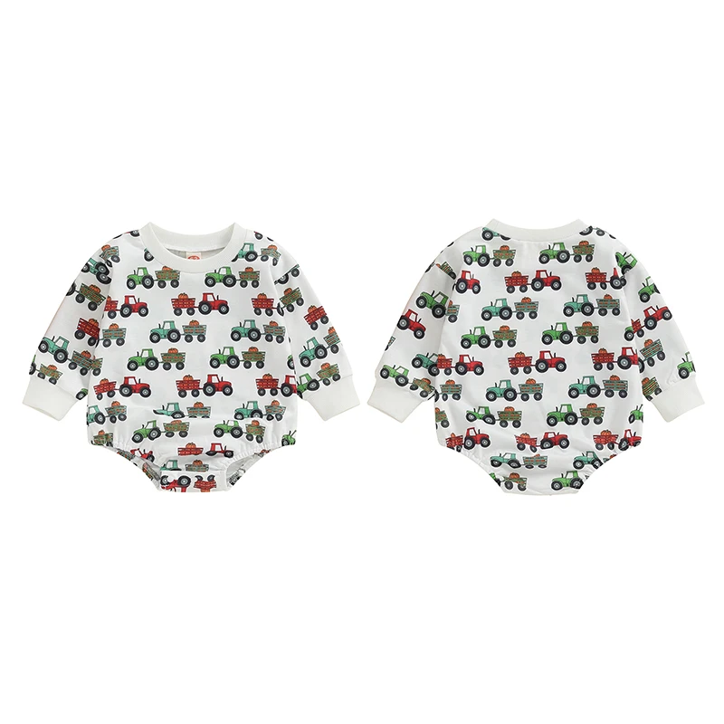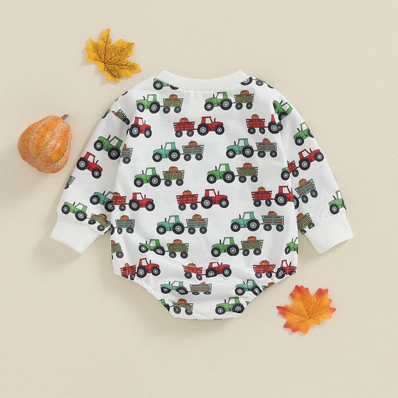 Bebé Sudadera Mameluco Dibujos animados Tractor & Calabaza Imprimir Cuello redondo Mono de manga larga para el otoño