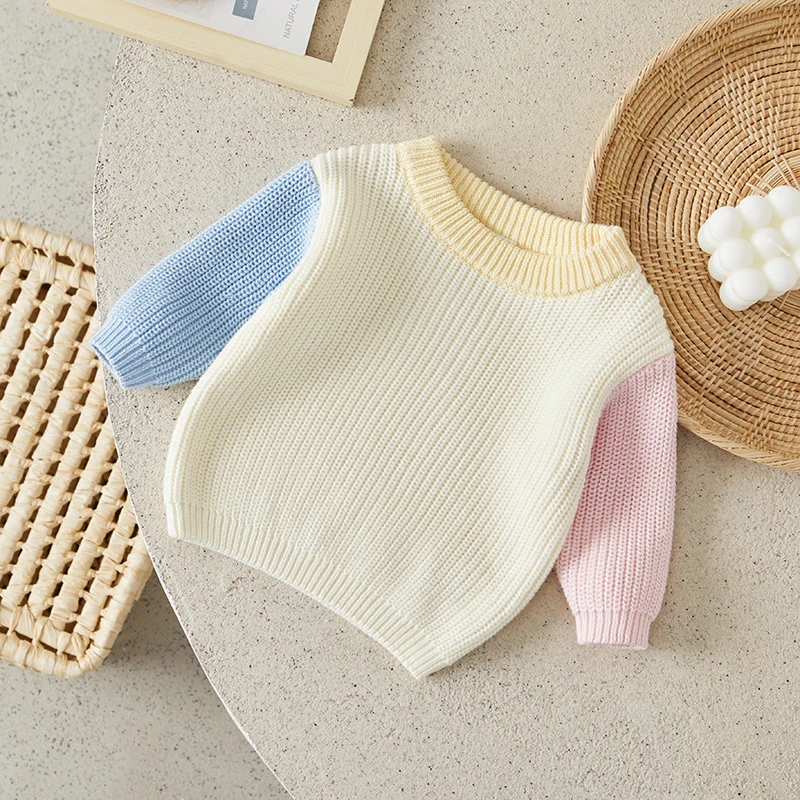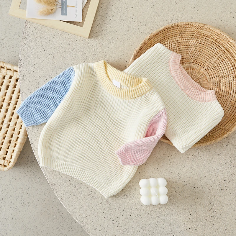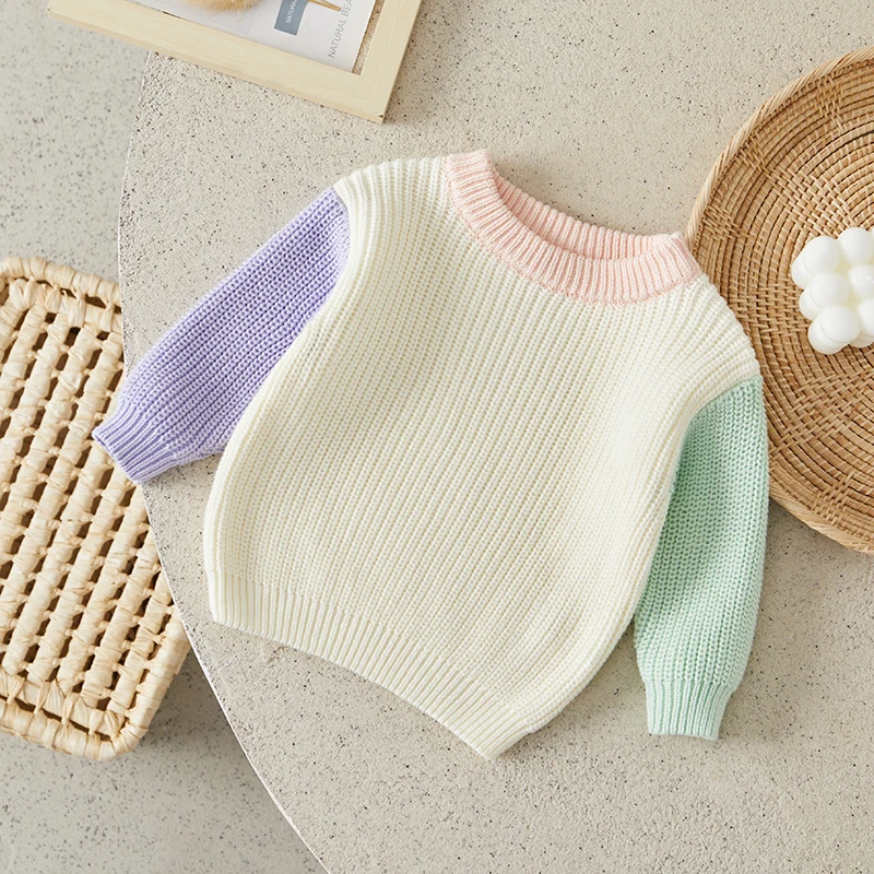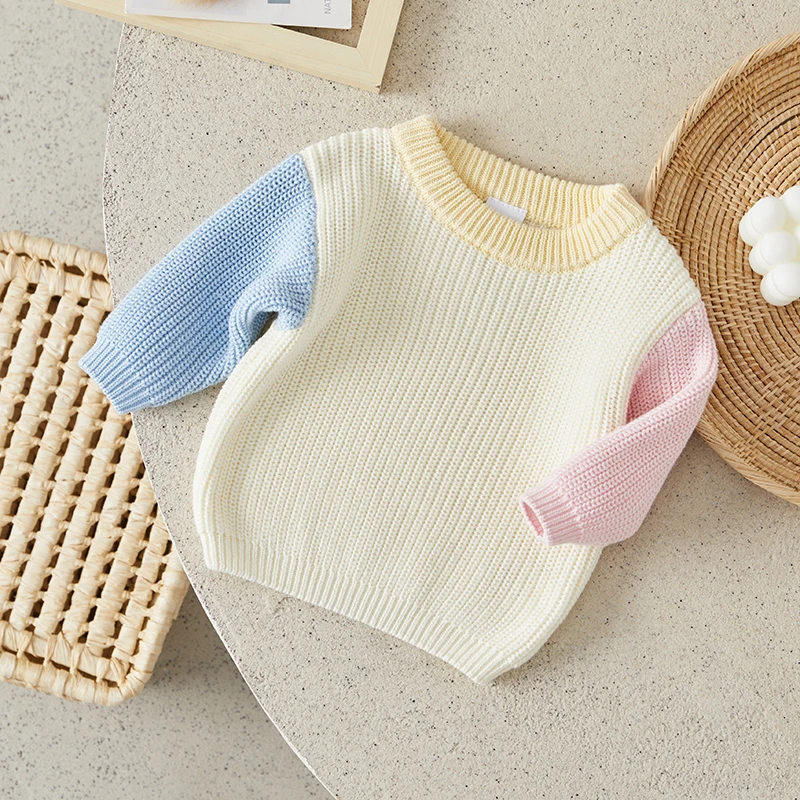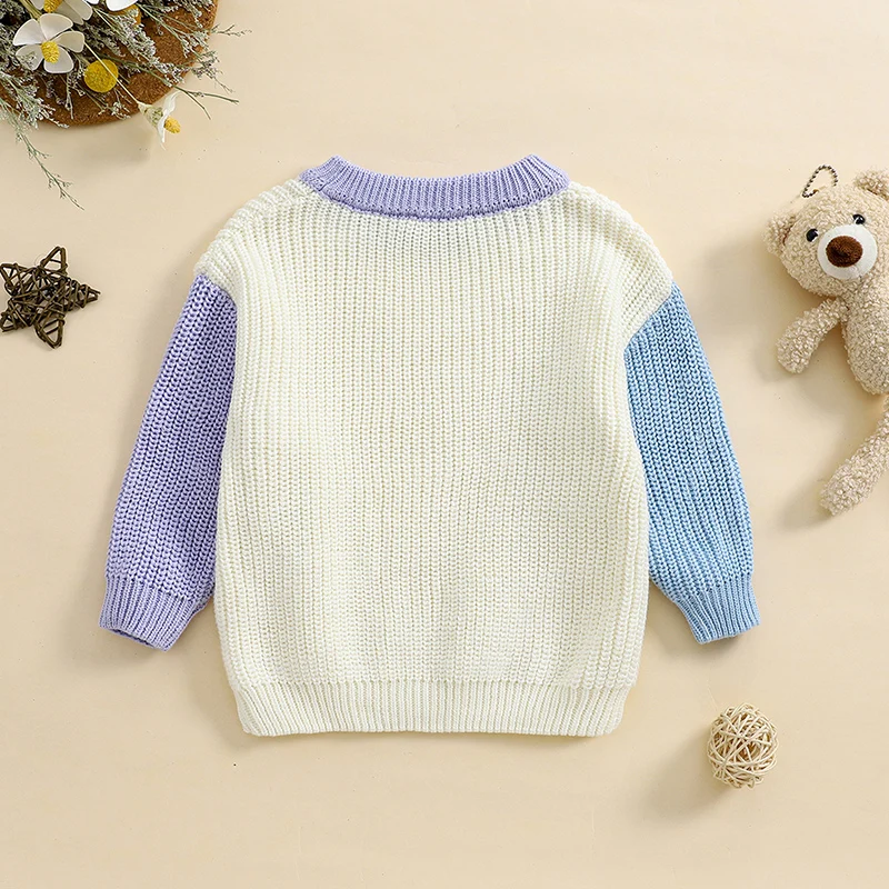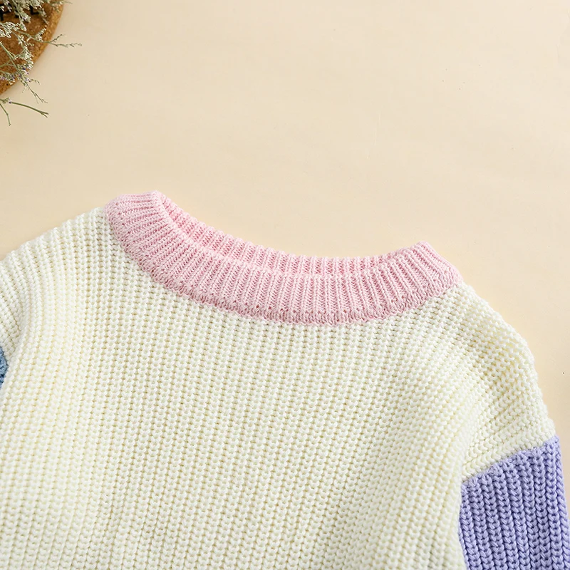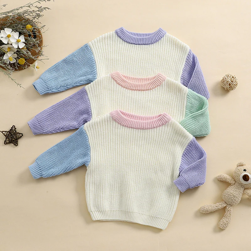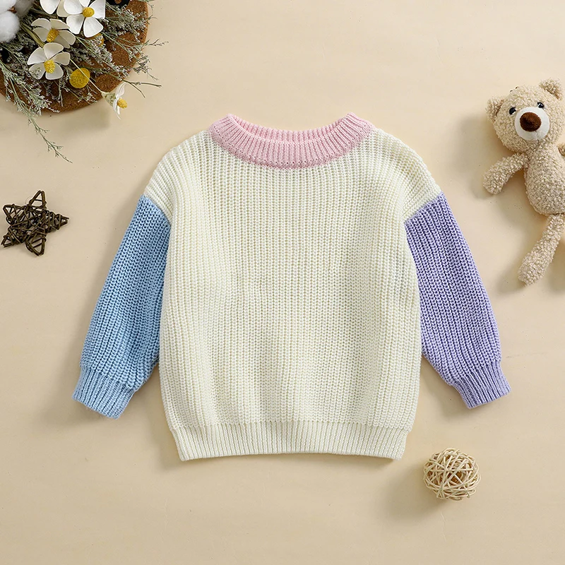 Toddler Girls Boys Sweater Contrast Color Crew Neck Long Sleeve Baby Pullovers Fall Winter Casual Tops