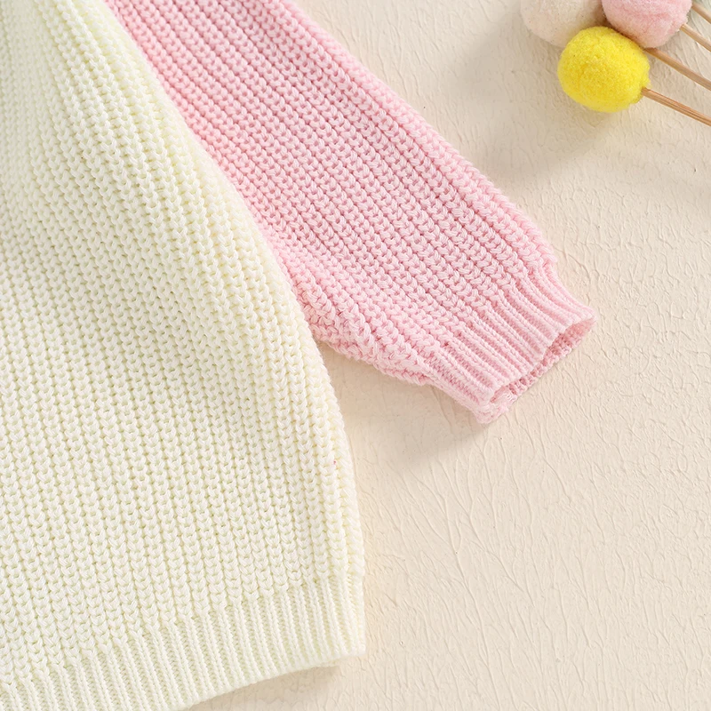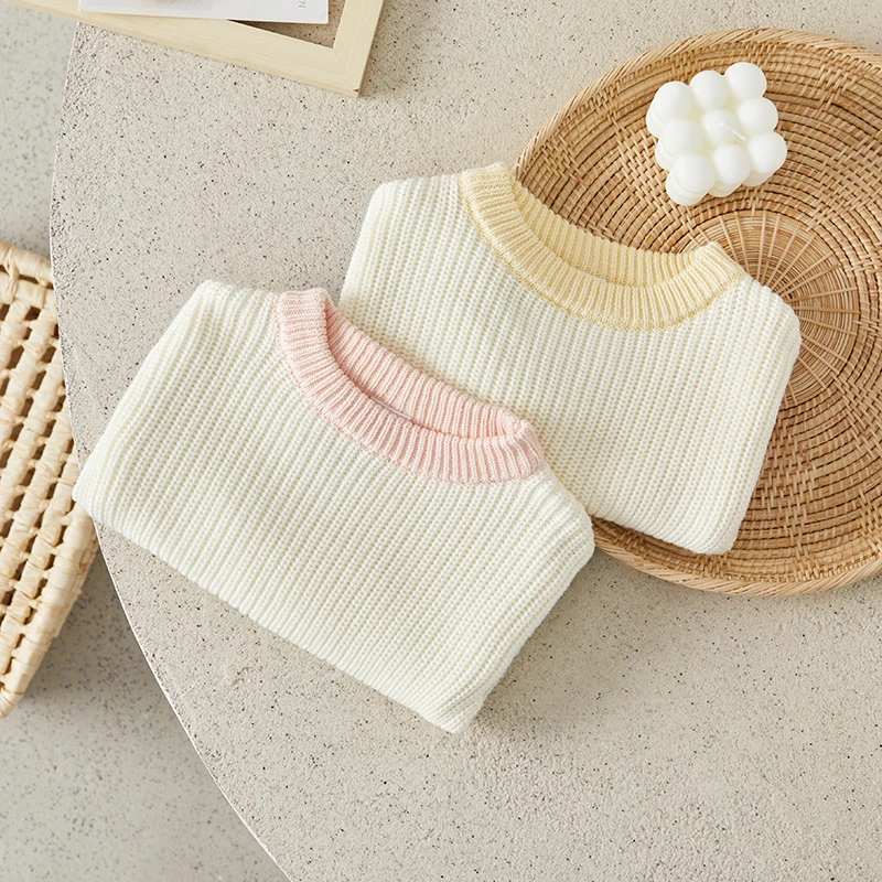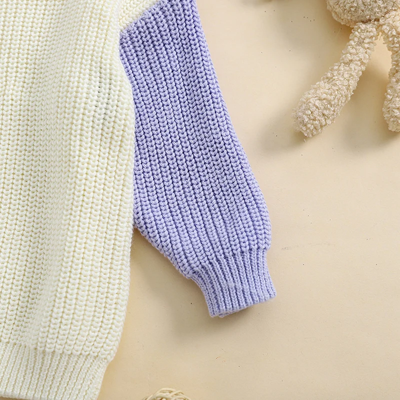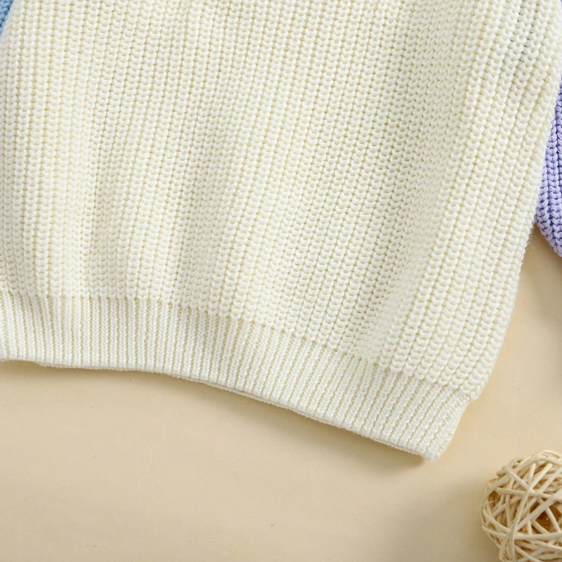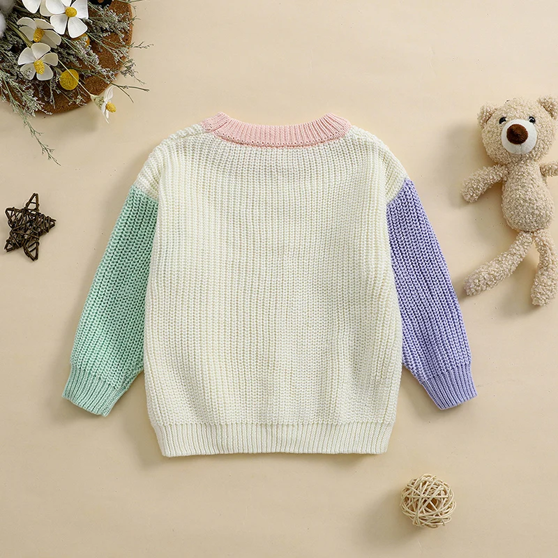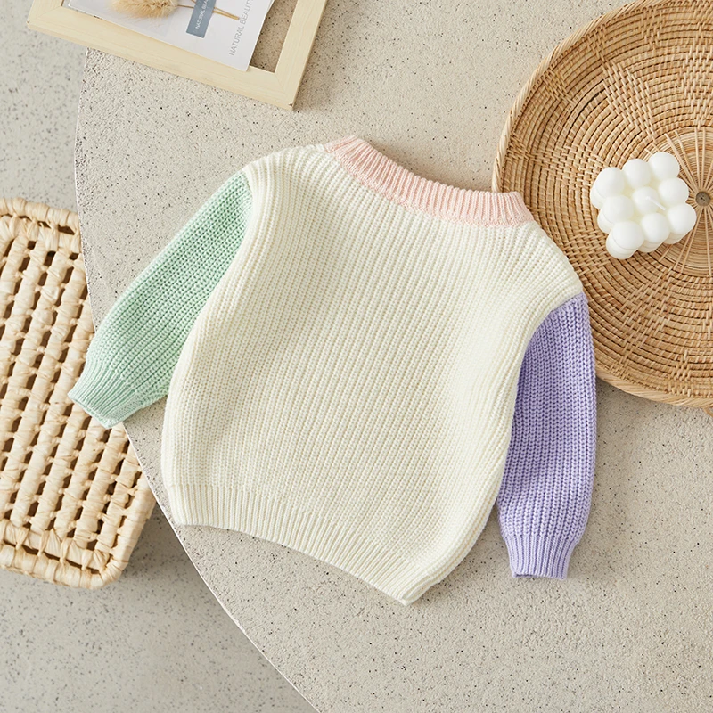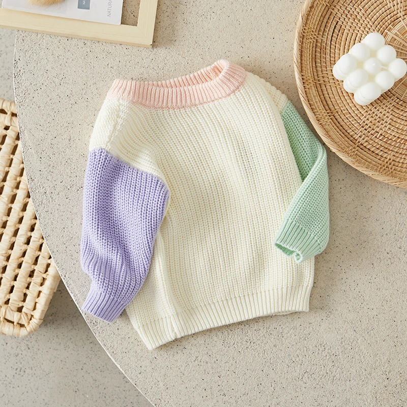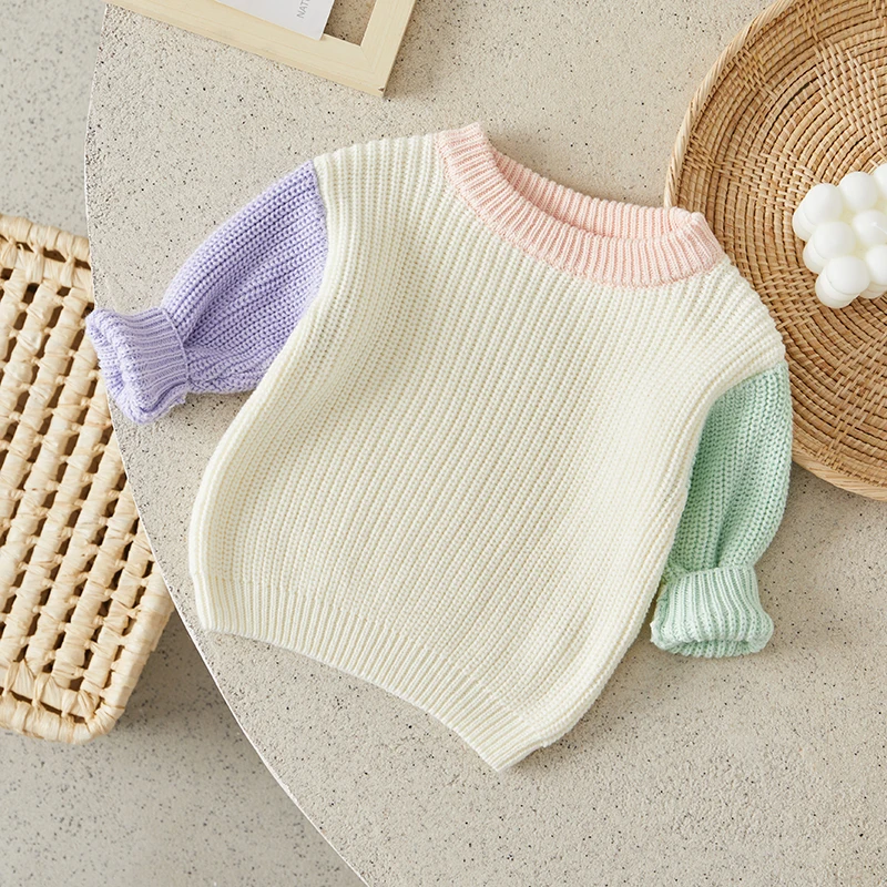 Toddler Girls Boys Sweater Contrast Color Crew Neck Long Sleeve Baby Pullovers Fall Winter Casual Tops