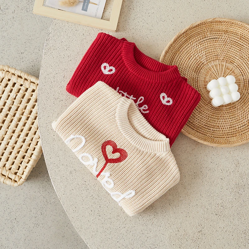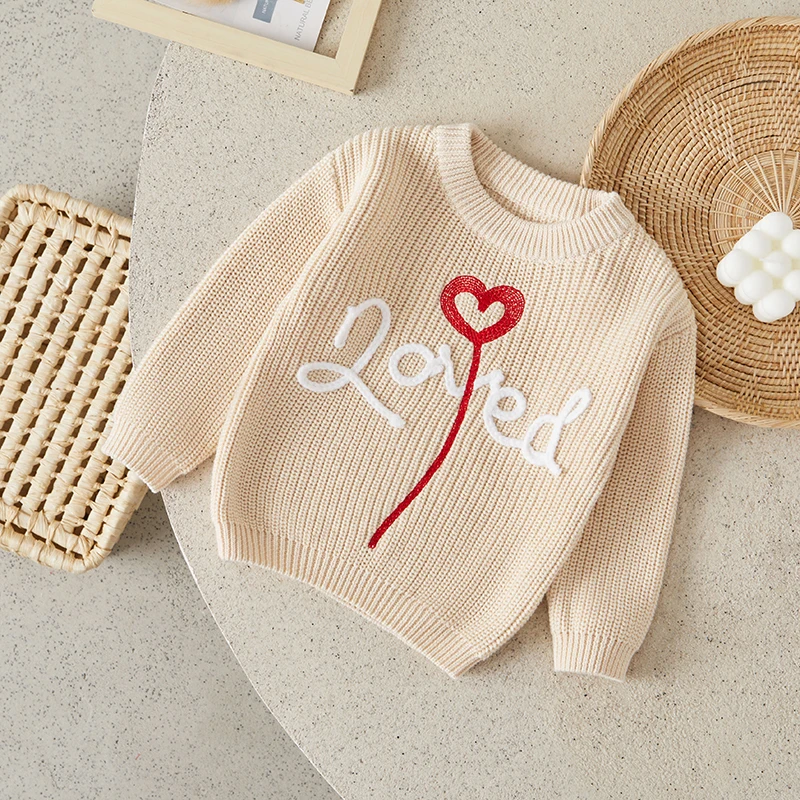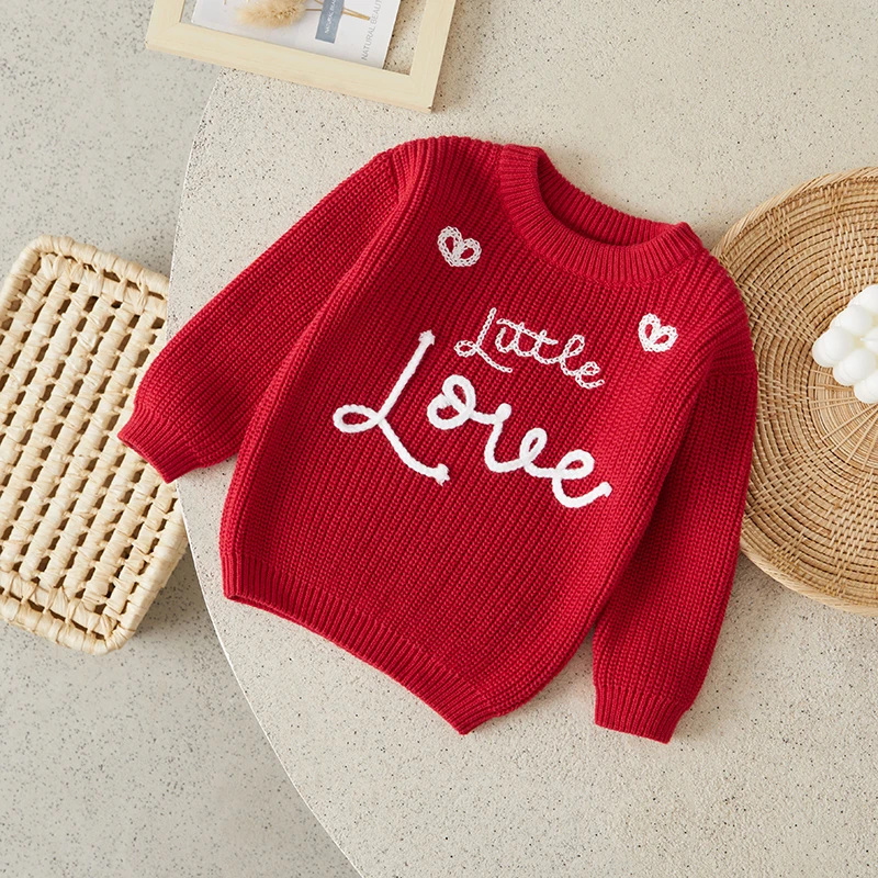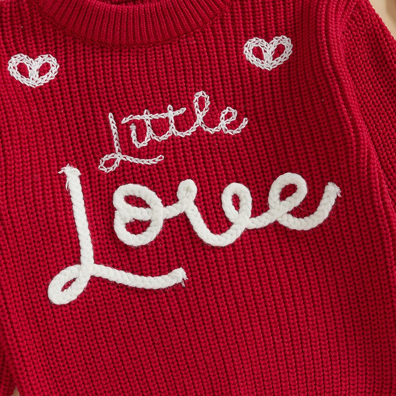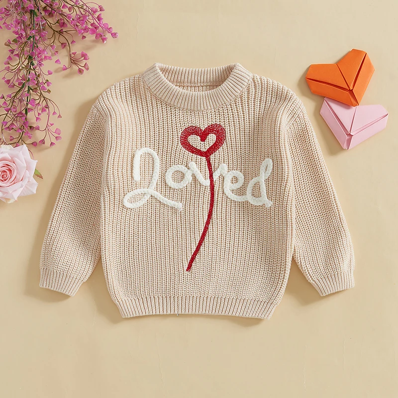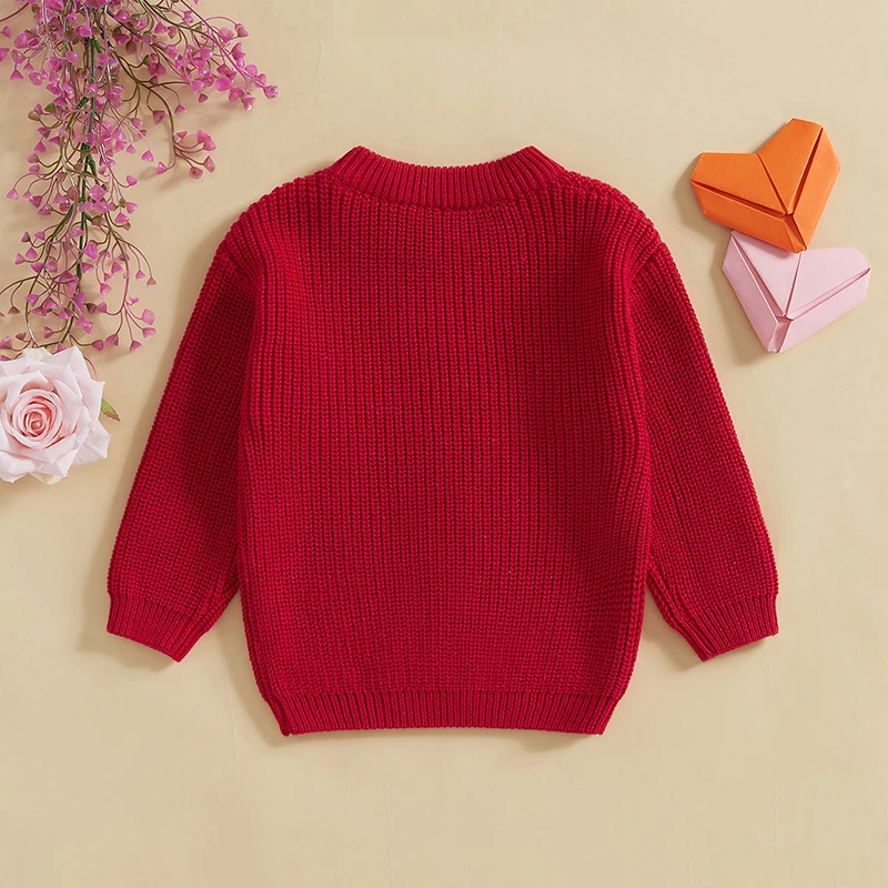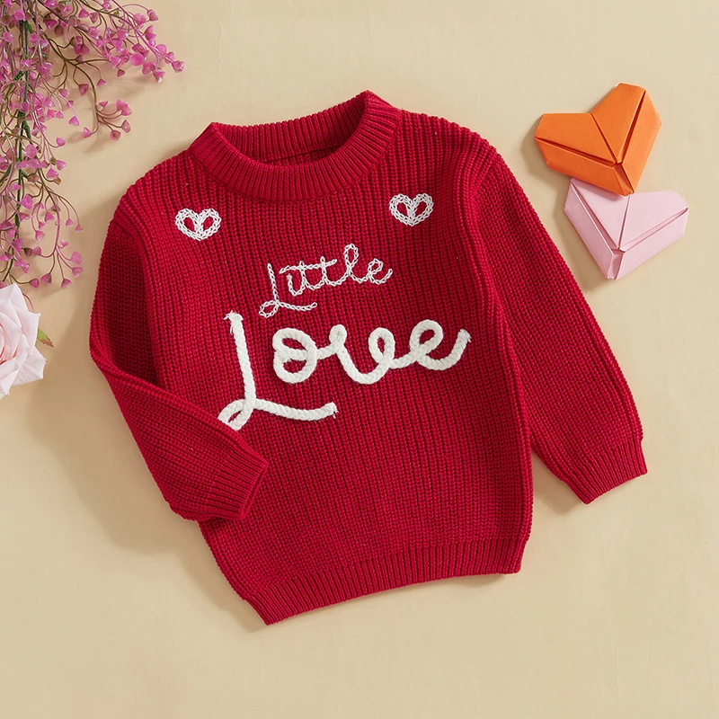 Suéter de punto para el día de San Valentín para niñas y niños, jersey de manga larga con cuello redondo y letras con bordado de corazón
