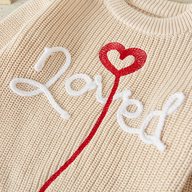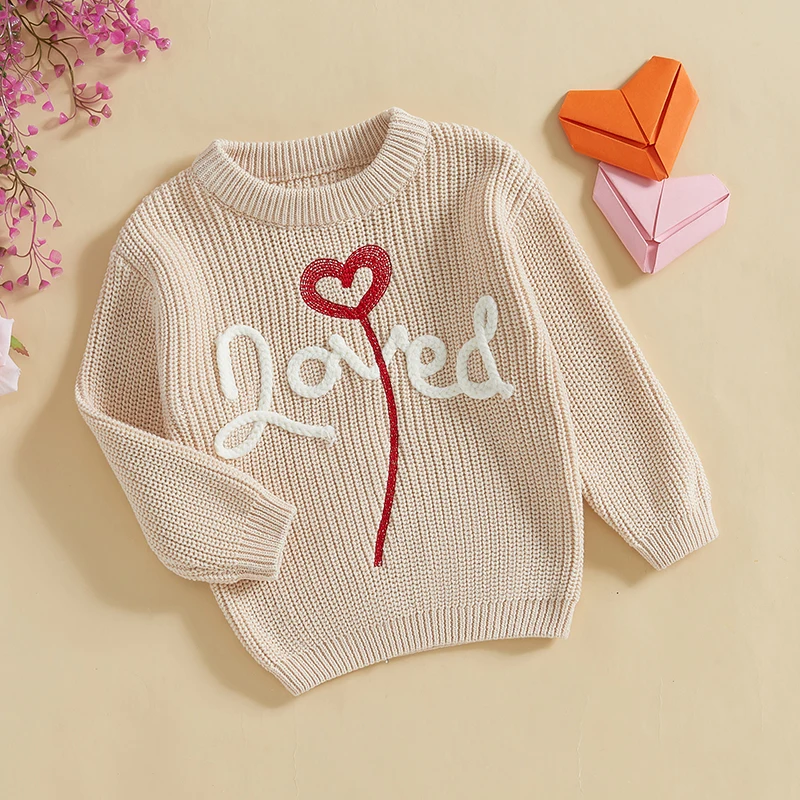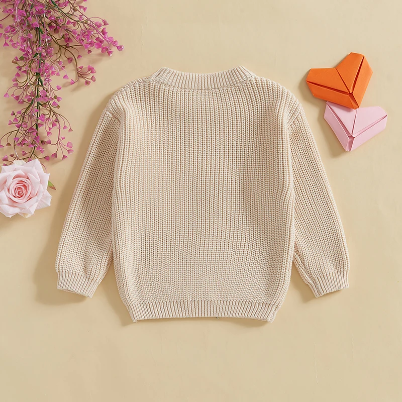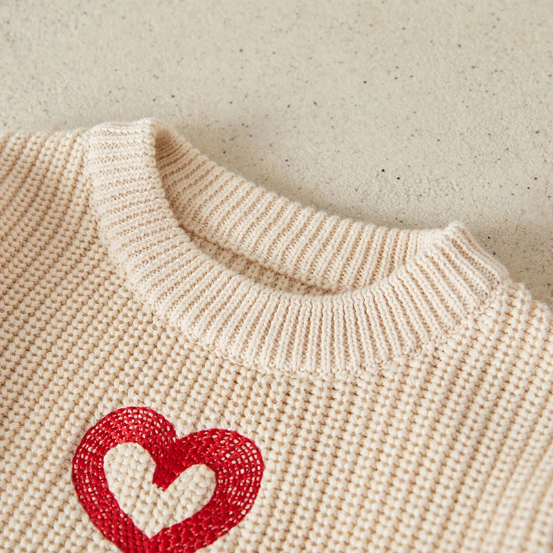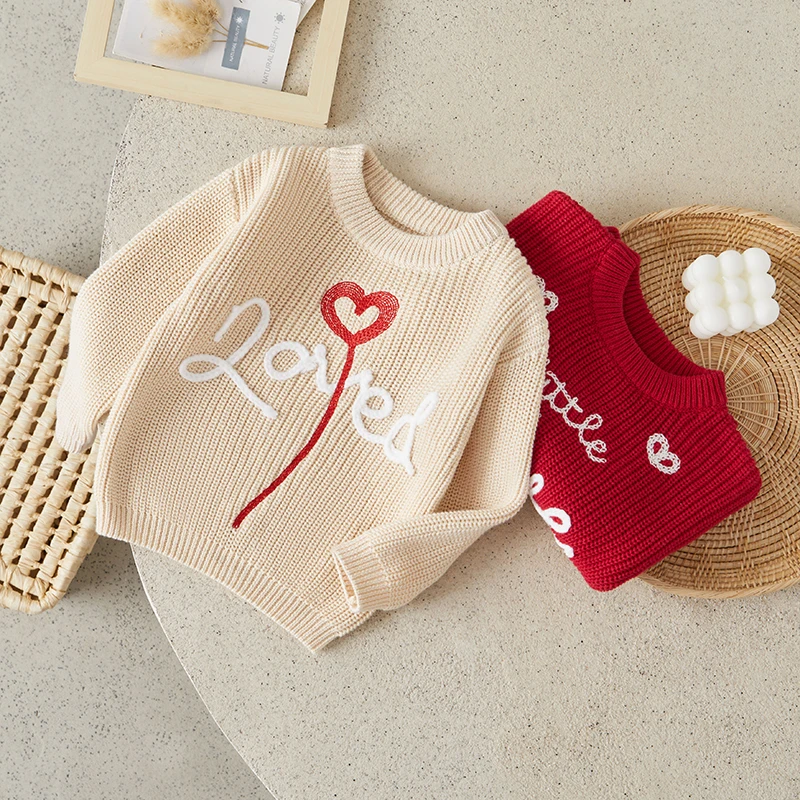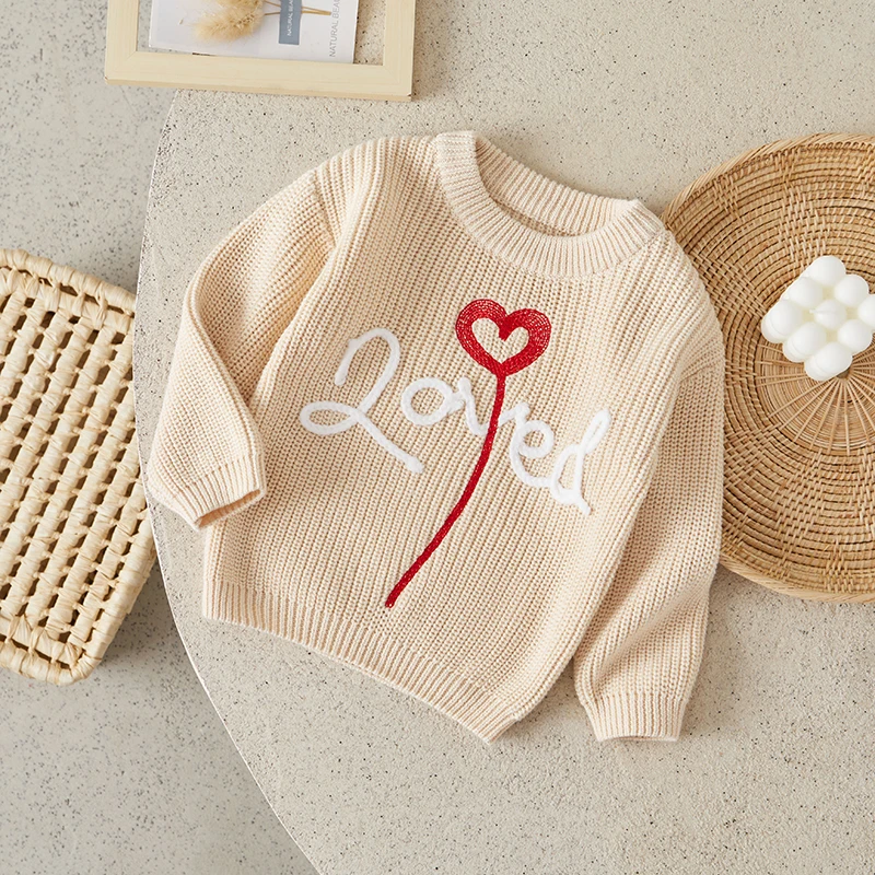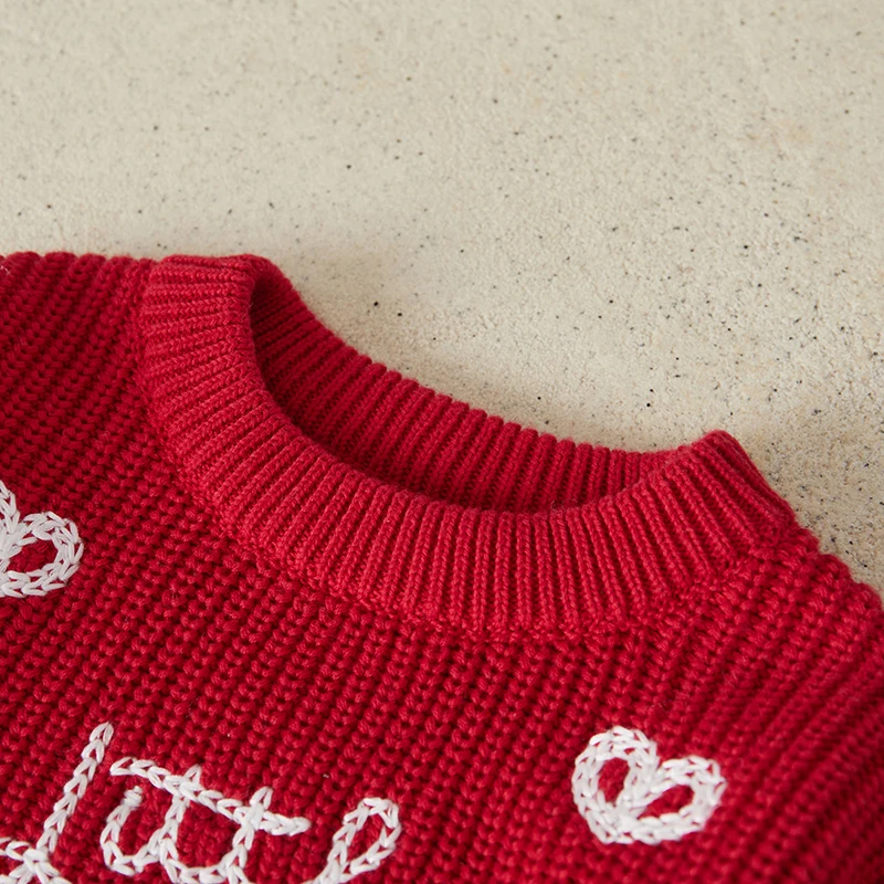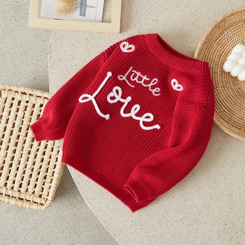 Suéter de punto para el día de San Valentín para niñas y niños, jersey de manga larga con cuello redondo y letras con bordado de corazón