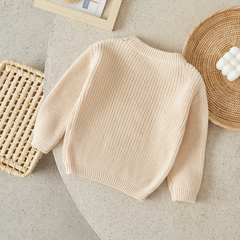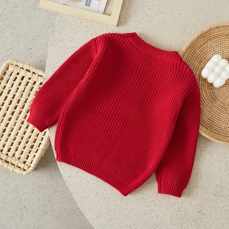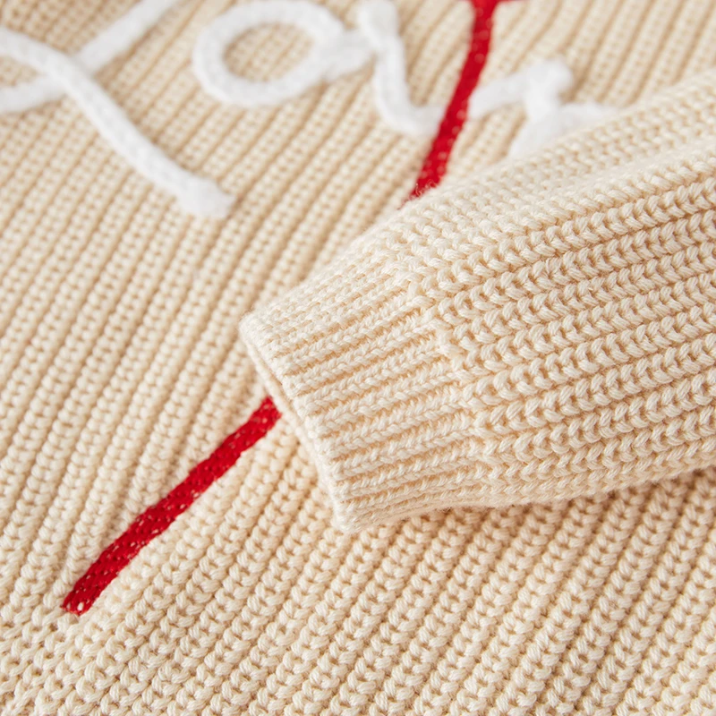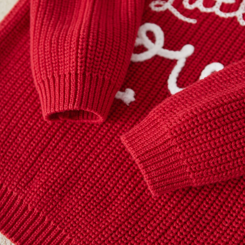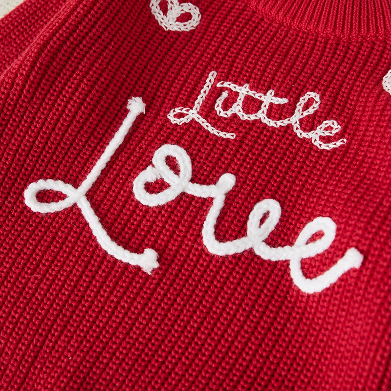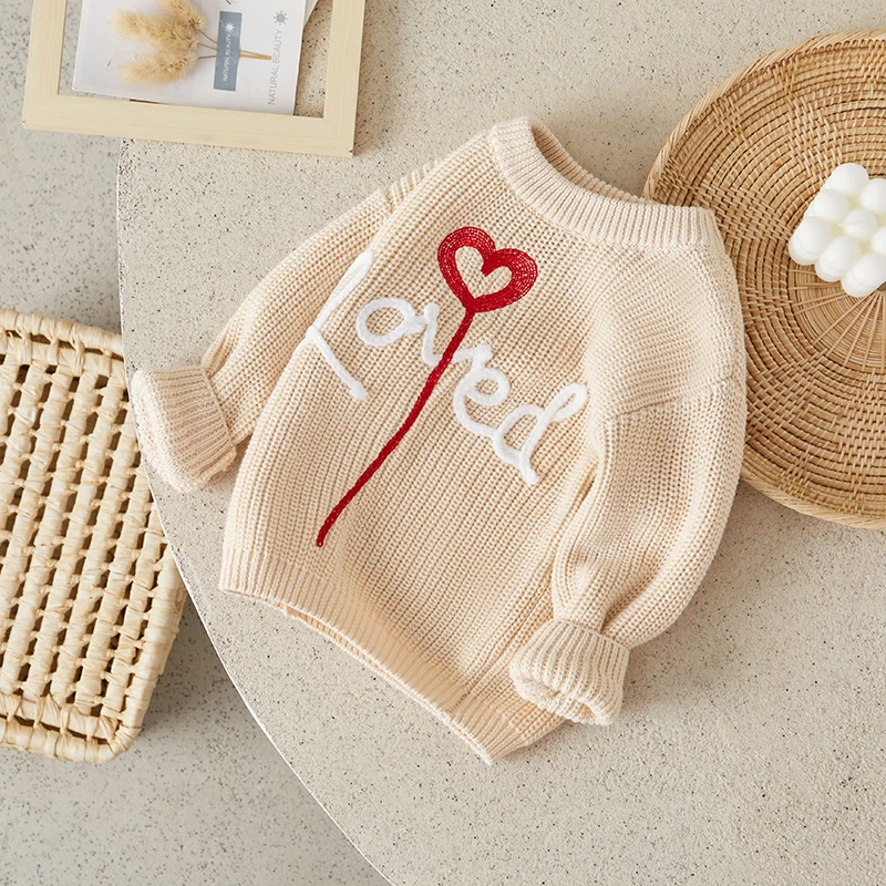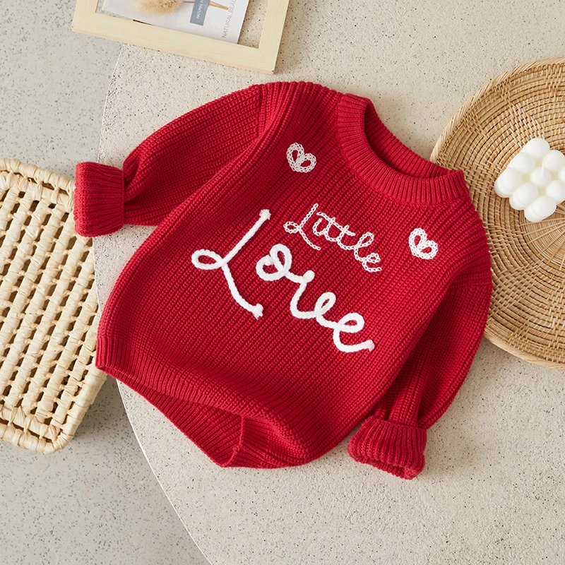Suéter de punto para el día de San Valentín para niñas y niños, jersey de manga larga con cuello redondo y letras con bordado de corazón