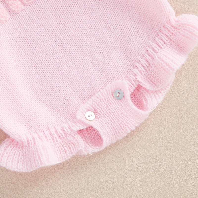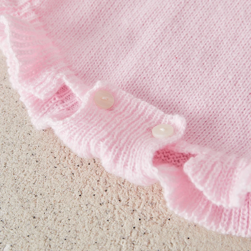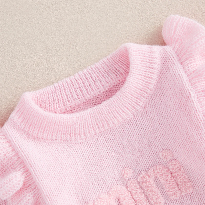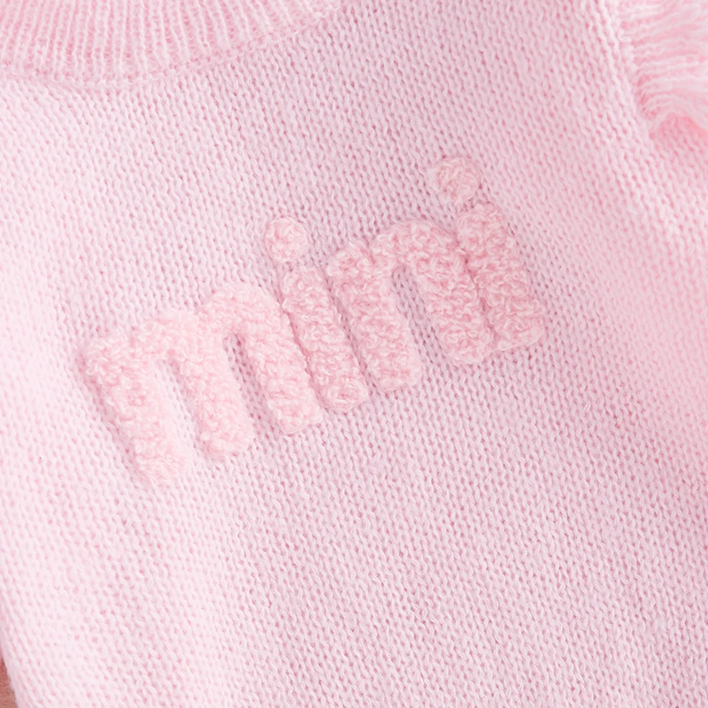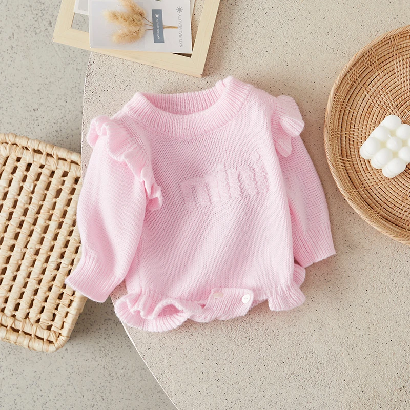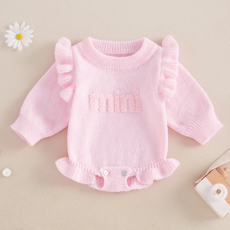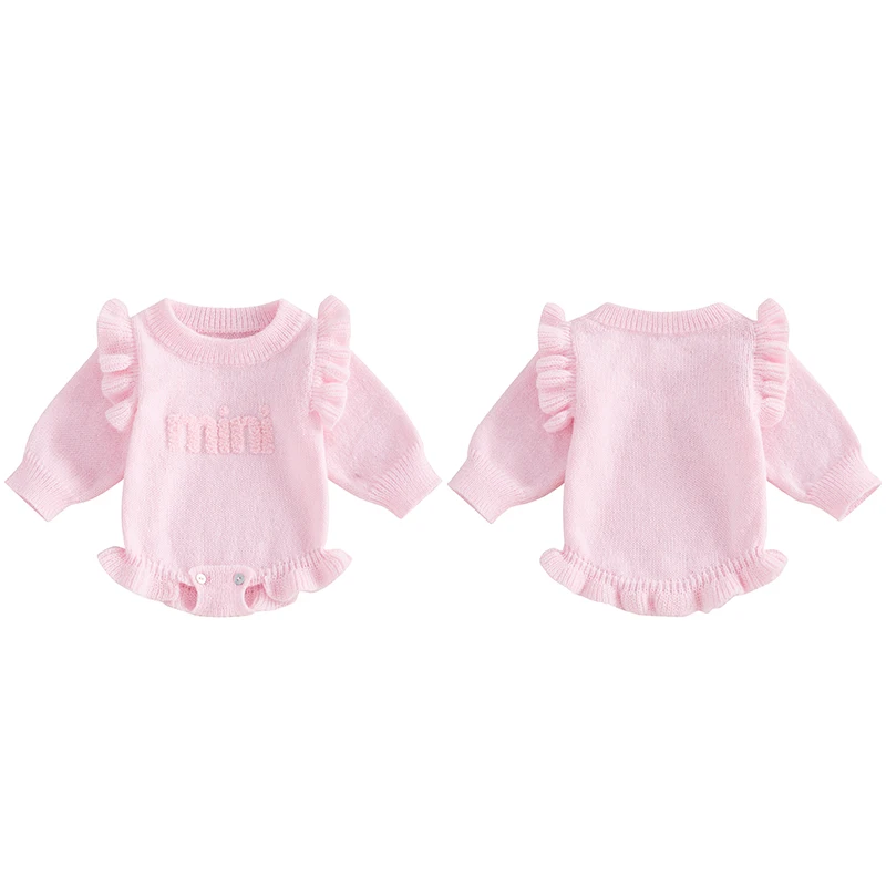 Baby Girls Knit Sweater Romper Long Sleeve O Neck Letter Embroidery Romper