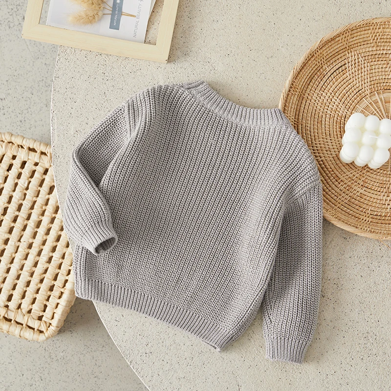 Baby Toddler Knit Sweater Solid Color Crew Neck Long Sleeve Pullover Tops Casual Winter Fall Clothes
