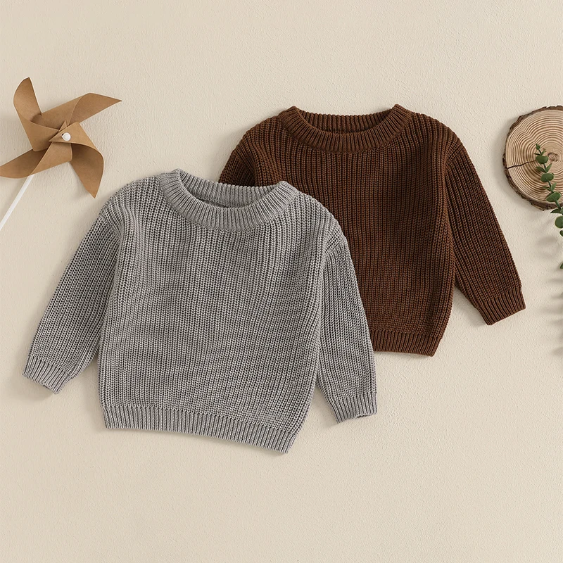 Comprar Suefunskry, suéter tejido de manga larga para bebé recién nacido, niña y niño, suéter liso suelto, Tops informales, ropa para niños de 0 a 5 años