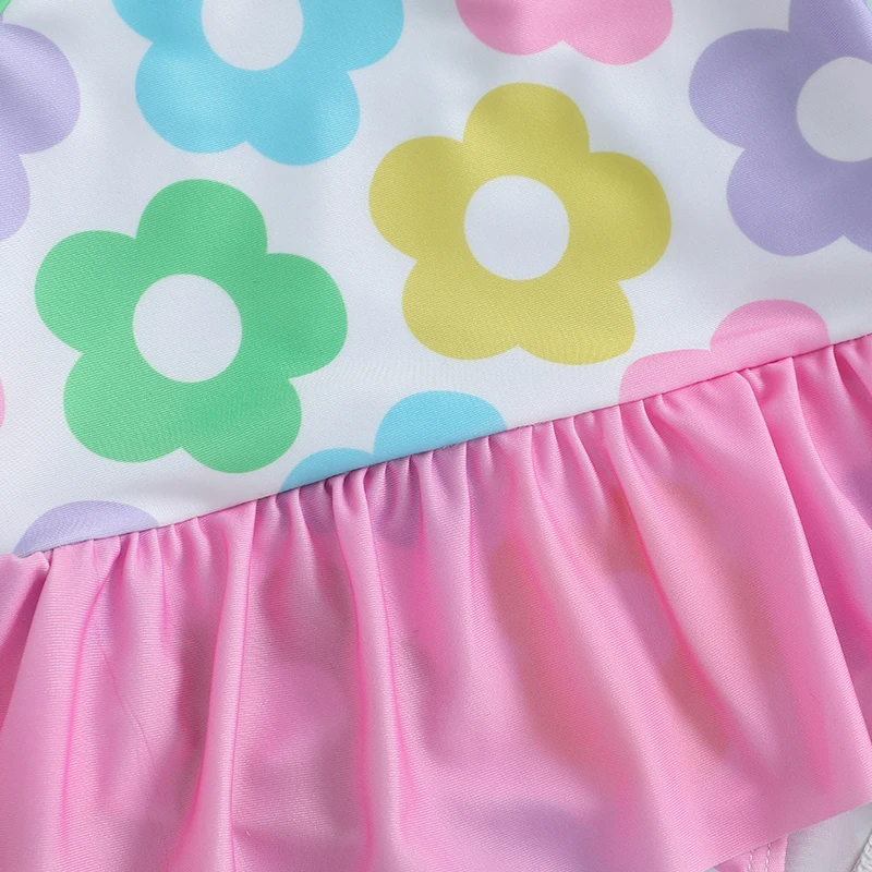 Estampados florales, tirantes cruzados en la espalda, sin mangas, volantes, seguramente harán que tu pequeña destaque entre la multitud; Los trajes de baño para niña son ropa de playa de verano dulce y linda para niña.